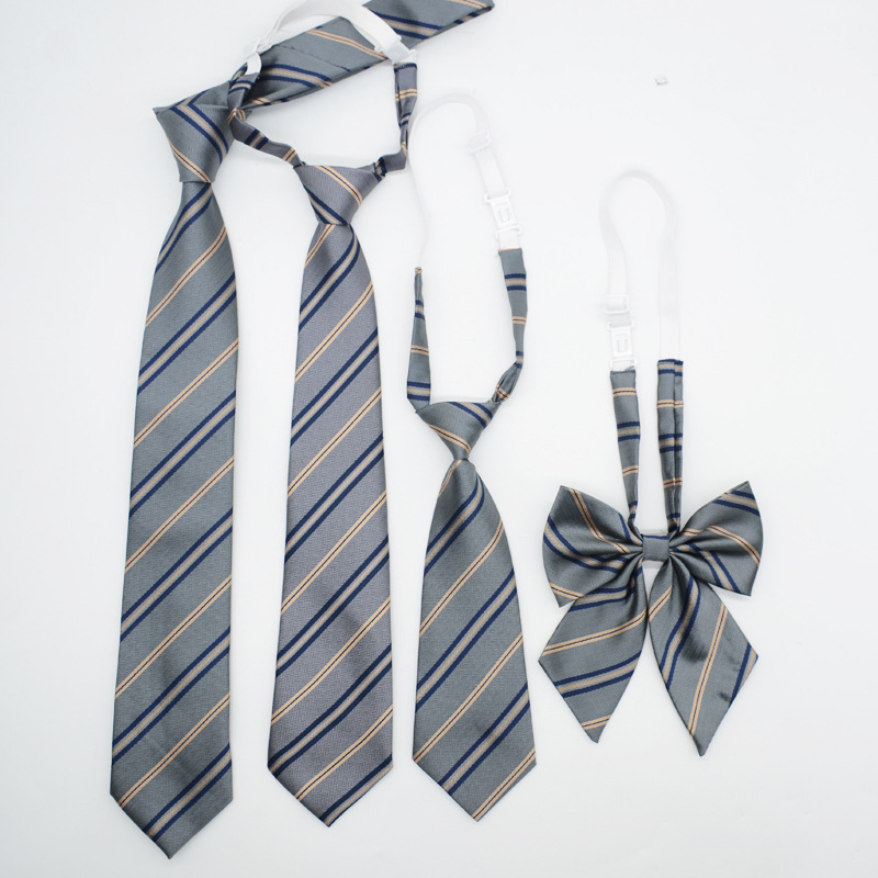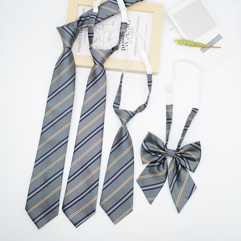 JK Tie 여성용 한국식 일본식 대학 스타일 그레이 스트라이프 핸드 투 핸드 유니폼 매듭없는 짧은 학생 패션 유니폼