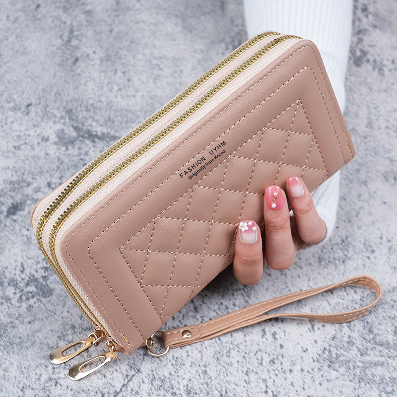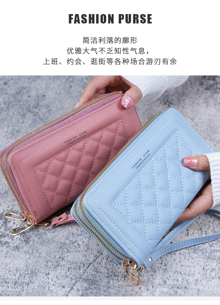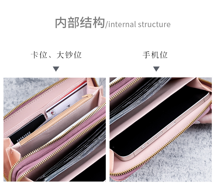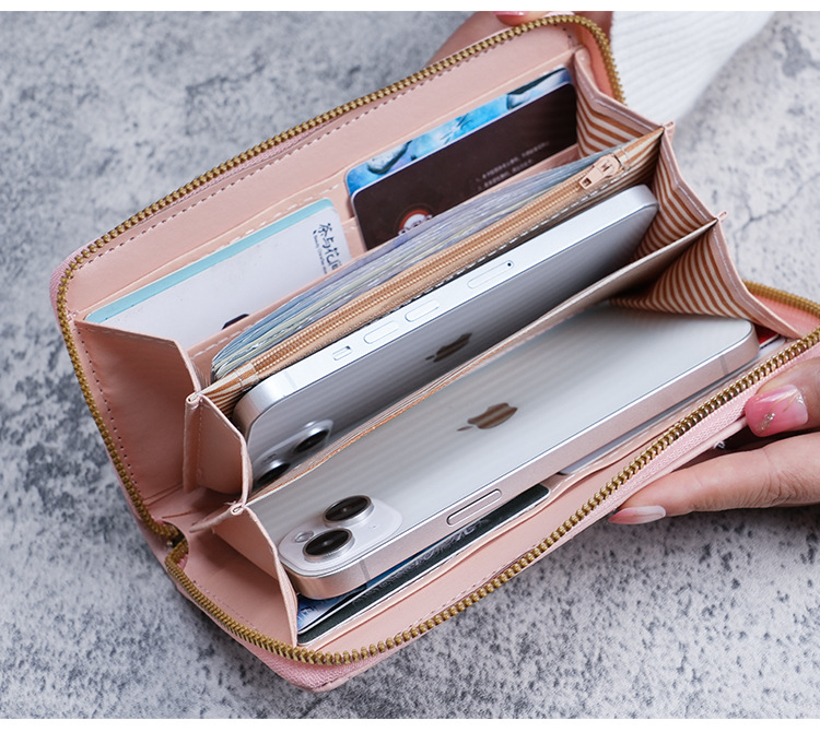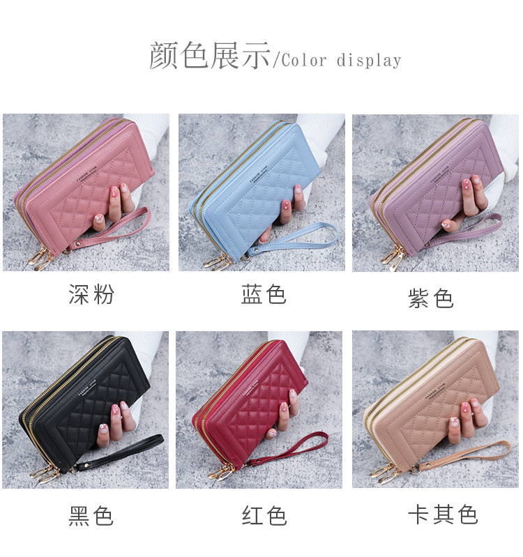 2025 신형 더블 지퍼 롱 지갑 여성용 유럽 및 미국 패션 자수 클러치 다기능 지갑 휴대폰 가방스토어 가기