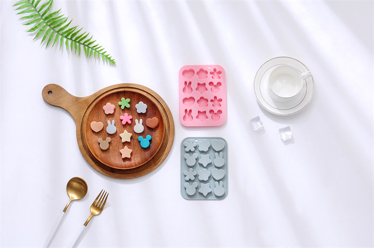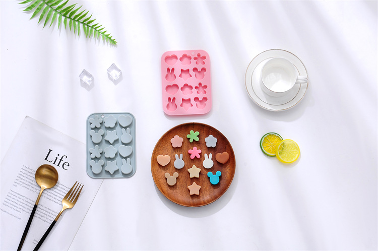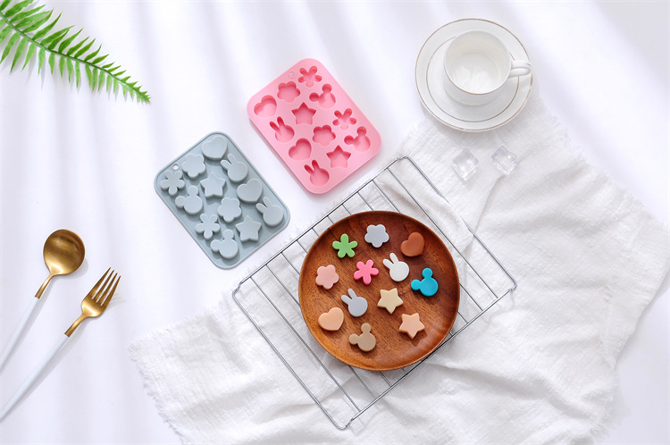 재고 12 심지어 꽃 다섯개 별 사랑 만화 및 기타 모델링 초콜릿 몰드 실리콘 케이크 몰드 접착제 몰드