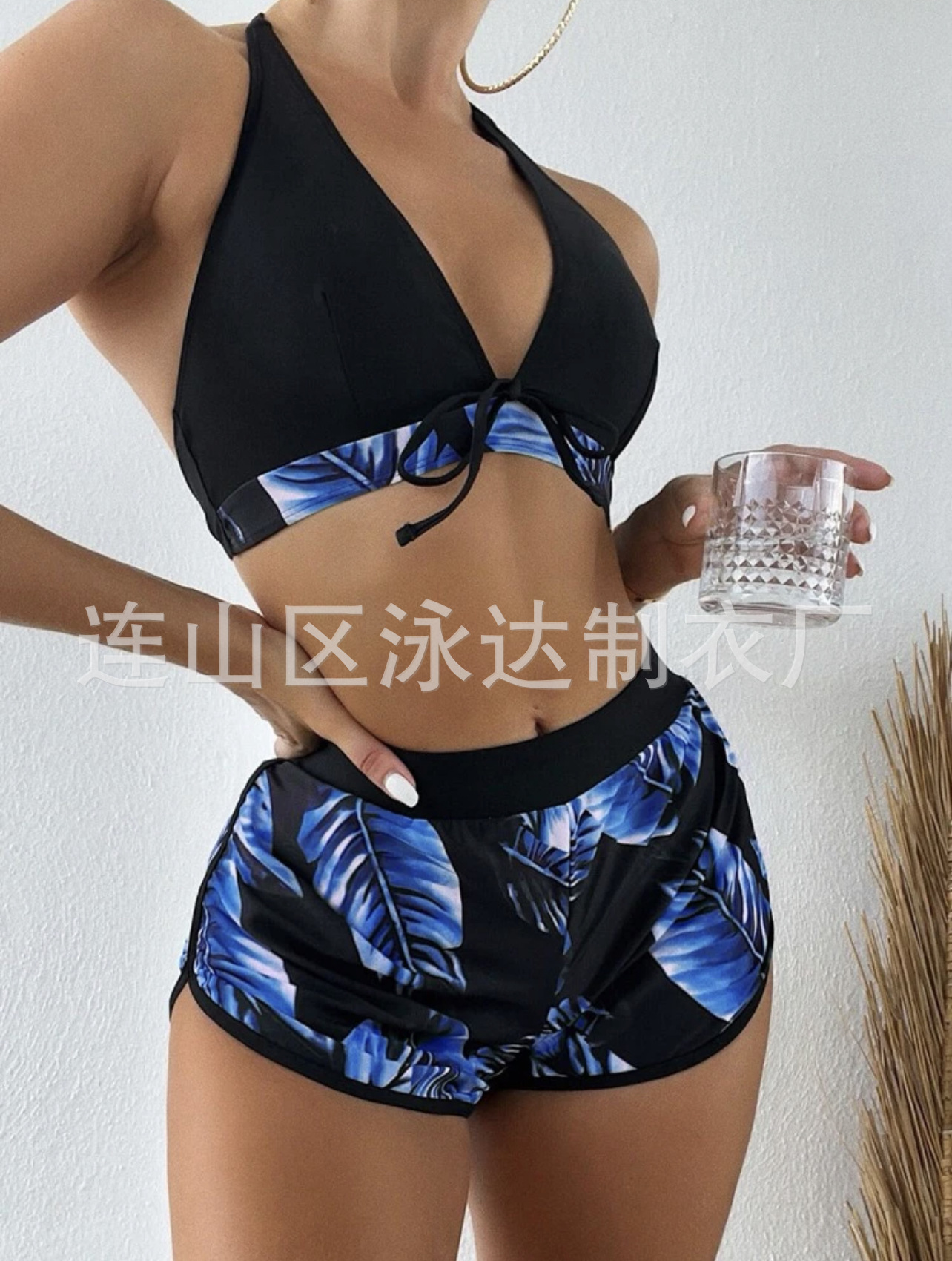 2023 새로운 국경 간 수출 유럽 및 미국 AliExpress 스플릿 쓰리피스 비키니 수영복 여성 대외 무역 섹시 프린팅