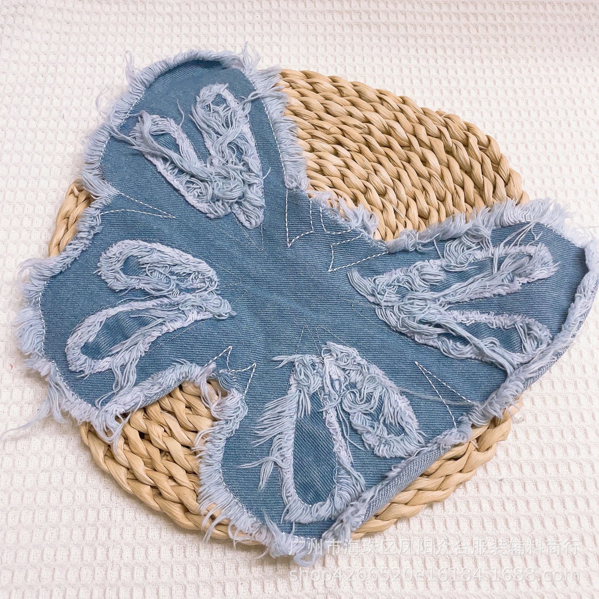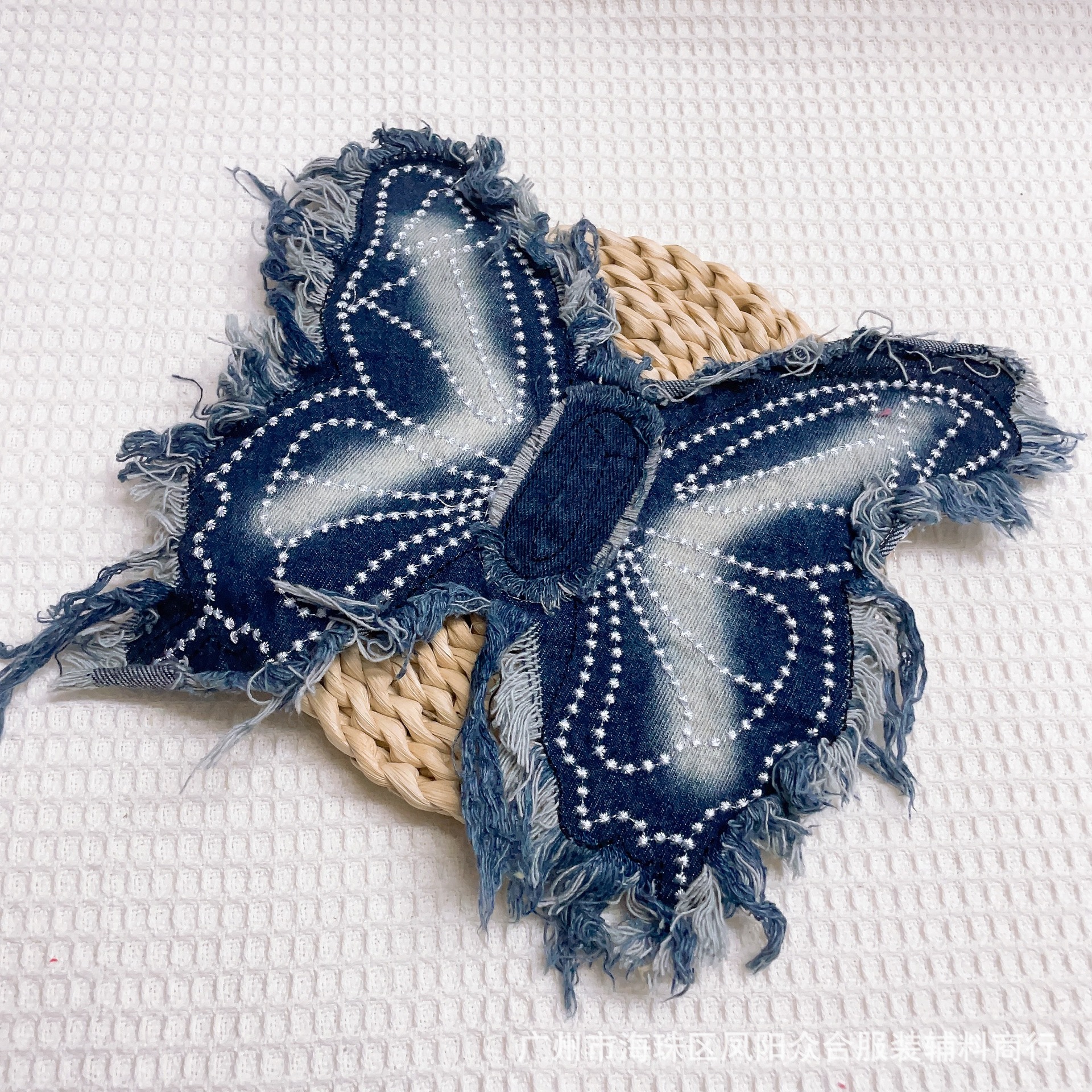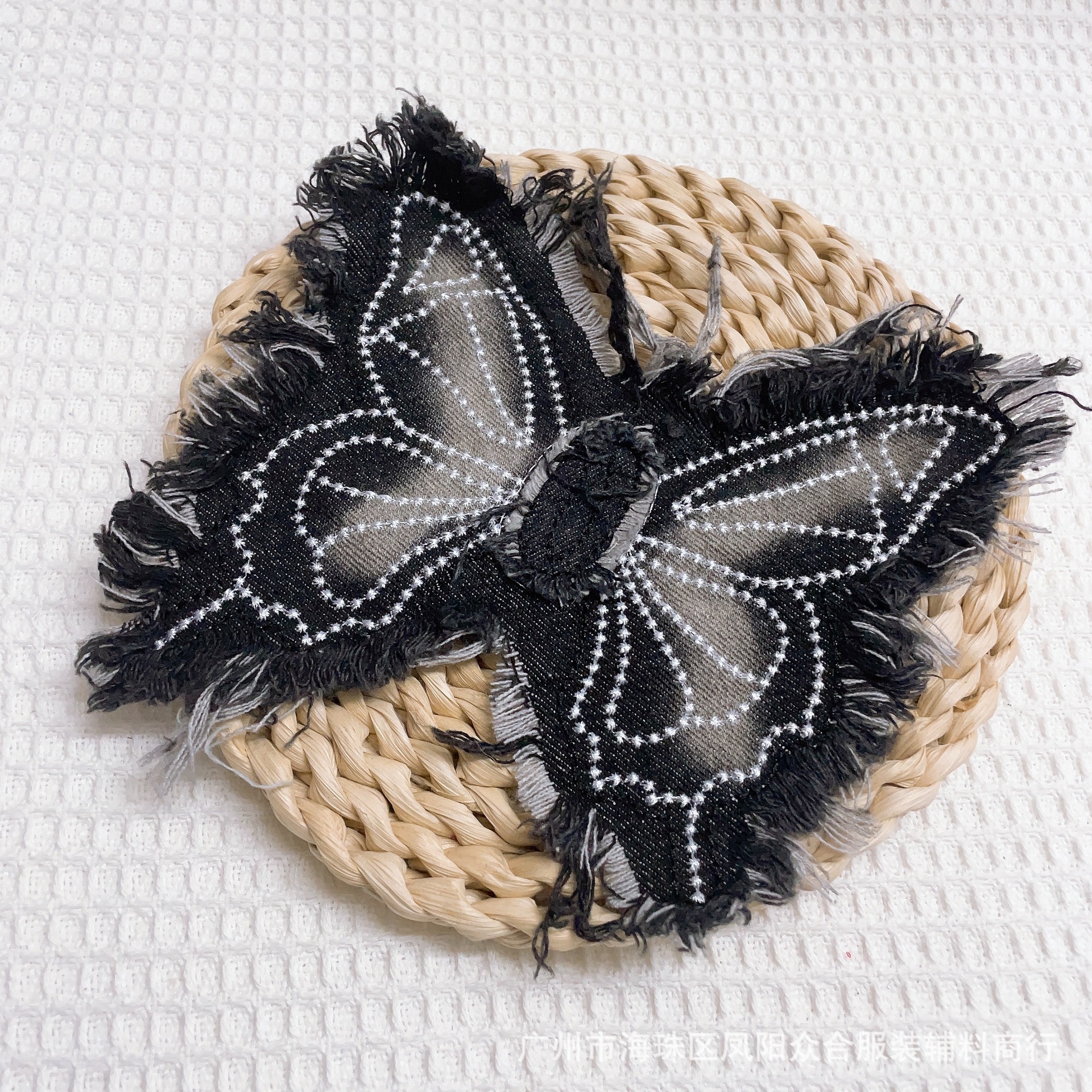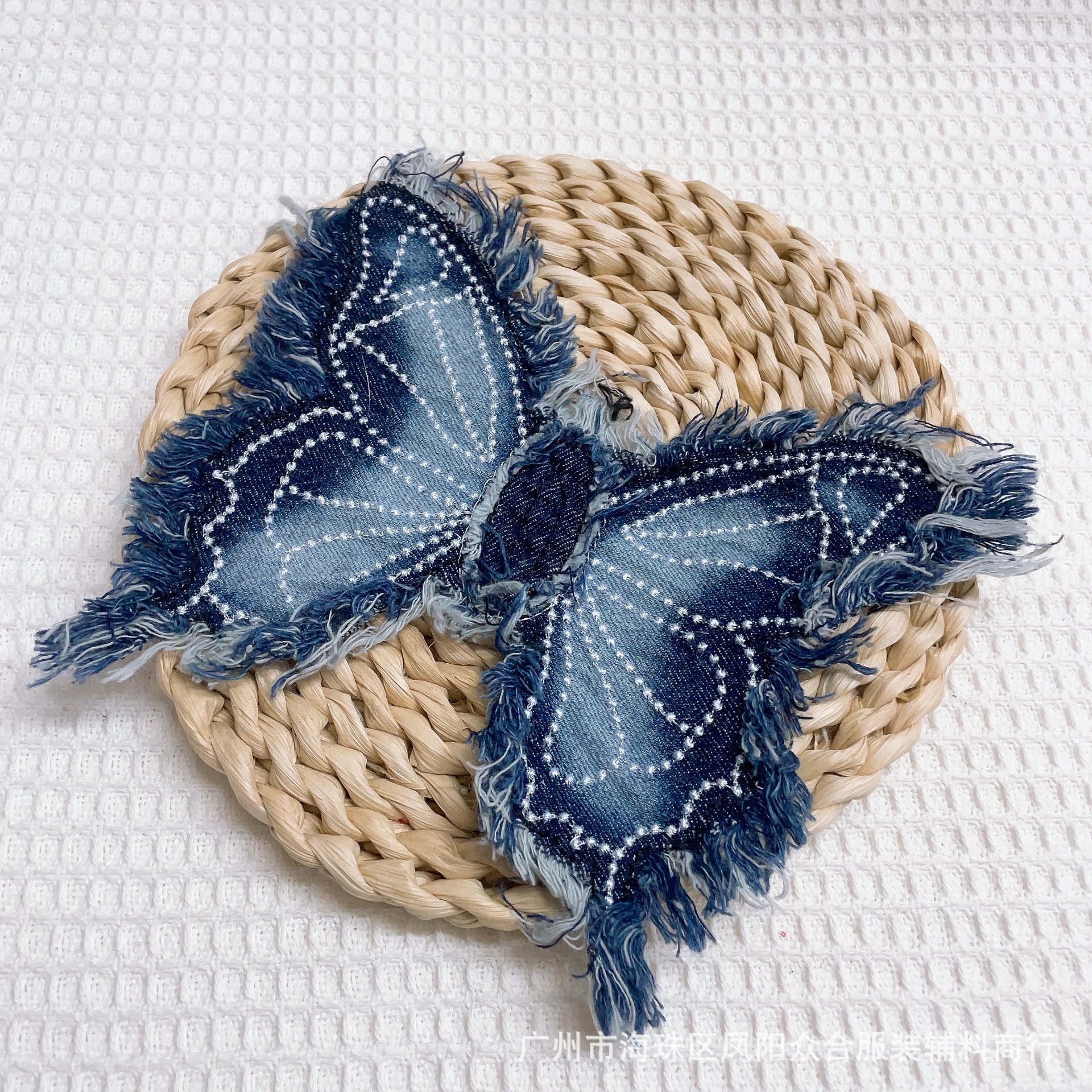 폭발적인 복고풍 스타일 세척 물 데님 나비 자수 머리 가장자리 패치 의류 수하물 장식 패치 액세서리