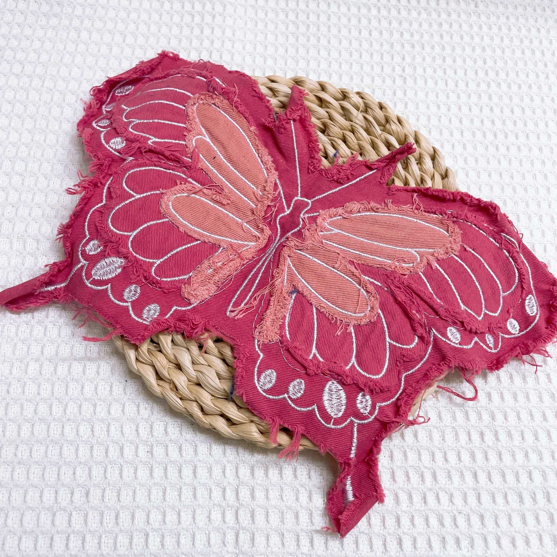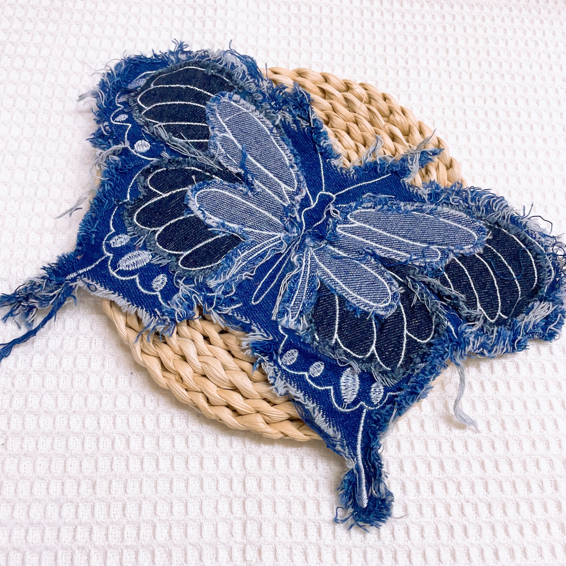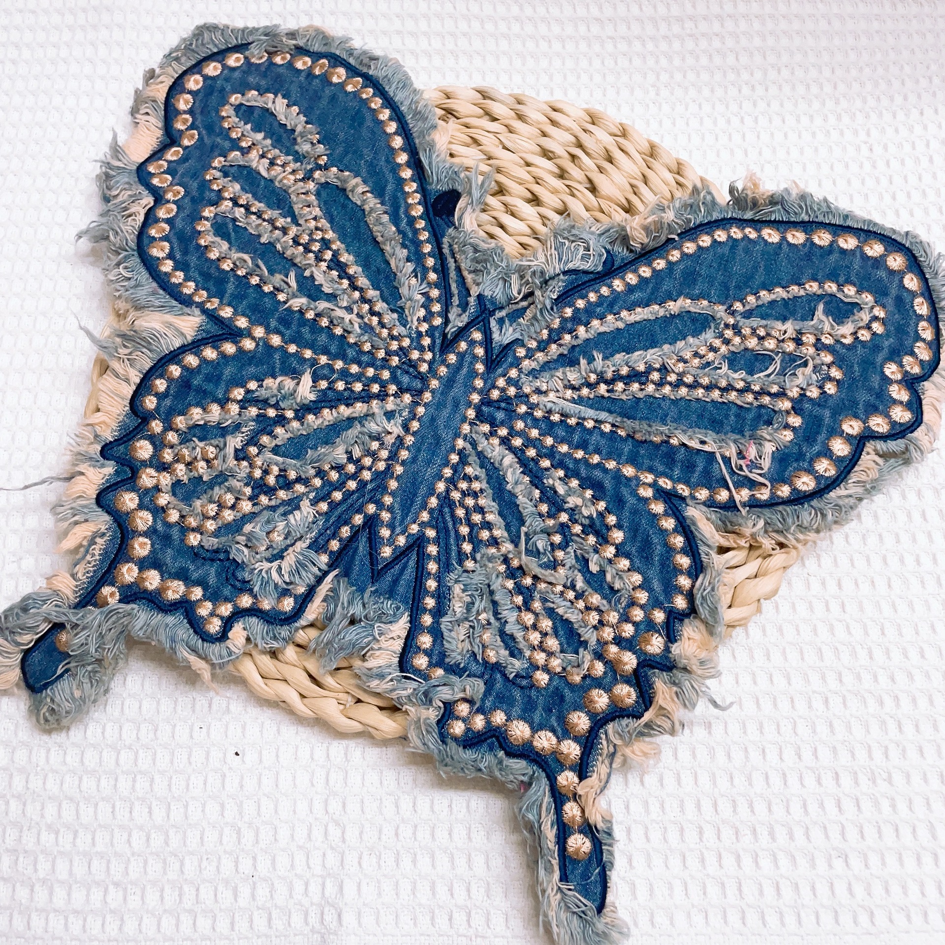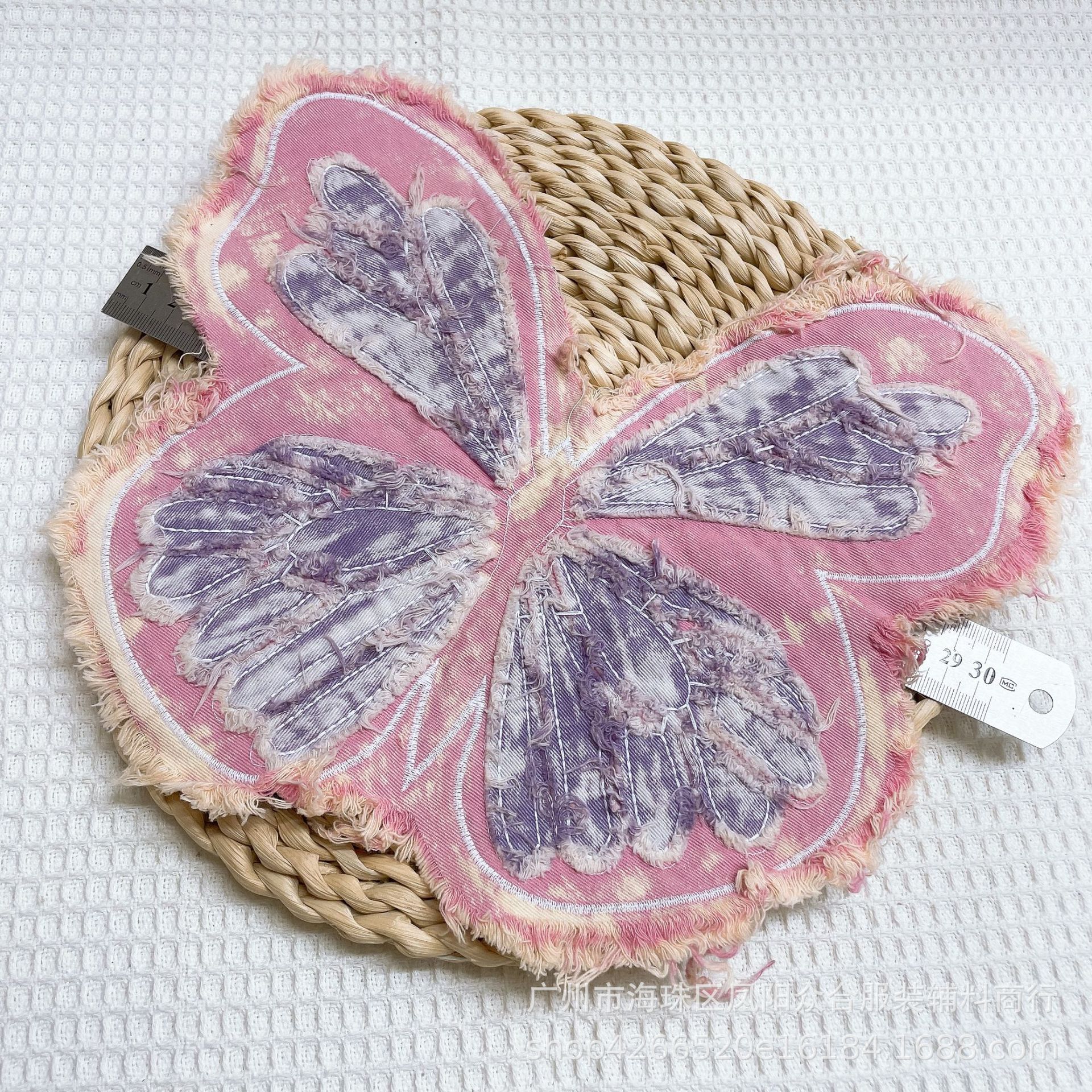 폭발적인 복고풍 스타일 세척 물 데님 나비 자수 머리 가장자리 패치 의류 수하물 장식 패치 액세서리