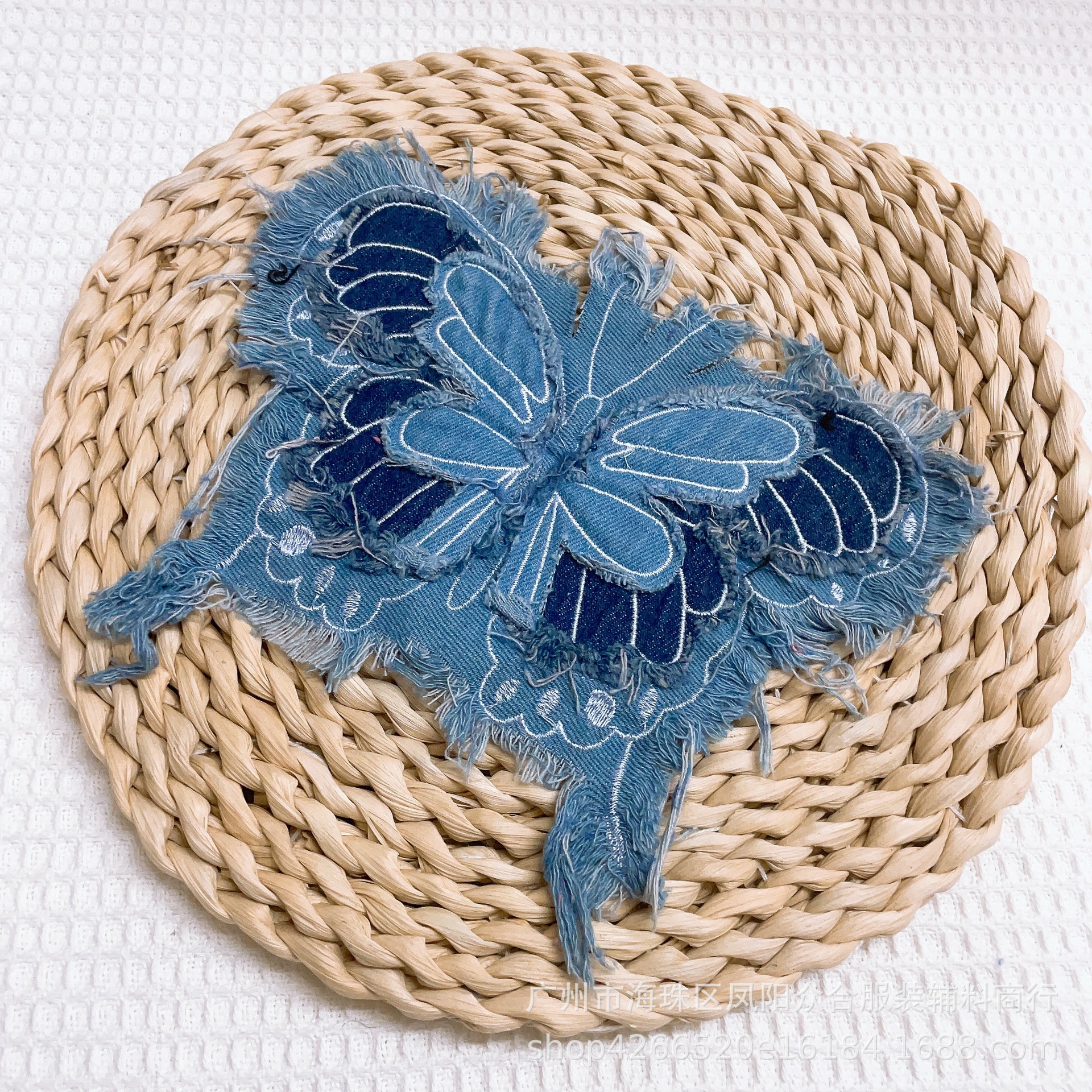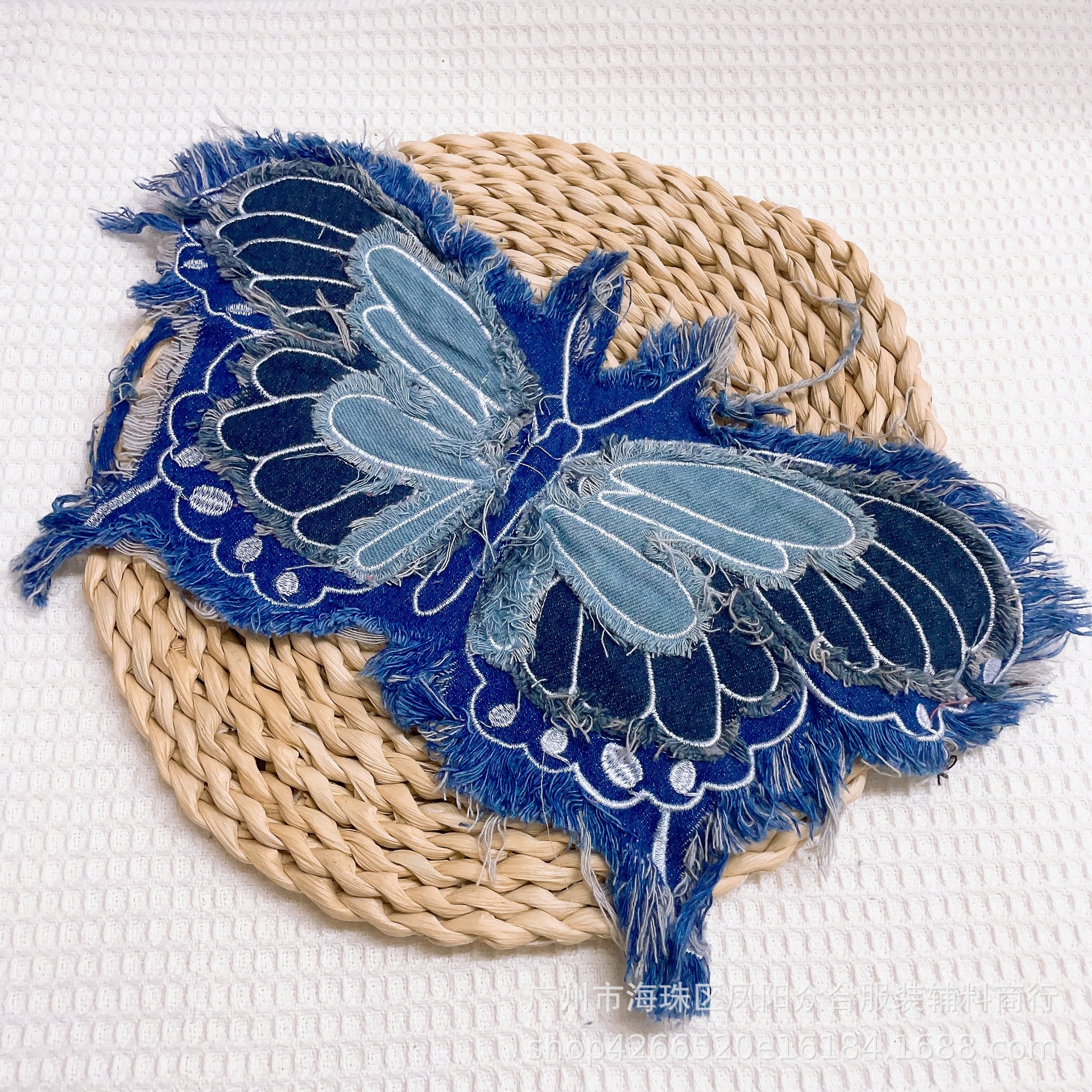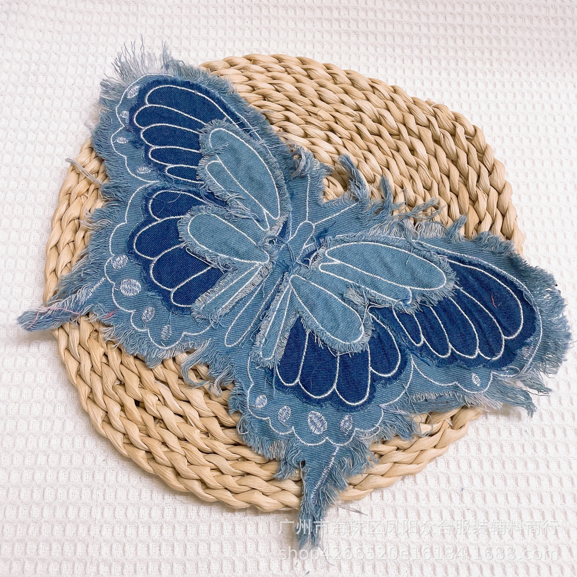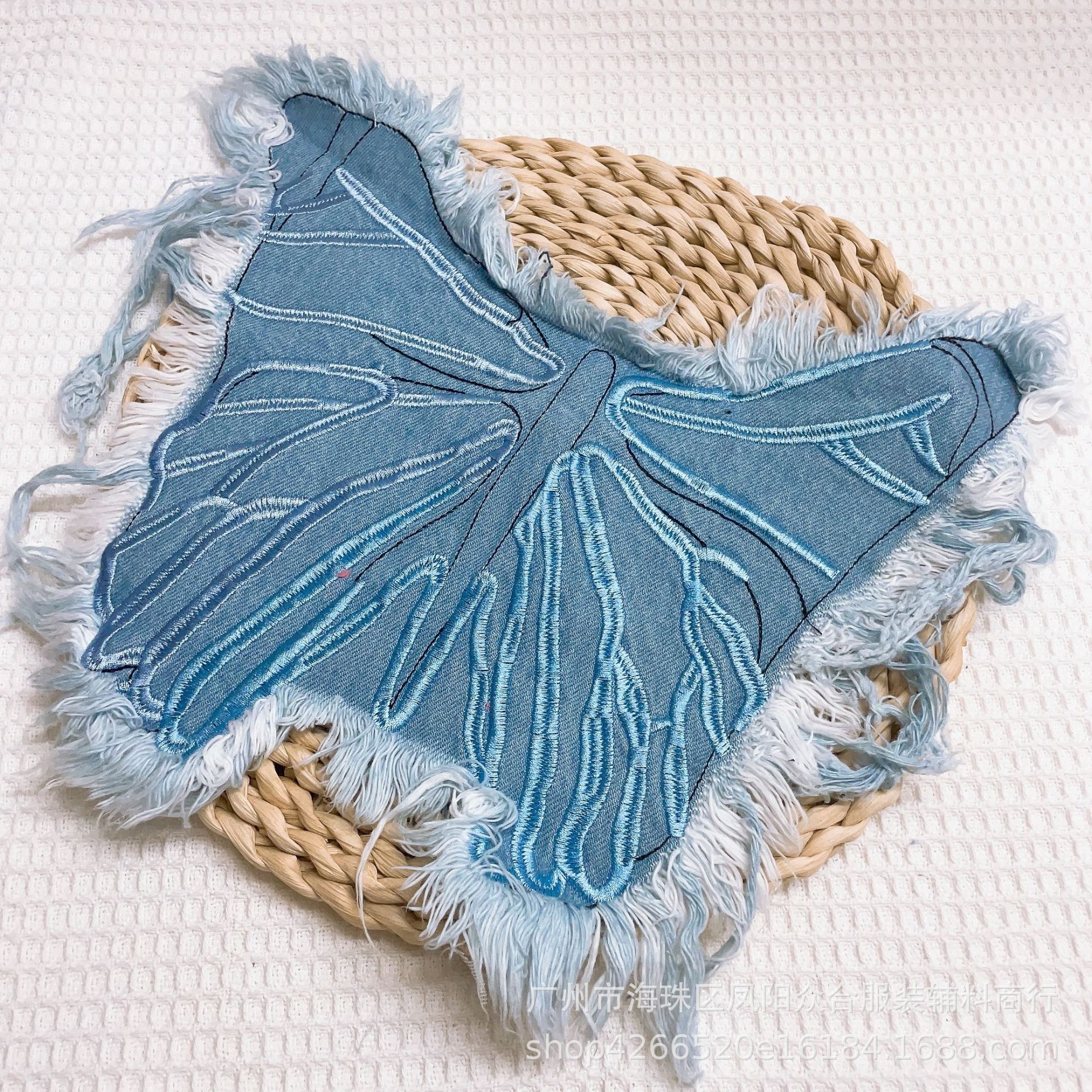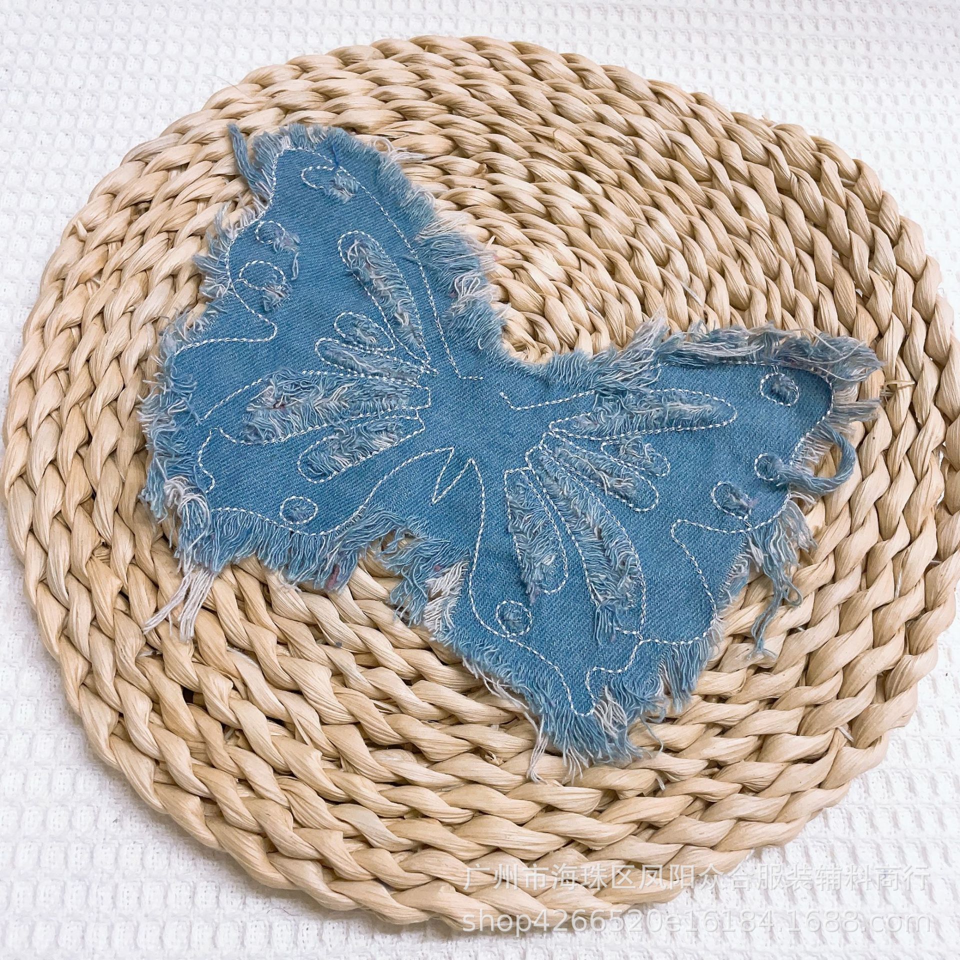 폭발적인 복고풍 스타일 세척 물 데님 나비 자수 머리 가장자리 패치 의류 수하물 장식 패치 액세서리스토어 가기