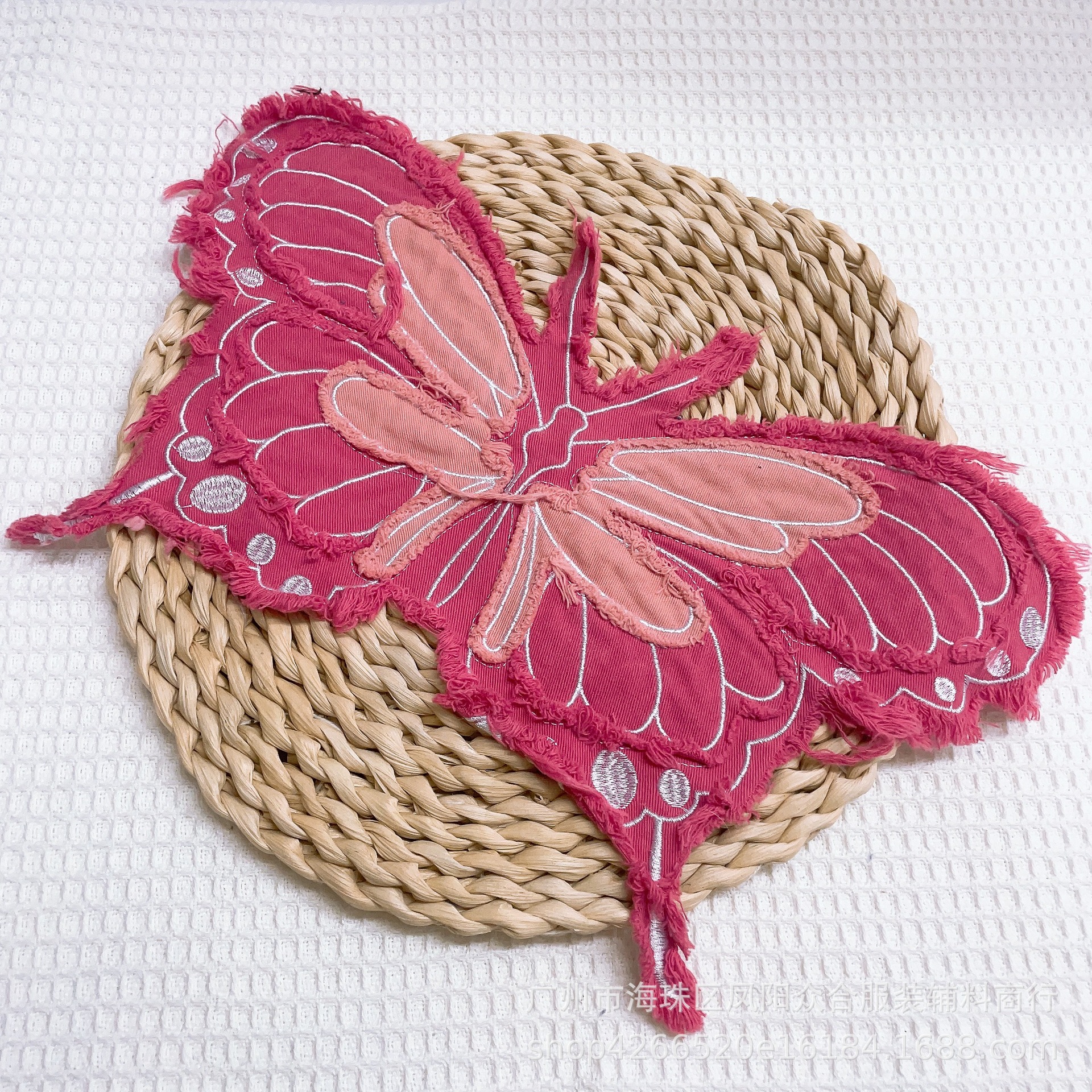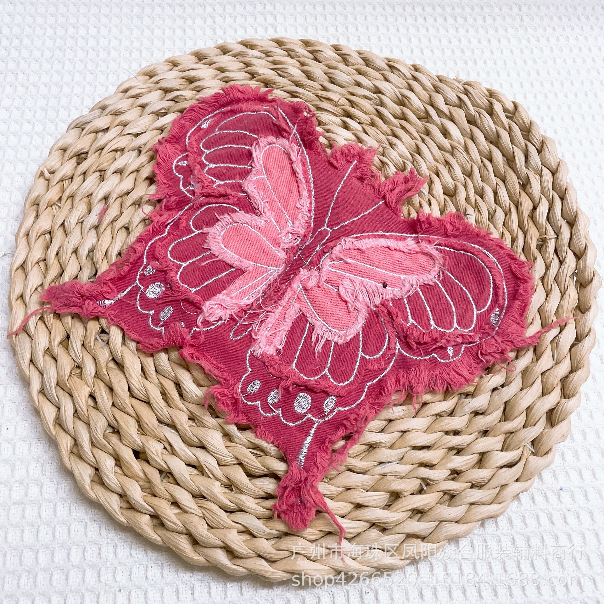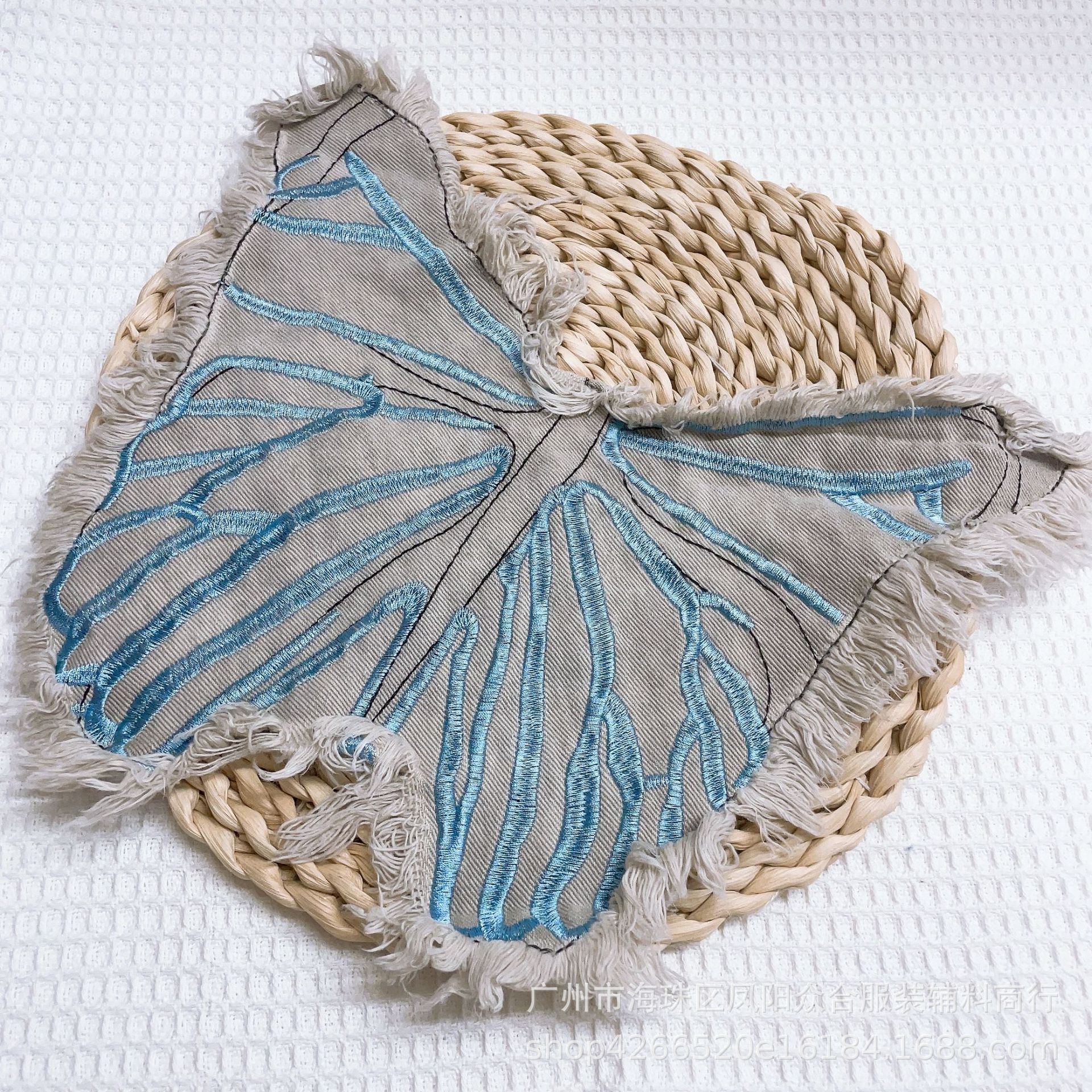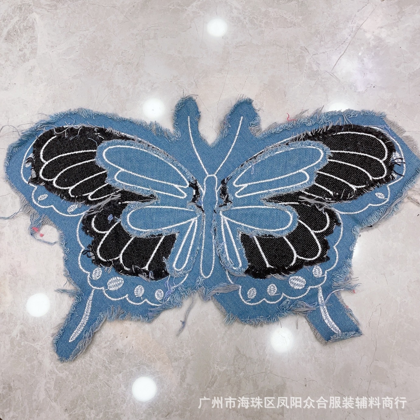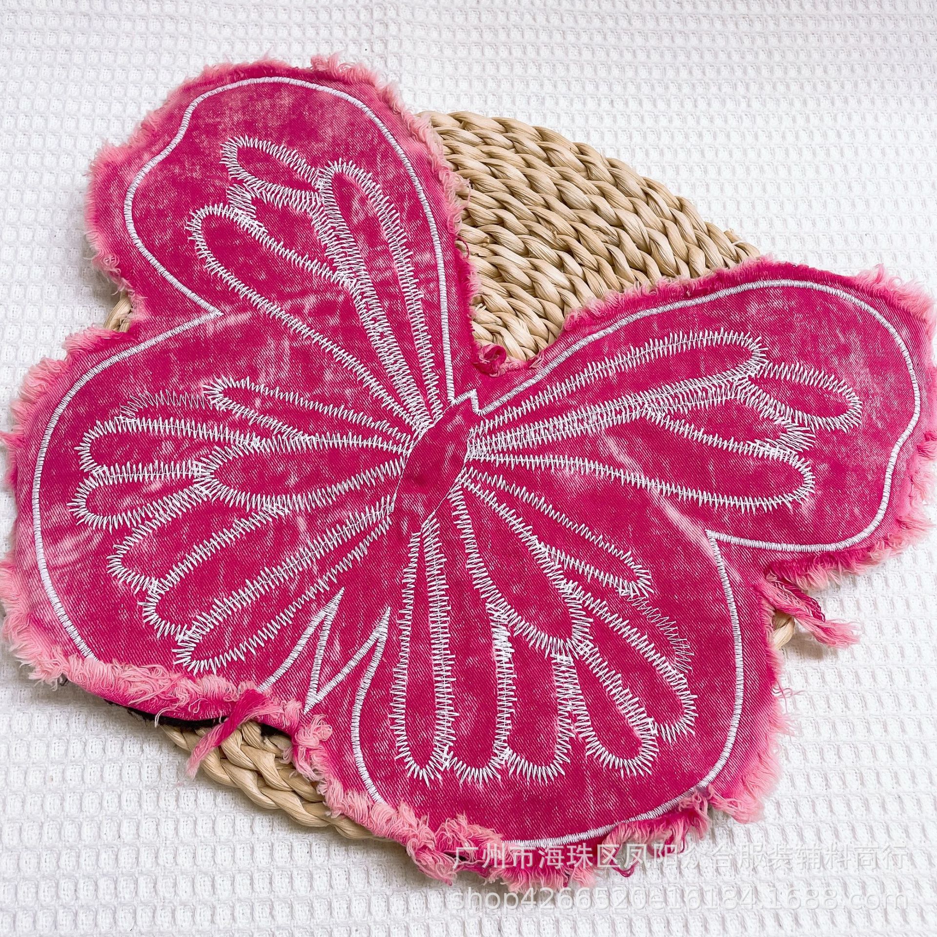 폭발적인 복고풍 스타일 세척 물 데님 나비 자수 머리 가장자리 패치 의류 수하물 장식 패치 액세서리스토어 가기