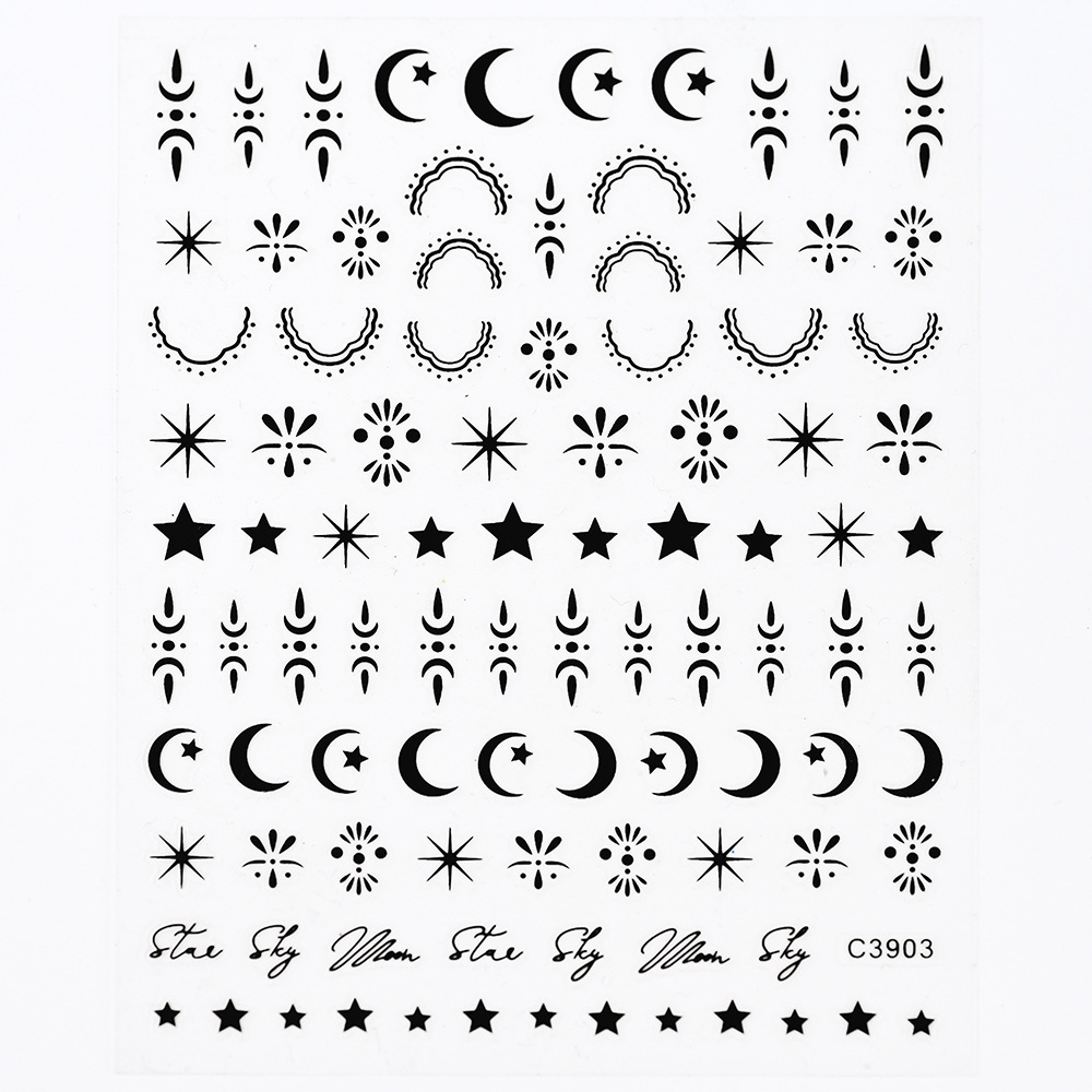 크로스 보더 핫 셀링 스타 문 네일 아트 스티커 스타 문 날개 깃털 패턴 접착 접착 네일 장식 데칼스토어 가기