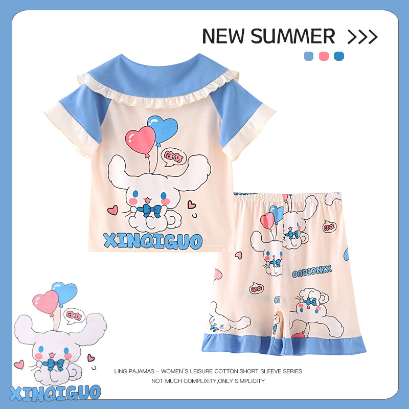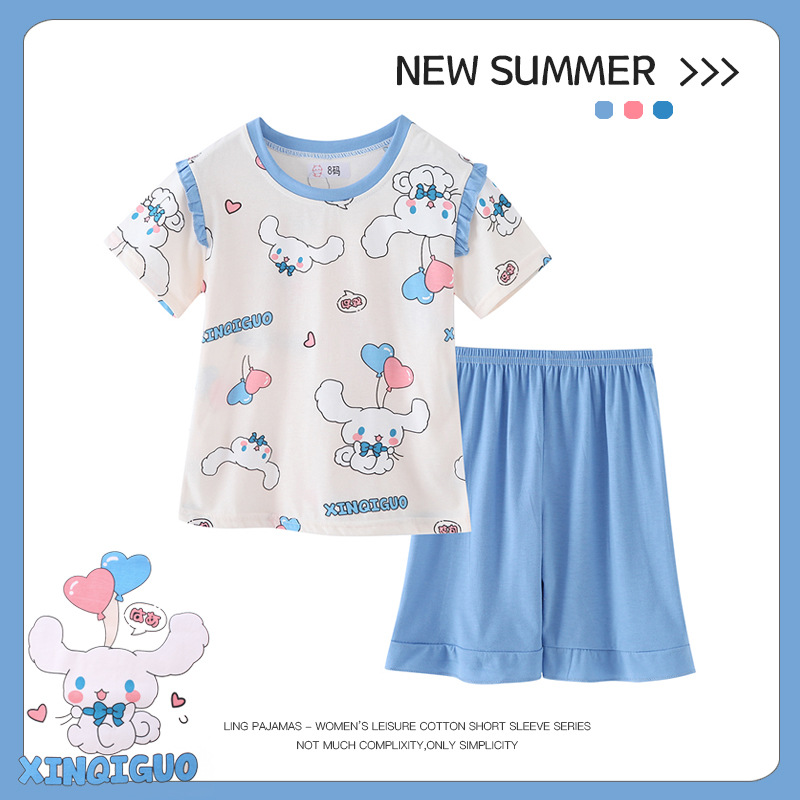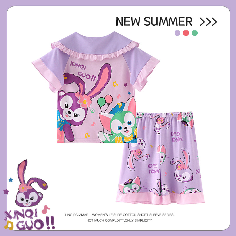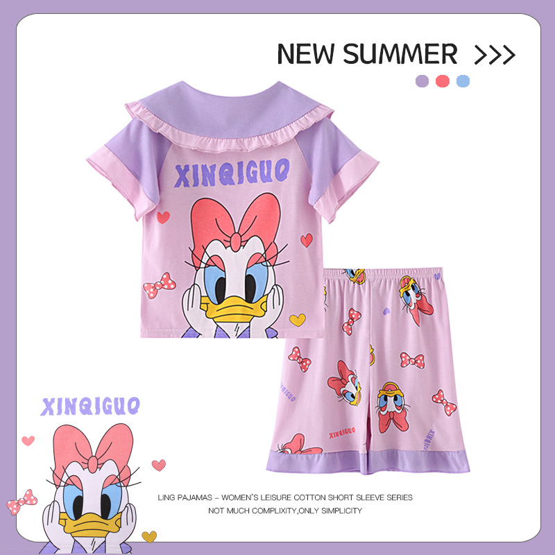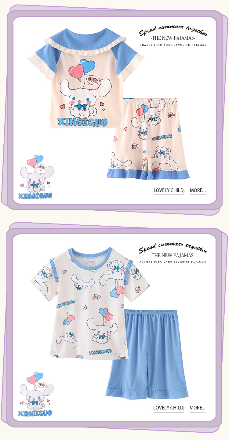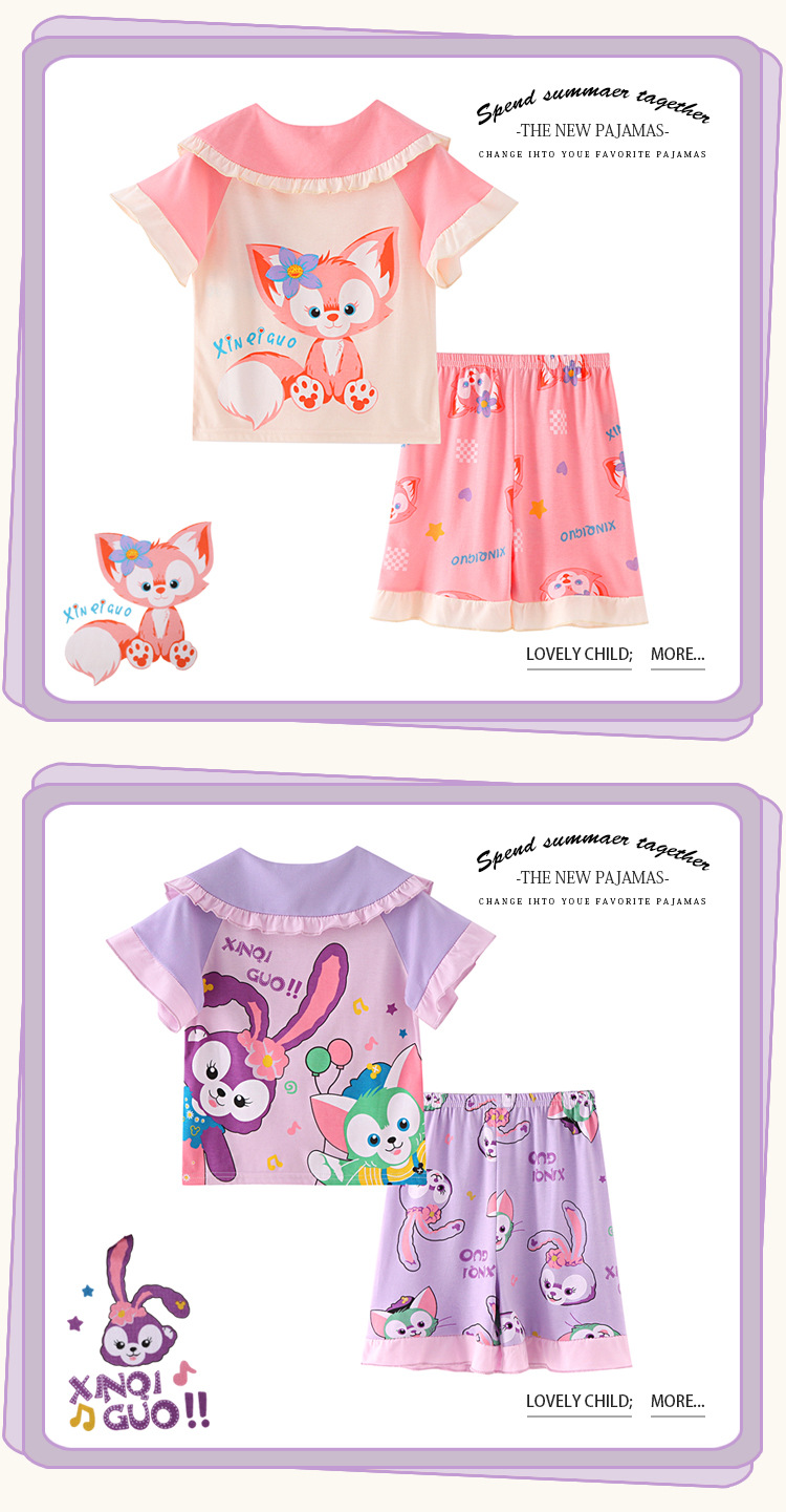 여자 잠옷 여름 얇은 빗질 면 짧은 소매 세트 어린이 어린 소녀의 귀여운 중간 큰 어린이 서양 스타일 가정 옷