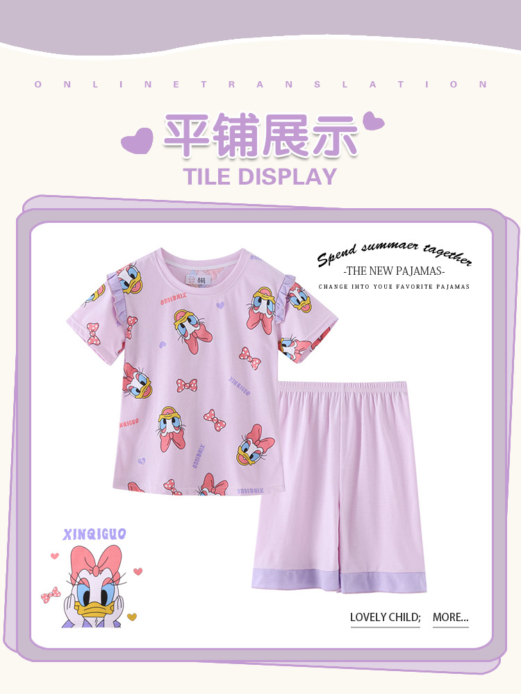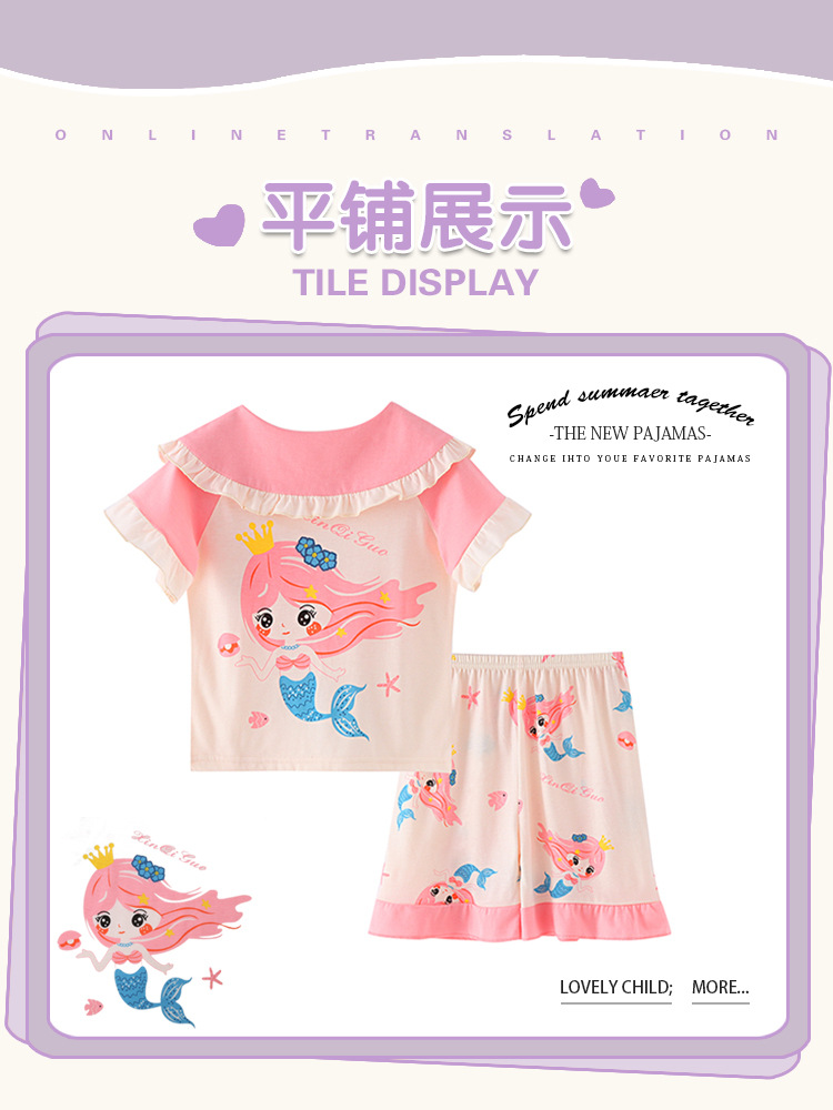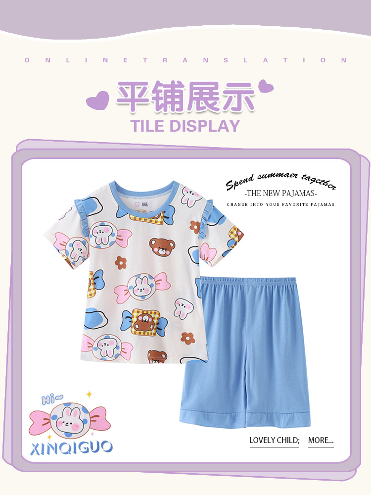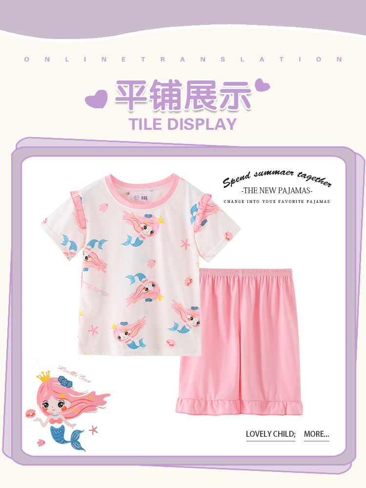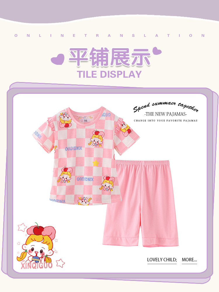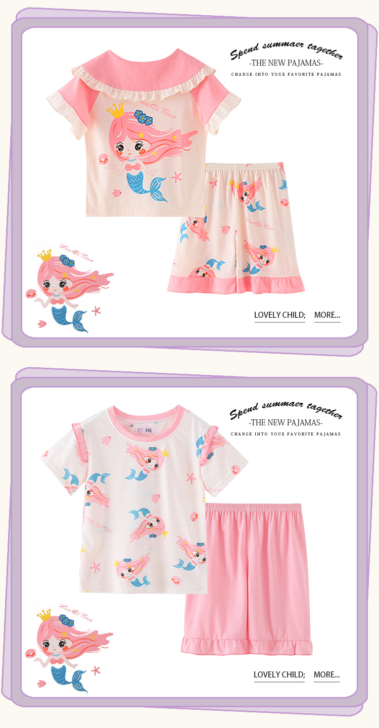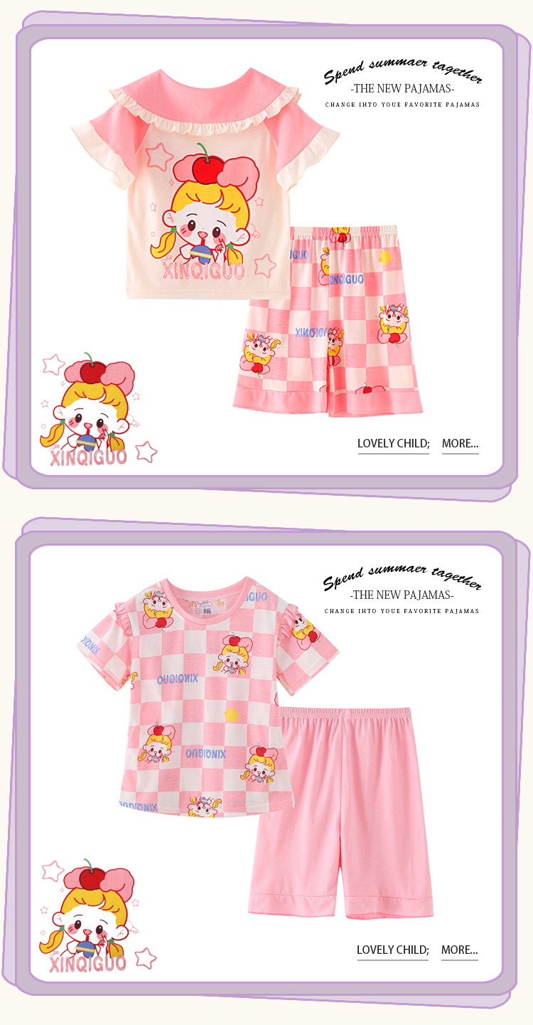 여자 잠옷 여름 얇은 빗질 면 짧은 소매 세트 어린이 어린 소녀의 귀여운 중간 큰 어린이 서양 스타일 가정 옷스토어 가기