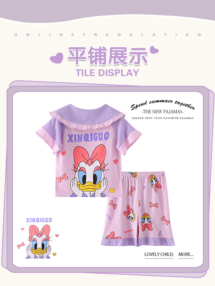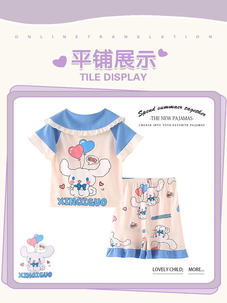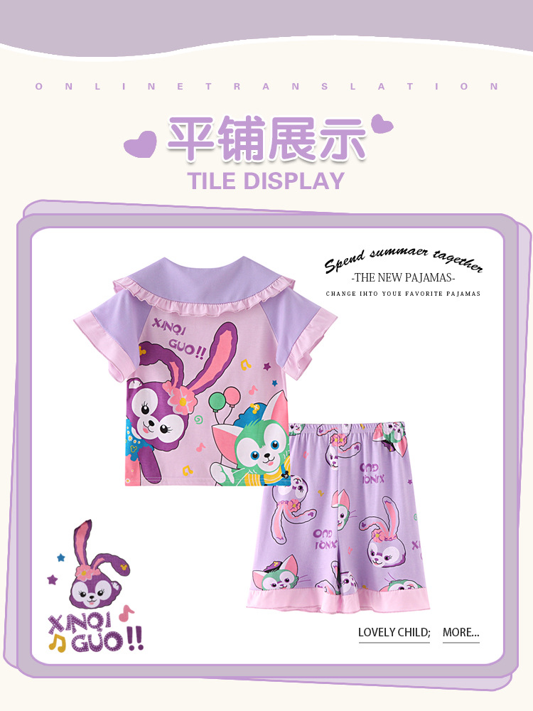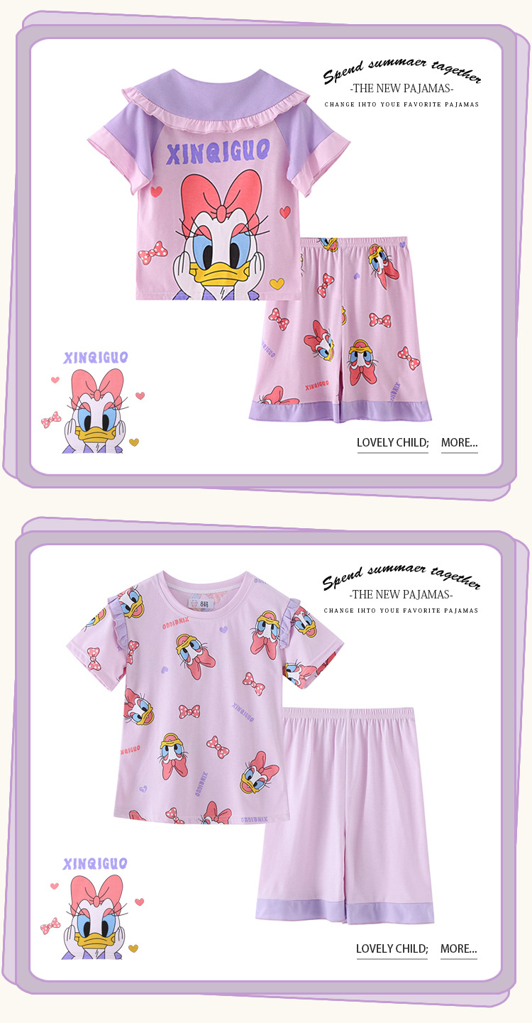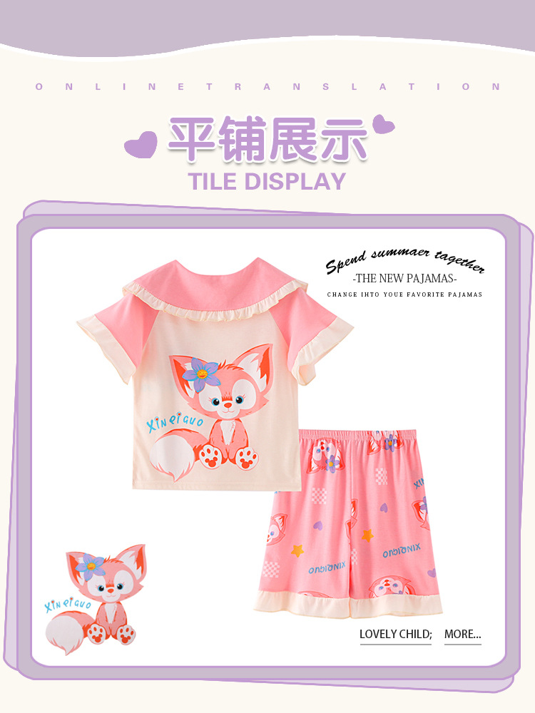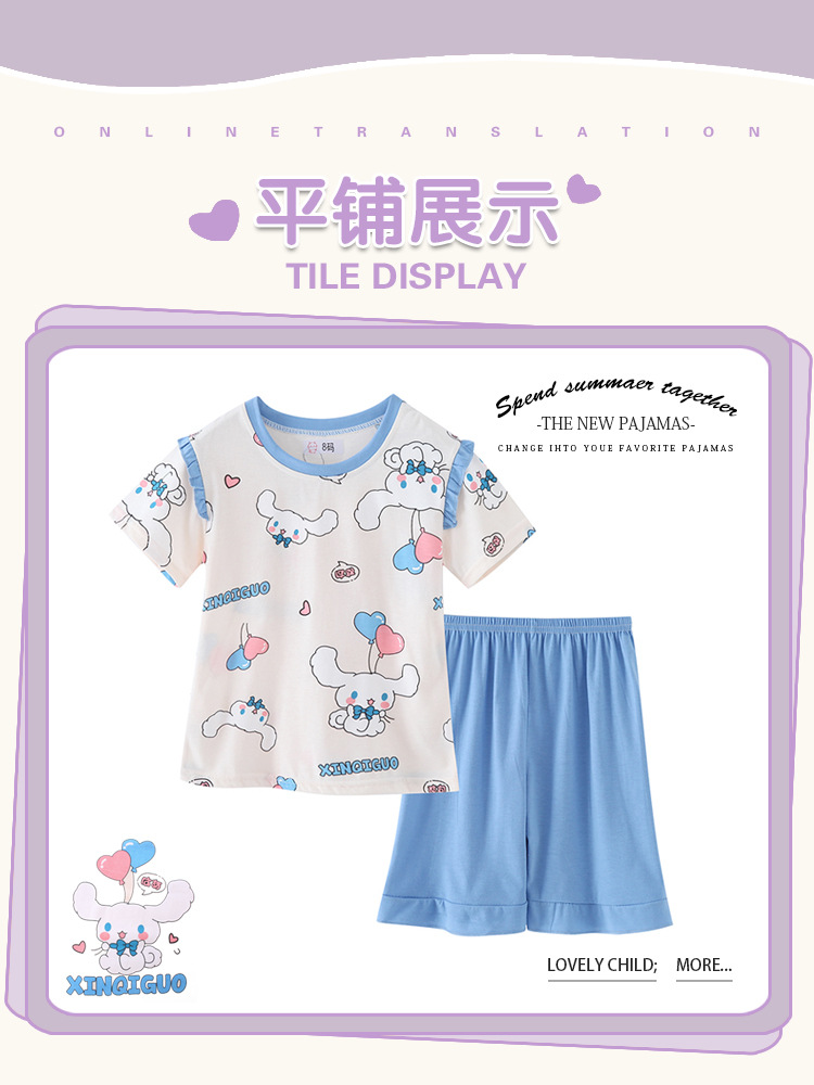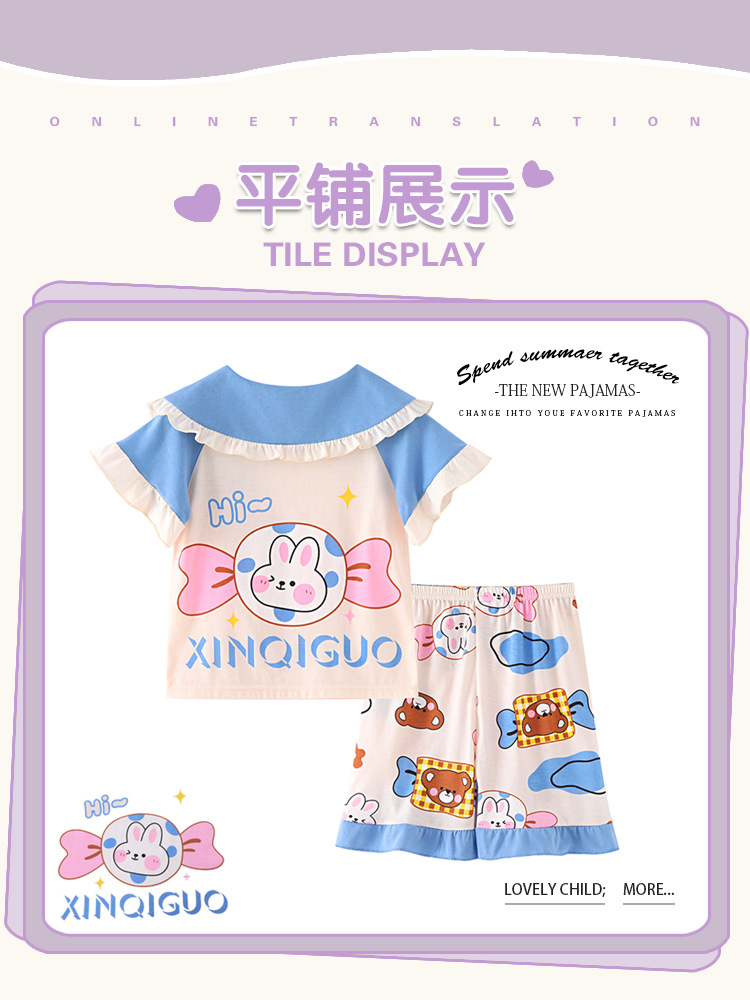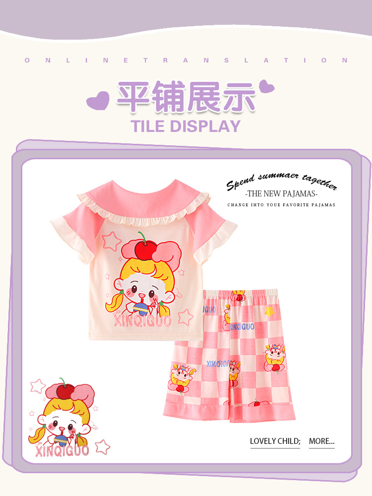여자 잠옷 여름 얇은 빗질 면 짧은 소매 세트 어린이 어린 소녀의 귀여운 중간 큰 어린이 서양 스타일 가정 옷스토어 가기