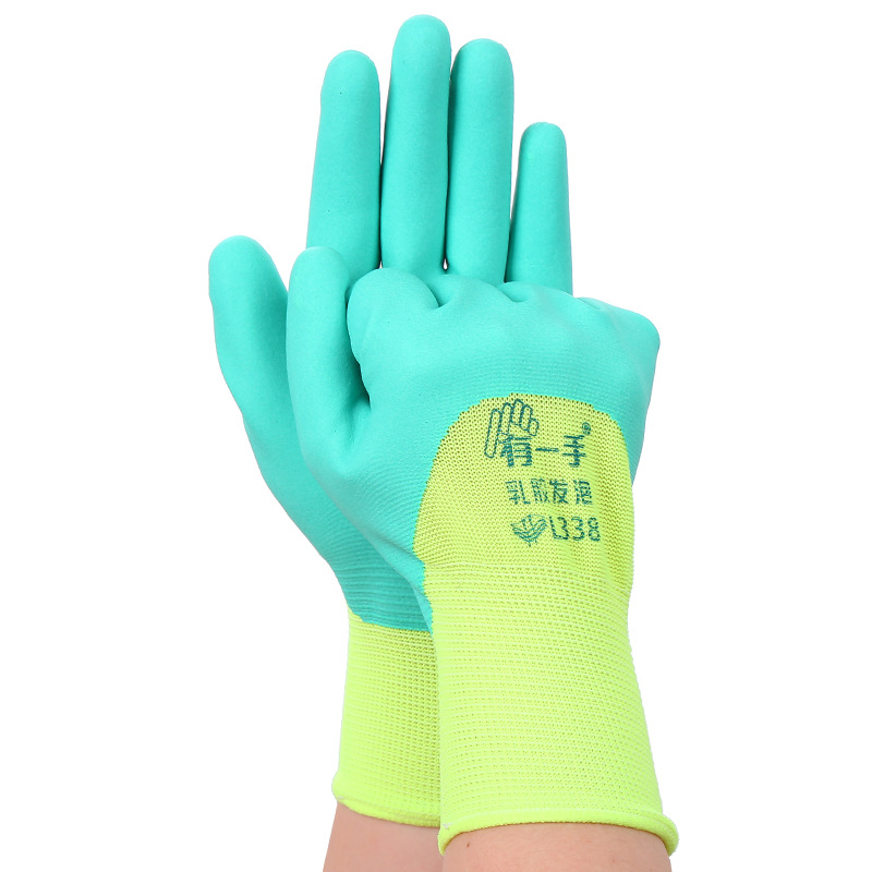 Dengsheng L338 은 손 라텍스 거품 여름 비 냄새 부드러운 손 부드러운 고무 처리 미끄럼 통기성 왕 라오 바오 장갑