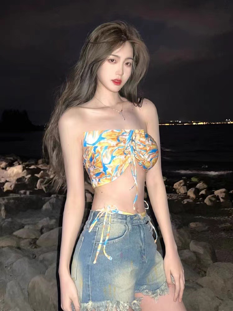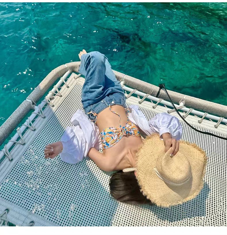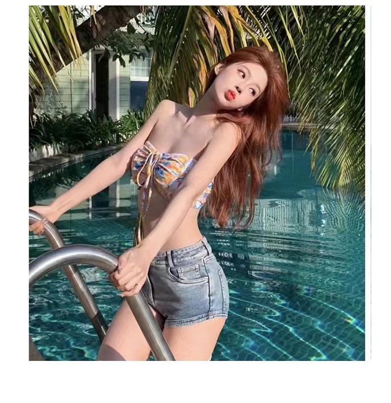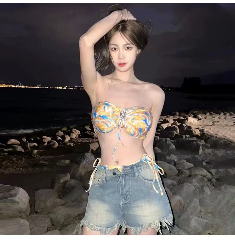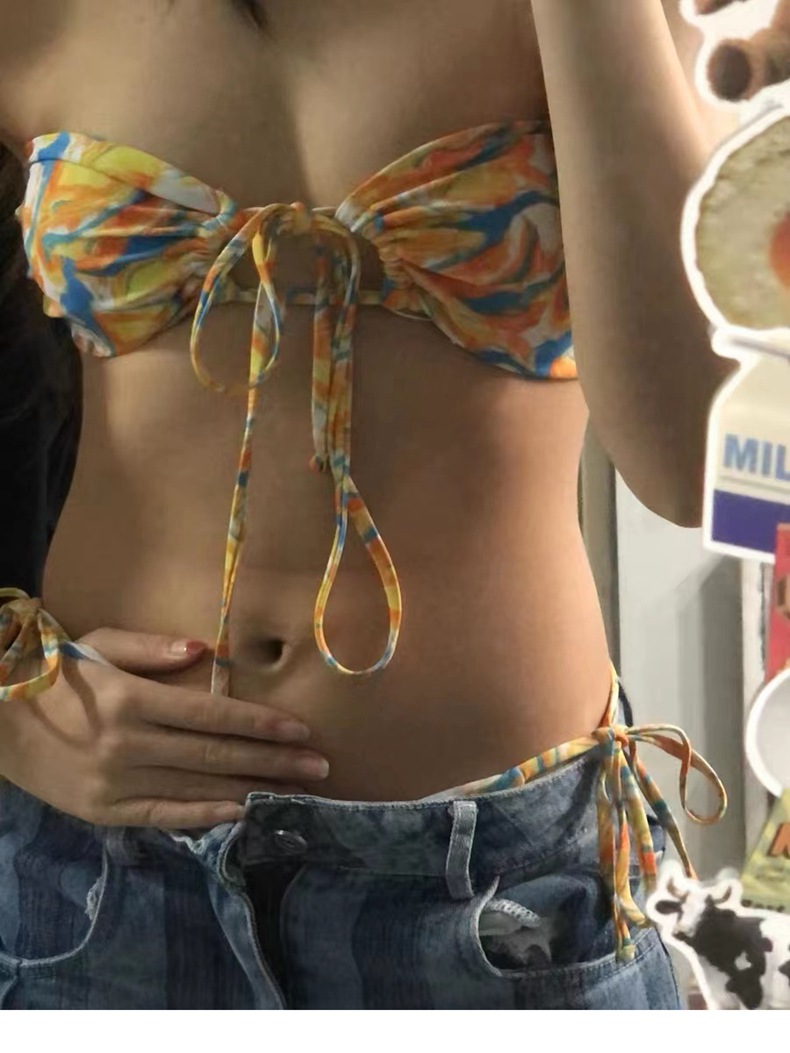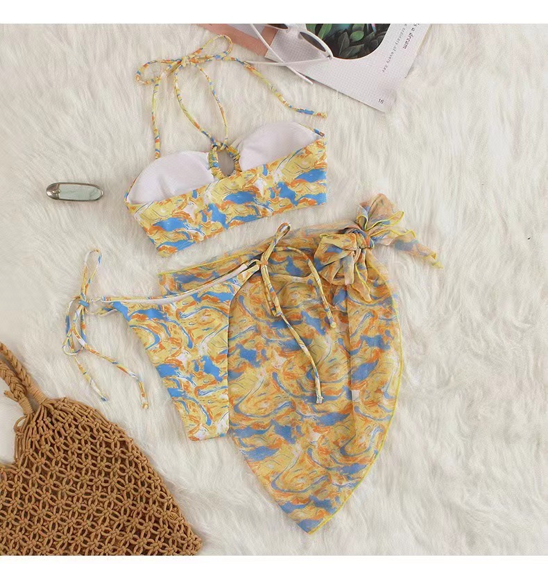 새로운 노란색 섹시한 멀티 타이 비키니 2023 새로운 유럽과 미국 분할 온천 해변 3 점 수영복스토어 가기