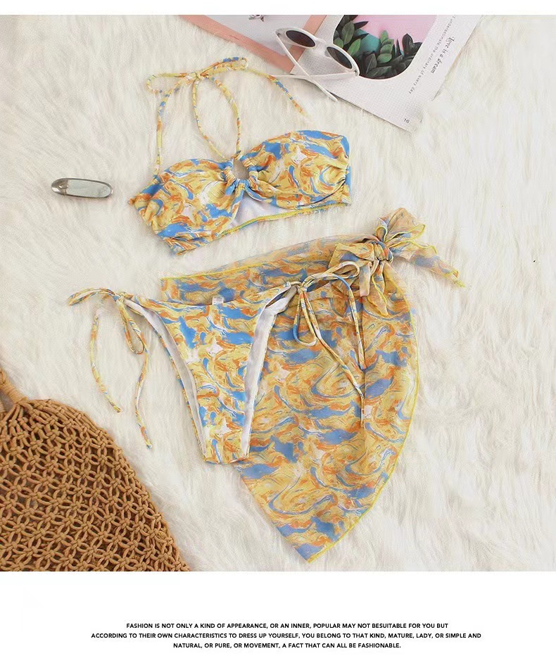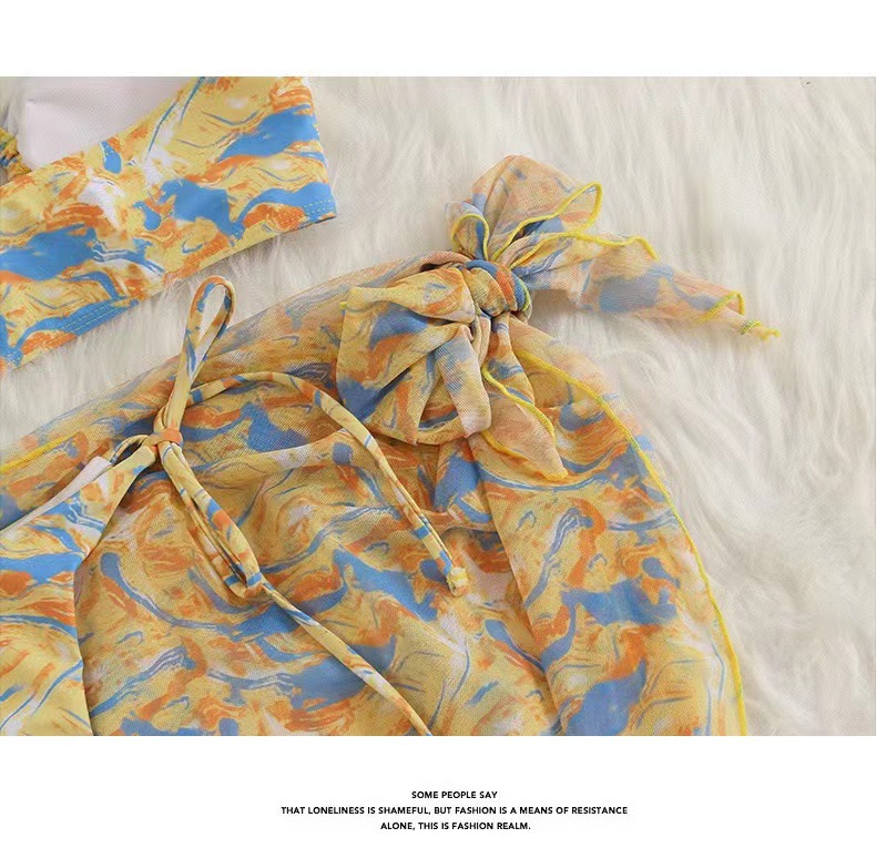 새로운 노란색 섹시한 멀티 타이 비키니 2023 새로운 유럽과 미국 분할 온천 해변 3 점 수영복