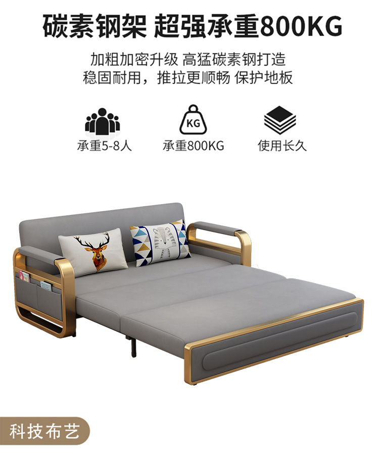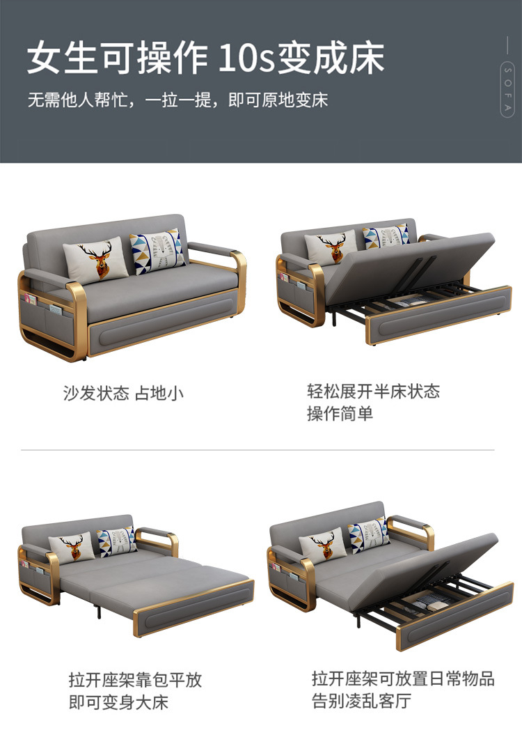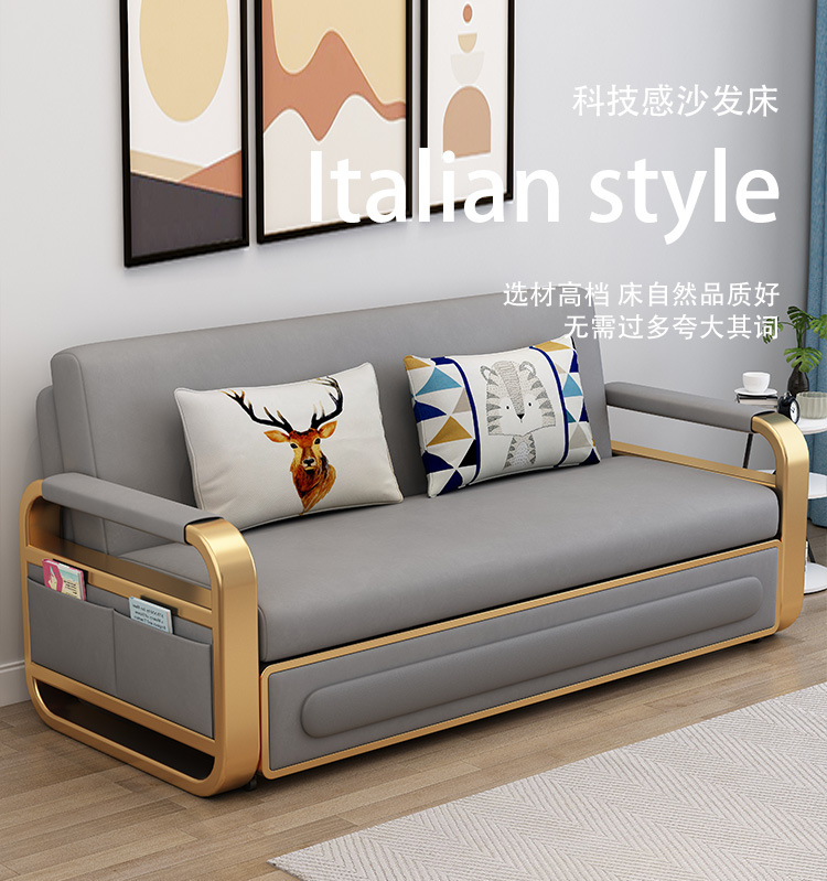 가벼운 럭셔리 소파 베드 다기능 접이식 착석 및 수면 싱글 이중 사용 거실 점심 시간 푸시 풀 기술 천 작은 아파트