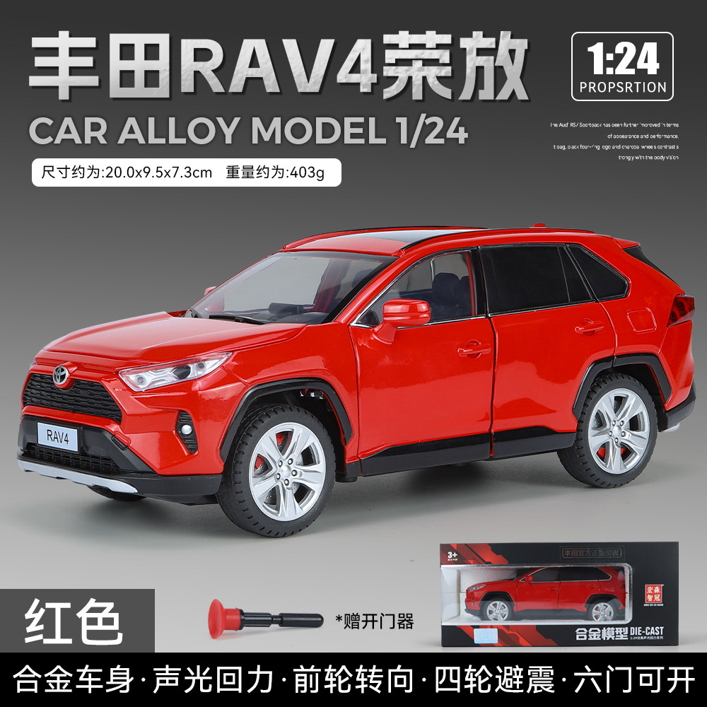 1/24 도요타 Rongfang RAV4 합금 자동차 모델 Huili 음향 광학 장난감 오프로드 차량 시뮬레이션 금속 자동차 박스스토어 가기