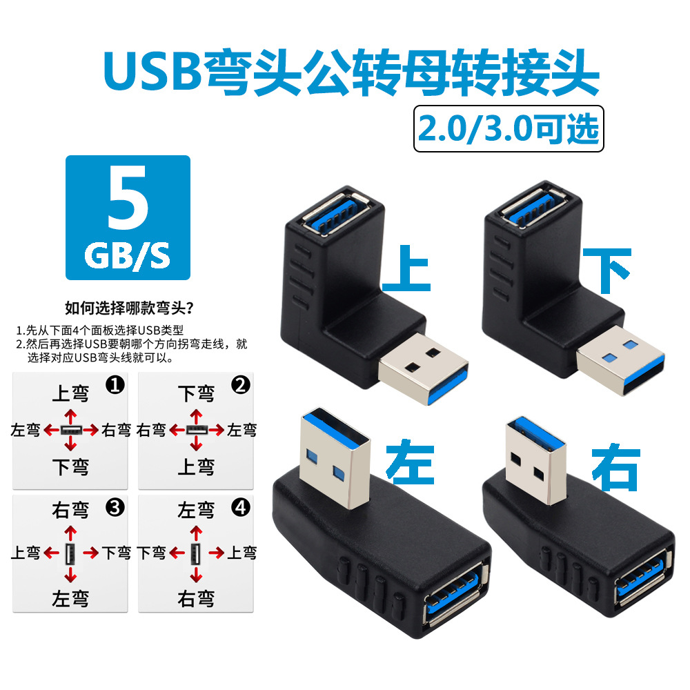 产品其它名称:USB3.0公转母延长线转接头上下左右弯头90度USB3.0数据直角