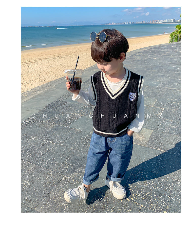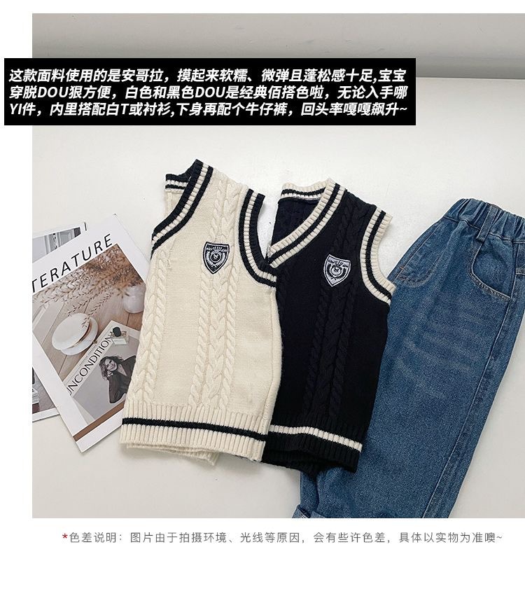 어린이 스웨터 조끼 아기의 스웨터 봄과 가을 여아 아카데미 스타일 소년의 니트 스웨터 조끼 작은 조끼 말스토어 가기