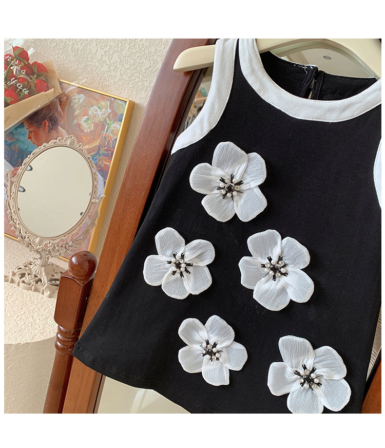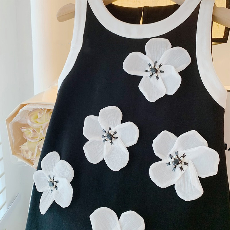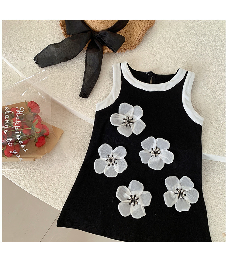 소녀의 색상 대비 민소매 원피스 여름 라운드 넥 통기성 어린이 입체 꽃 공주 원피스
