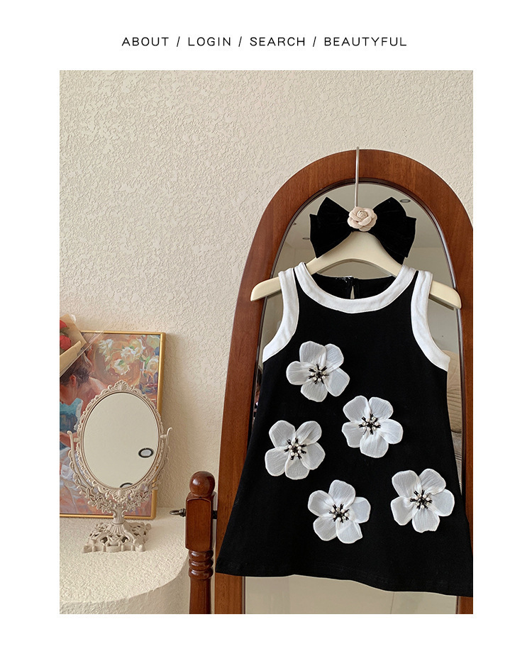 소녀의 색상 대비 민소매 원피스 여름 라운드 넥 통기성 어린이 입체 꽃 공주 원피스스토어 가기