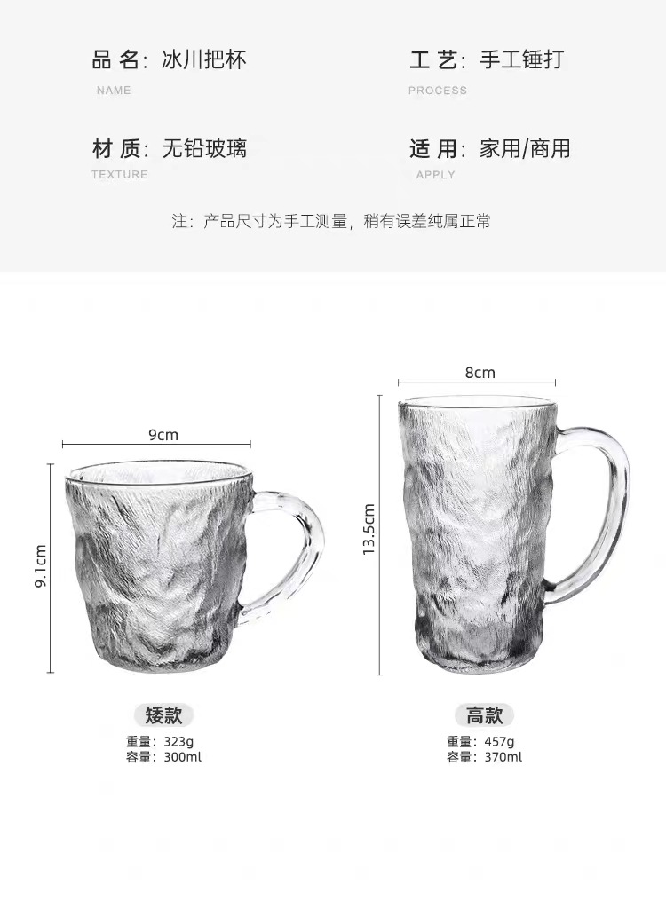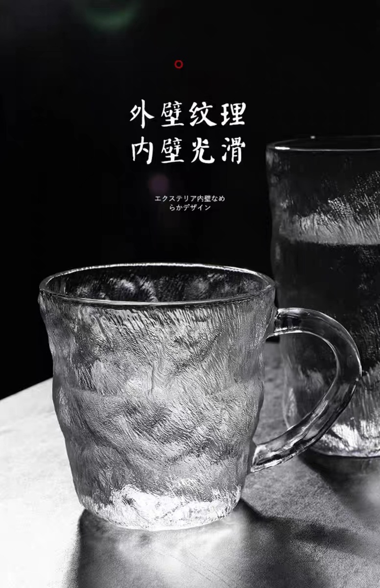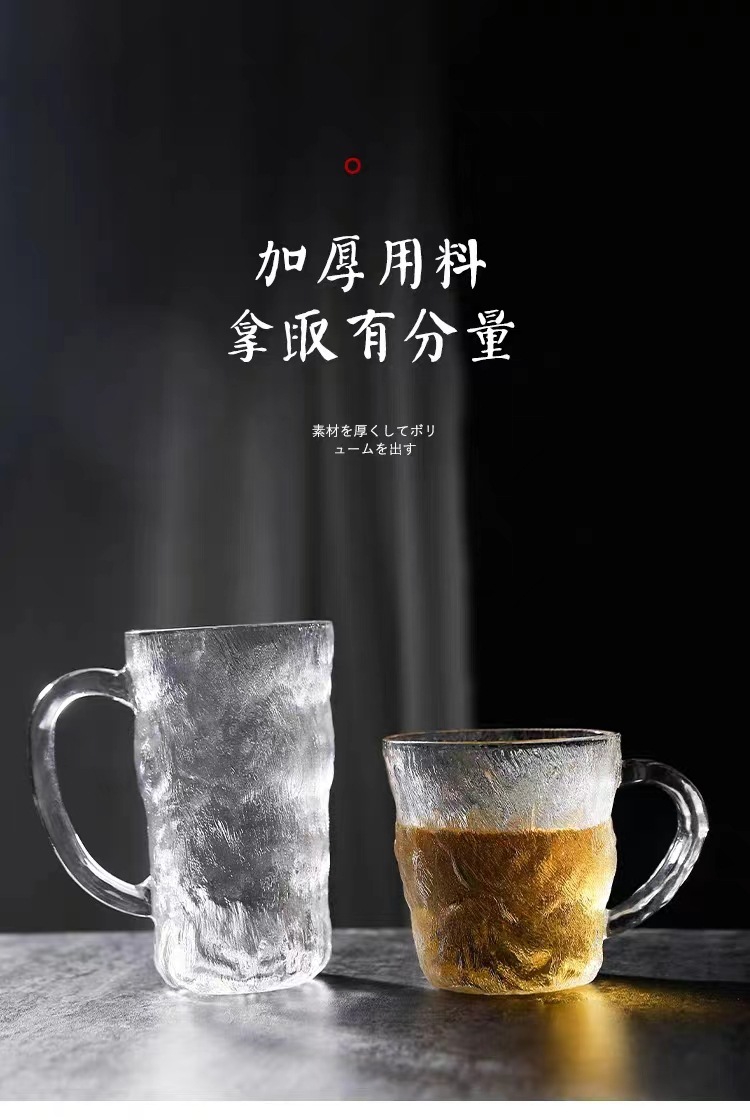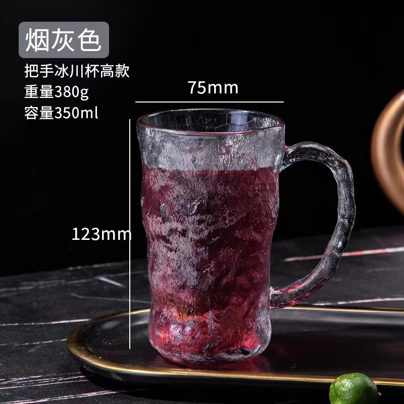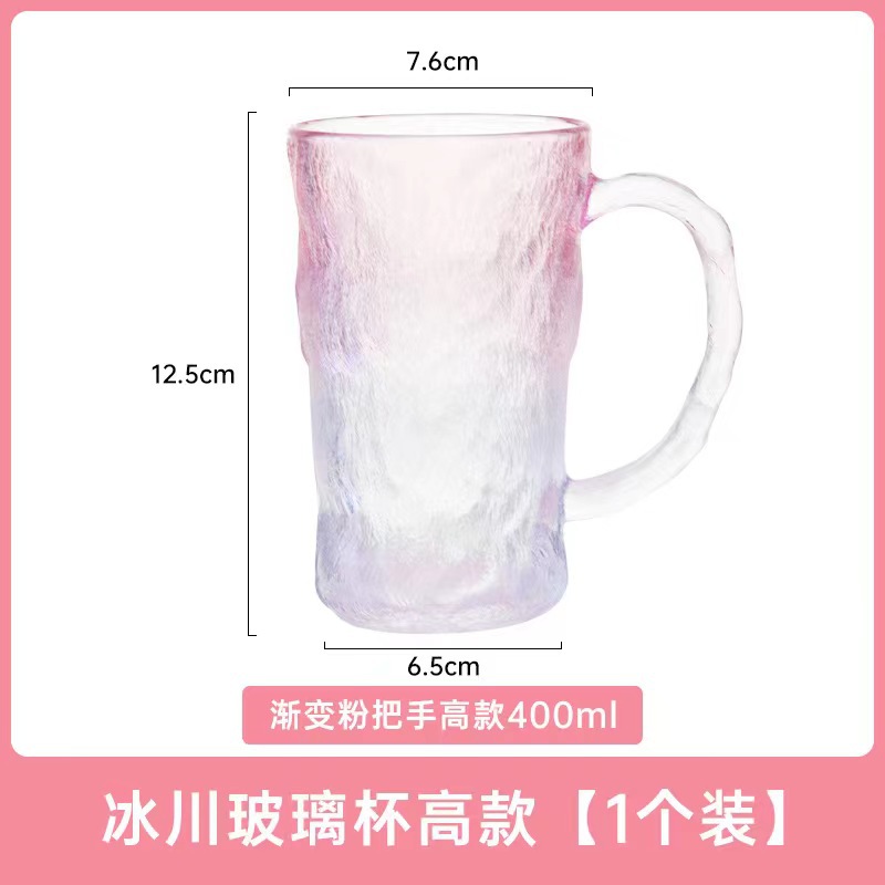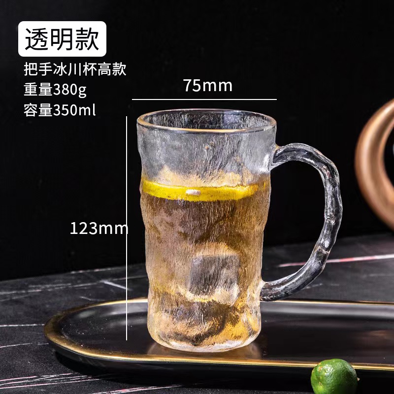 손잡이가있는 빙하 패턴 유리 하이 컬러 값 물 컵 남성용 홈 맥주 고급 감각 마시는 컵 찻잔스토어 가기