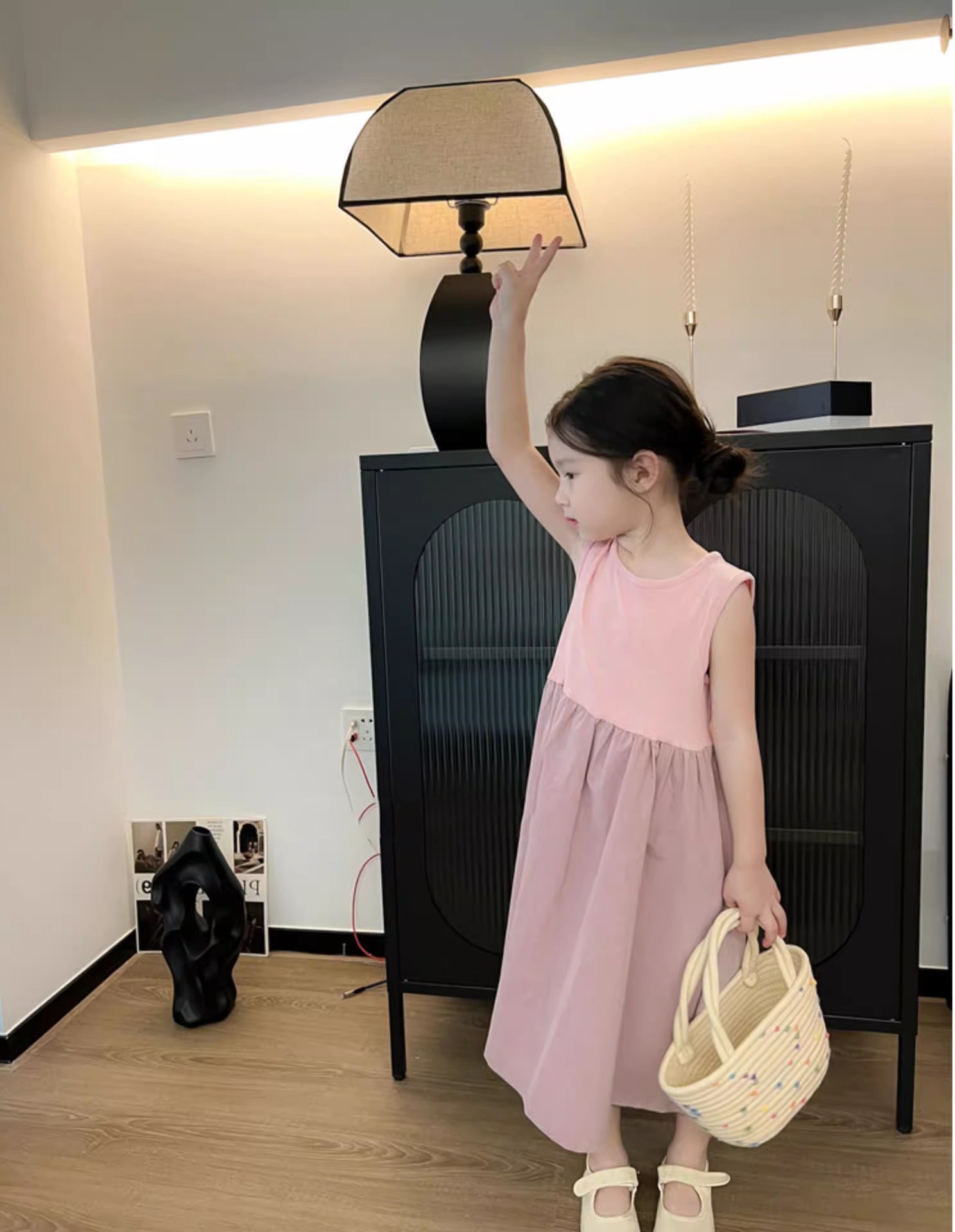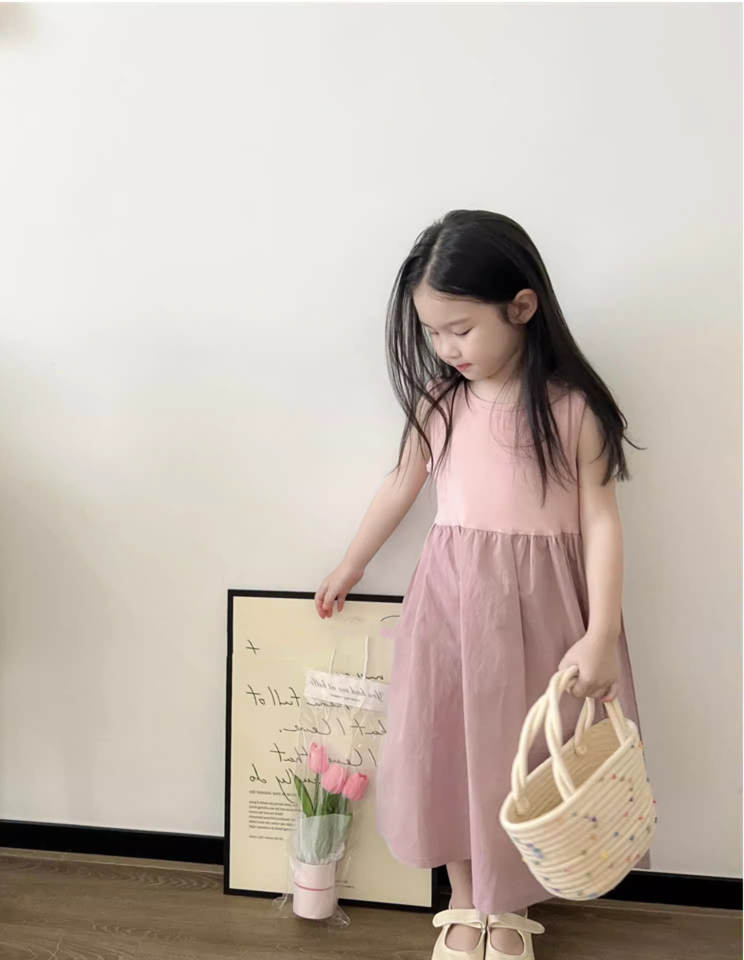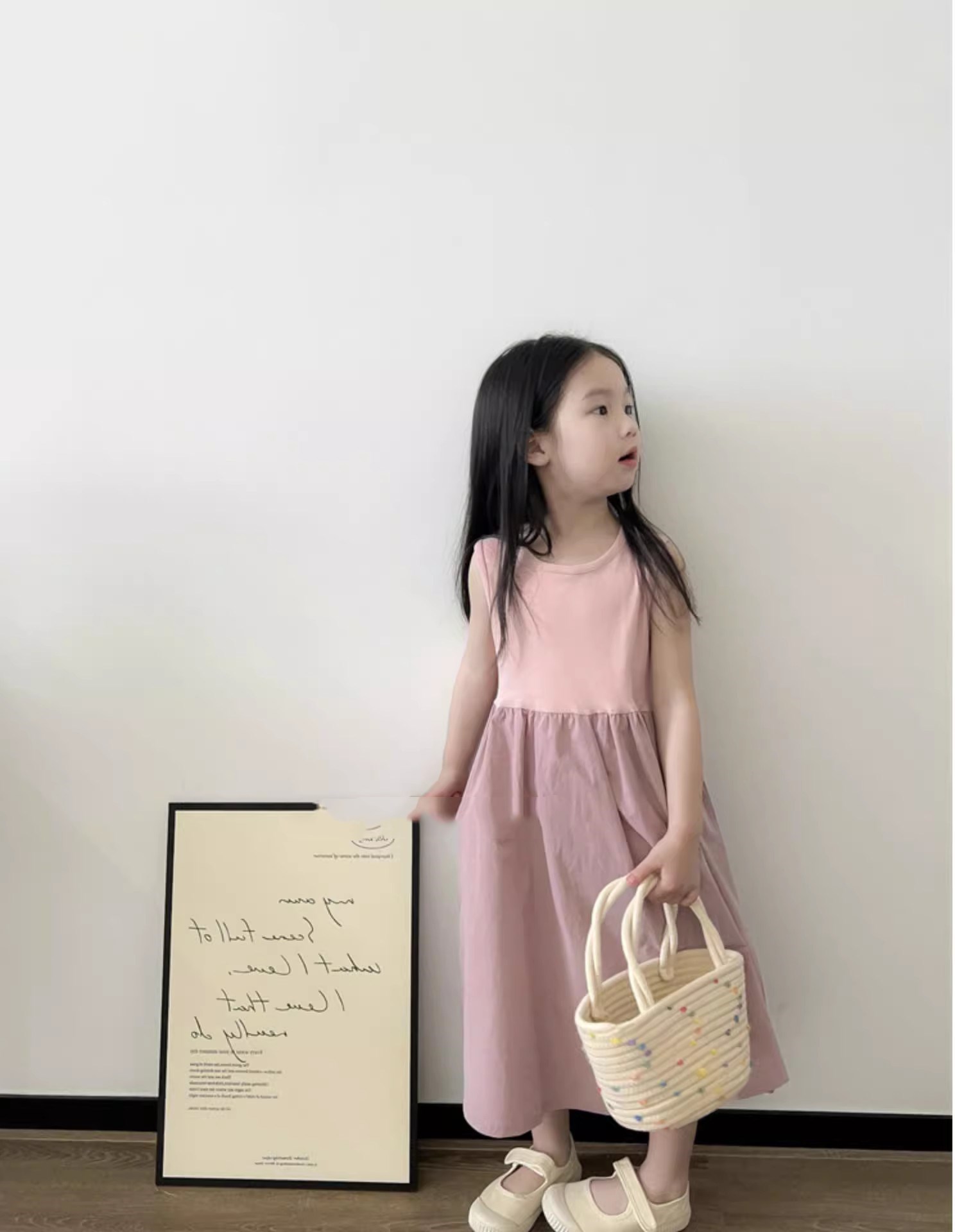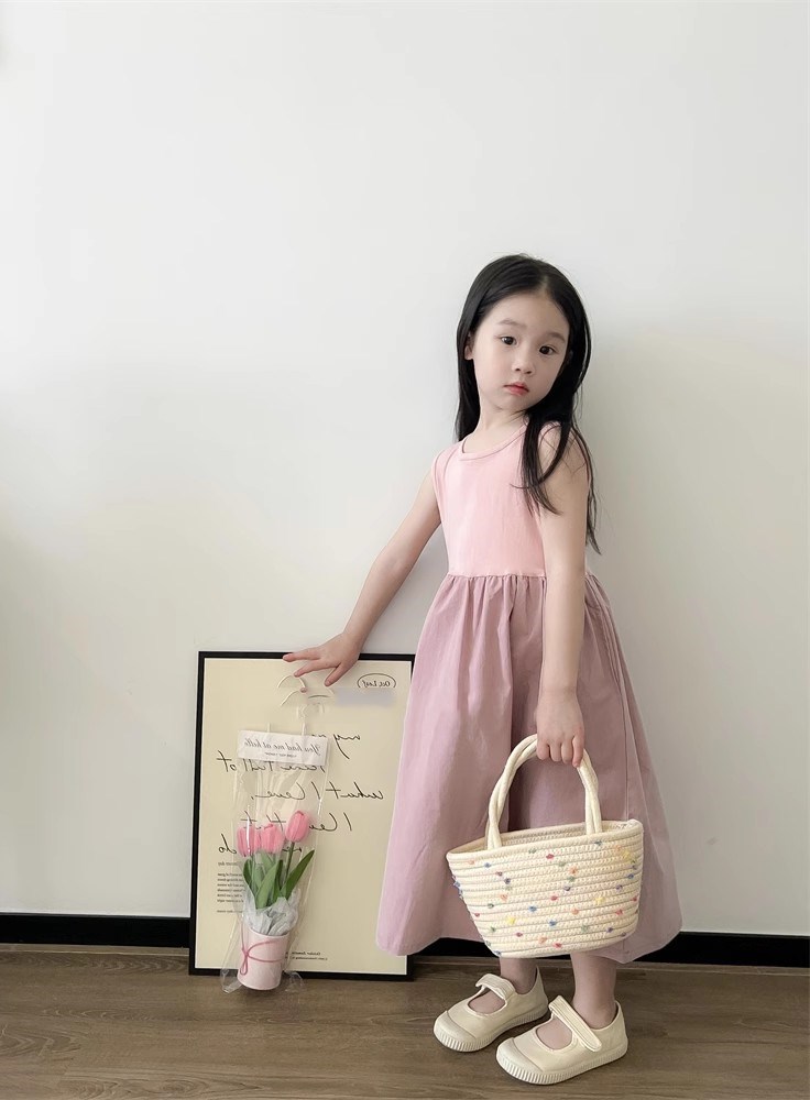 여아 스커트 달콤한 스티치 원피스 공주 스커트 롱 스커트 23 여름 새로운 대외 무역 아동 의류 3-8 세스토어 가기