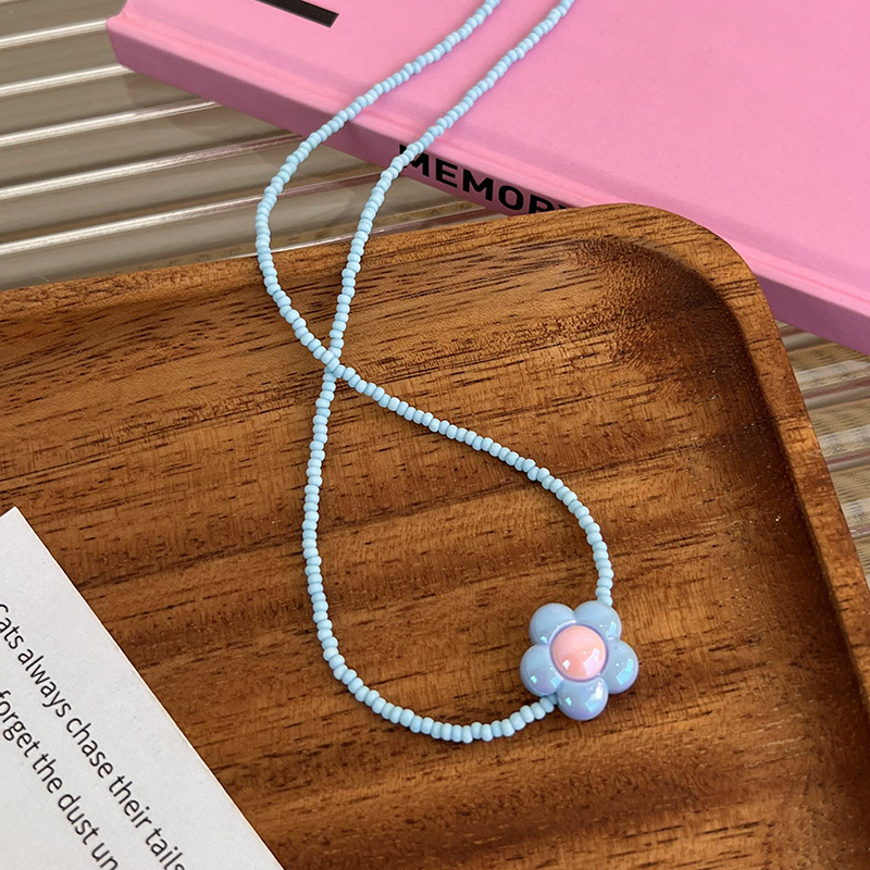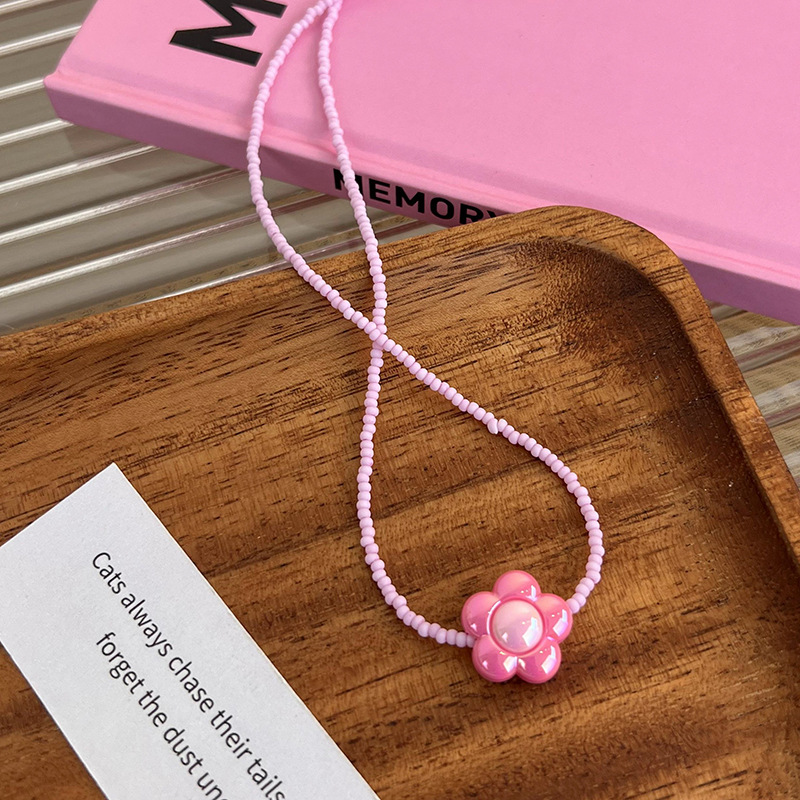 도파민 착용 새로운 귀여운 아크릴 색상 대비 꽃 색 구슬 목걸이 신선한 패션 여성의 쇄골 체인