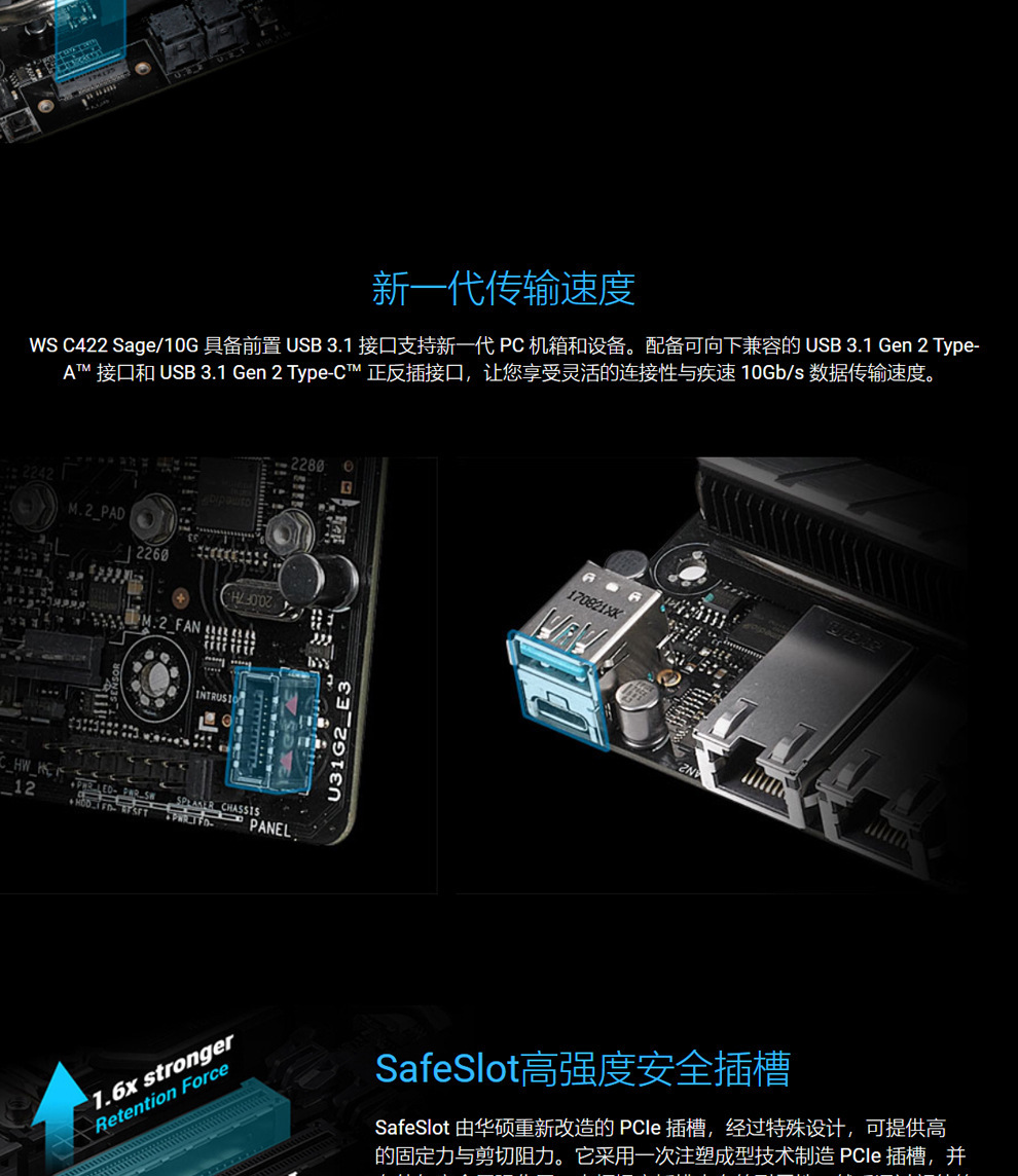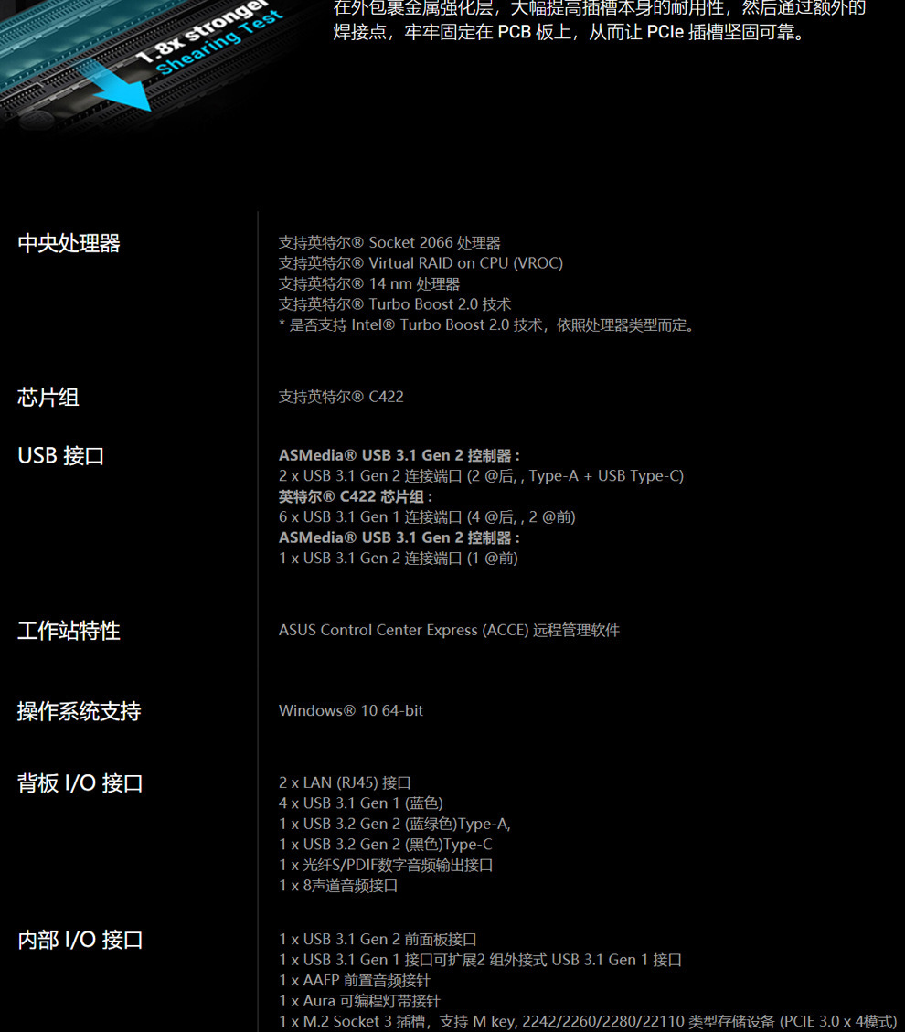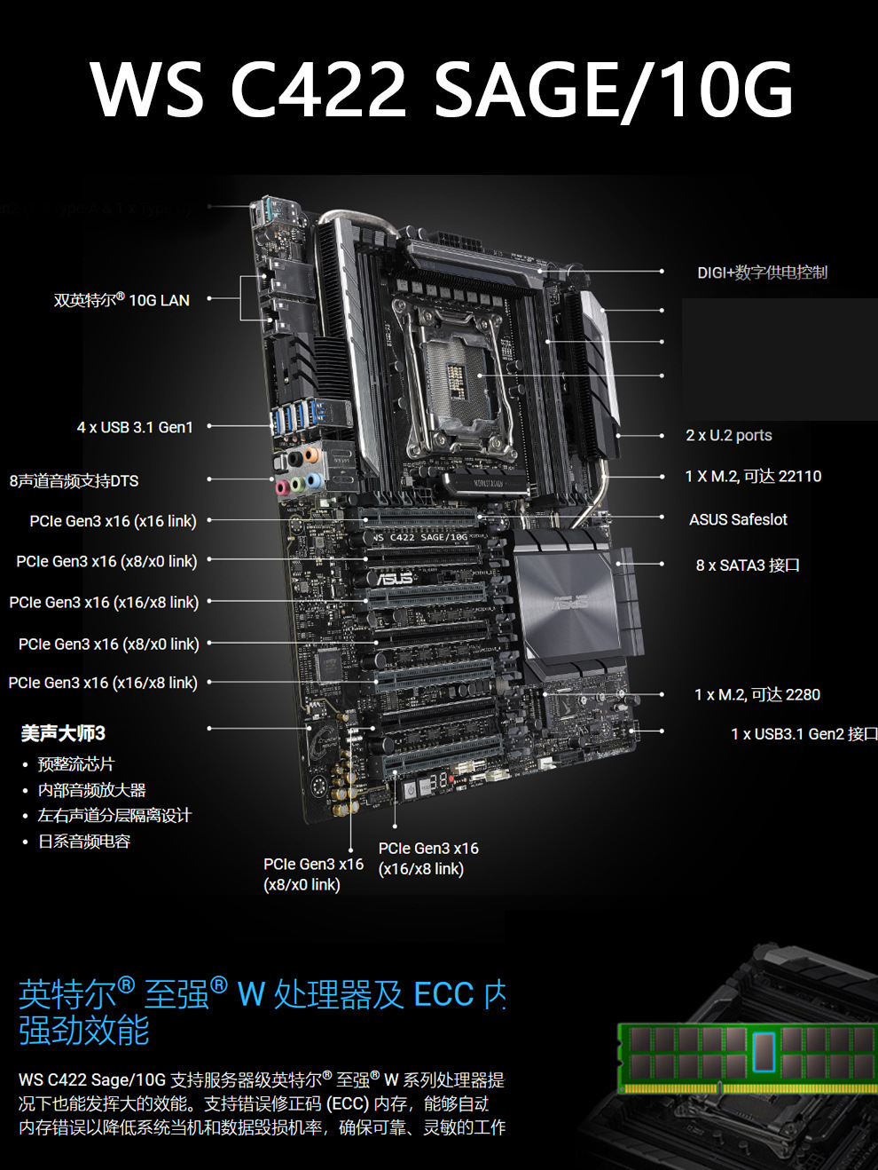 적용 가능한 워크 스테이션 인텔 아수스 프로 WS C422-ACE 지원 3 카드 마더 보드 지원 크로스 파이어