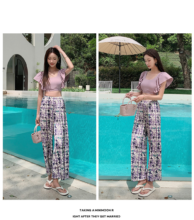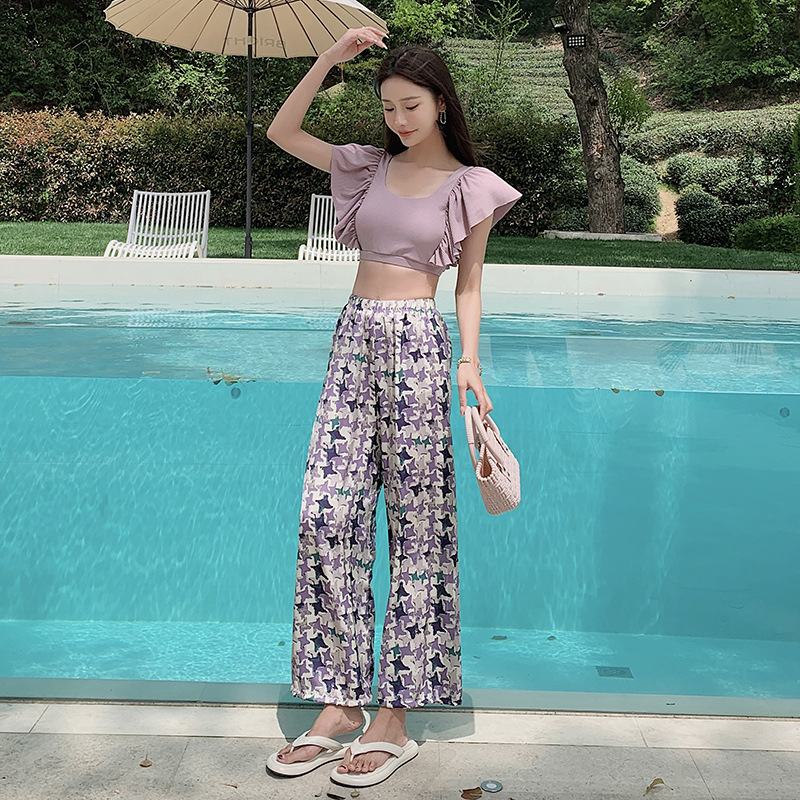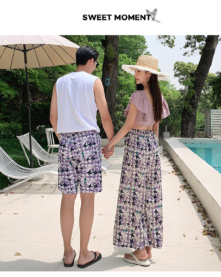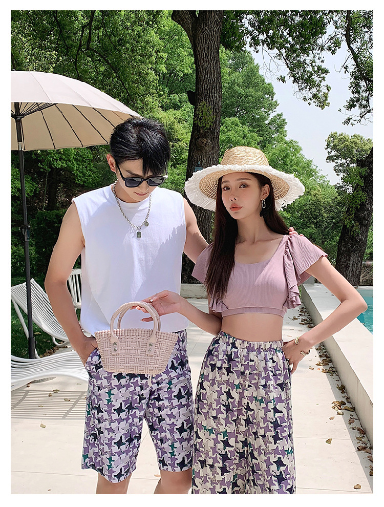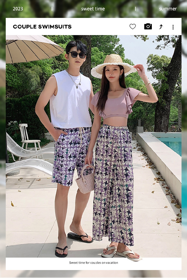 커플 수영복 여성용 비키니 스플릿 쓰리피스 스파 수영복 작은 가슴 개더링 하이 웨이스트 복서 홀리데이 남성용