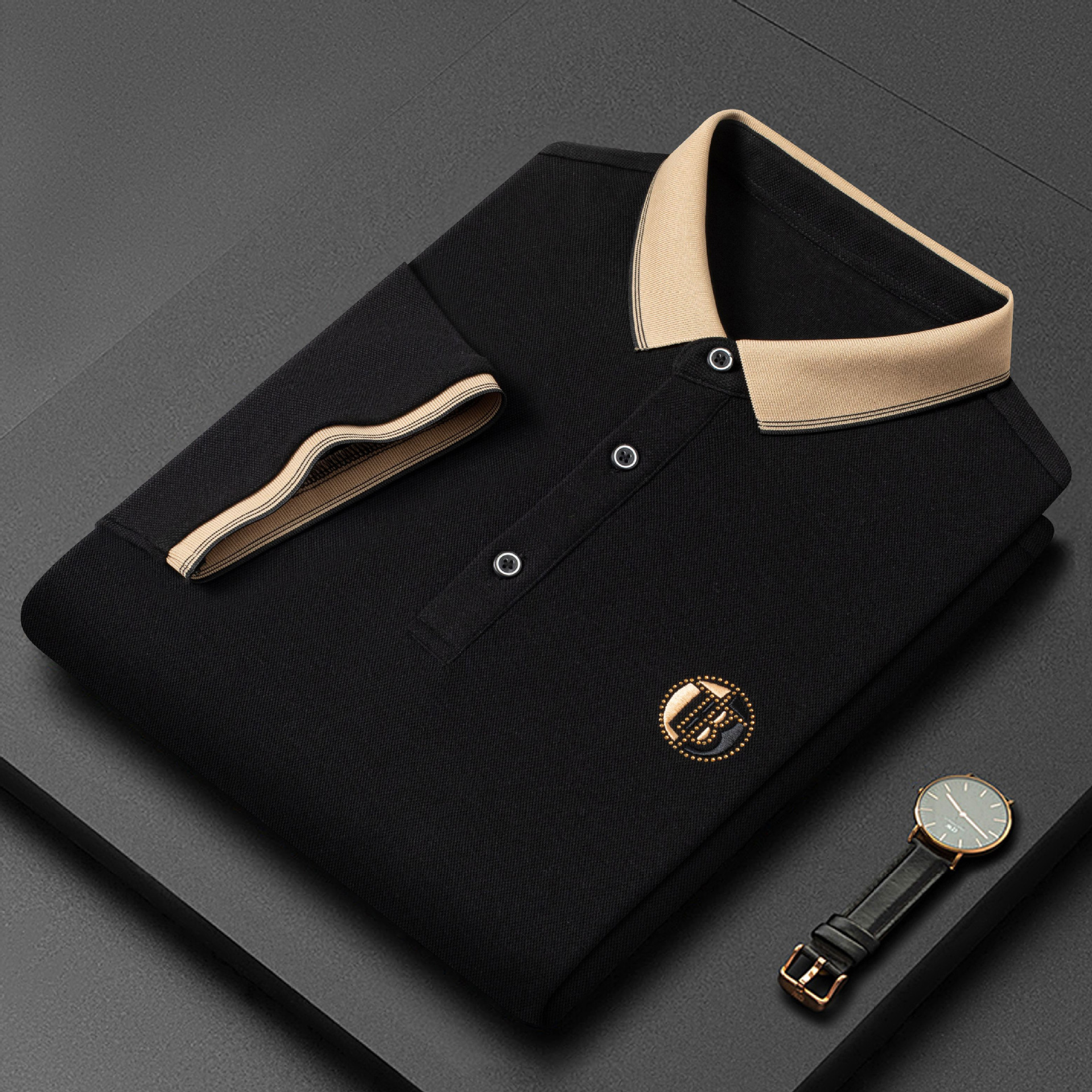 여름 새로운 페르시 메쉬 옷깃 티셔츠 자수 다이아몬드 캐주얼 반팔 남성 폴로 셔츠 최고 도매스토어 가기