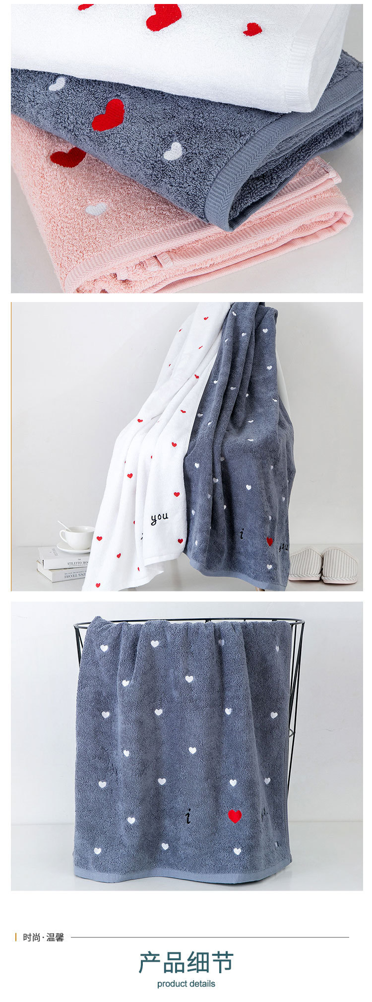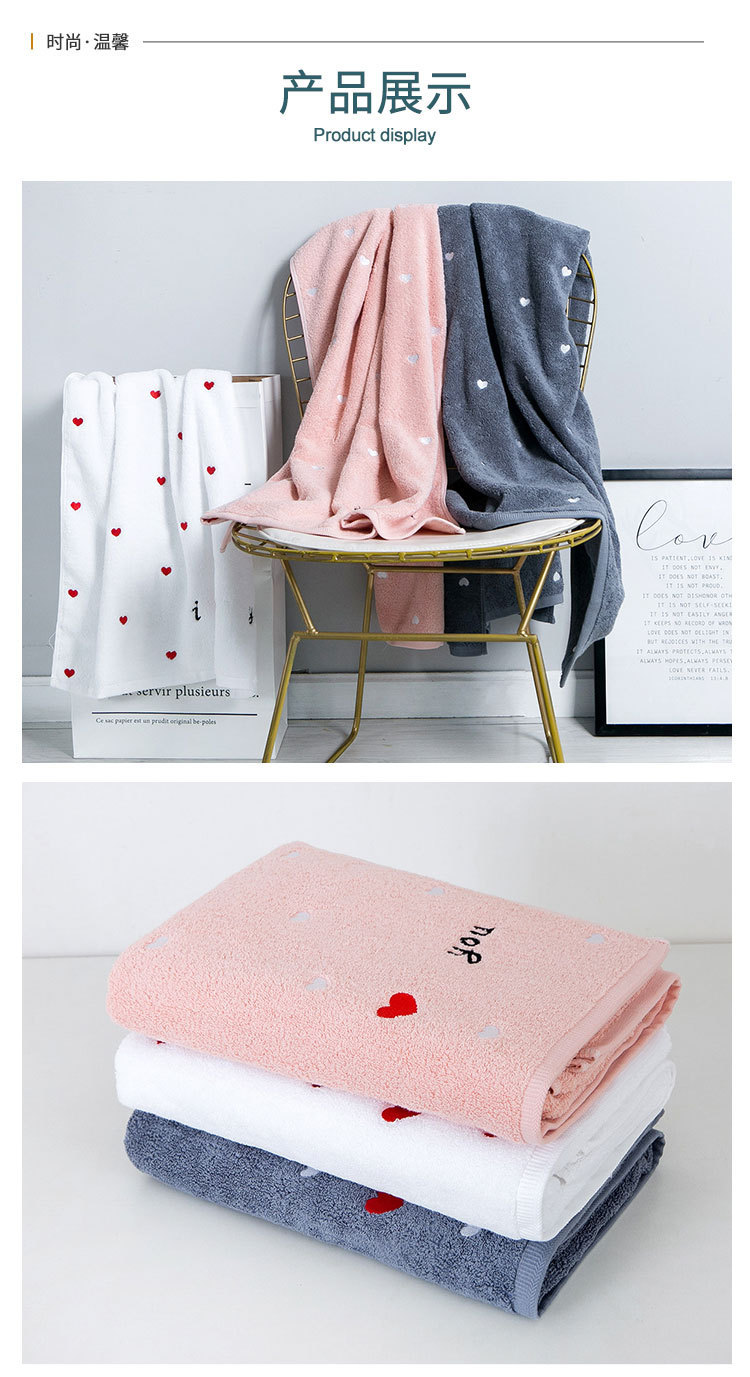 풀 자수 러브 코튼 목욕 타올 그물 빨강 목욕 타올 면 성인 증가 소프트 흡수 인쇄 가능 로고 도매