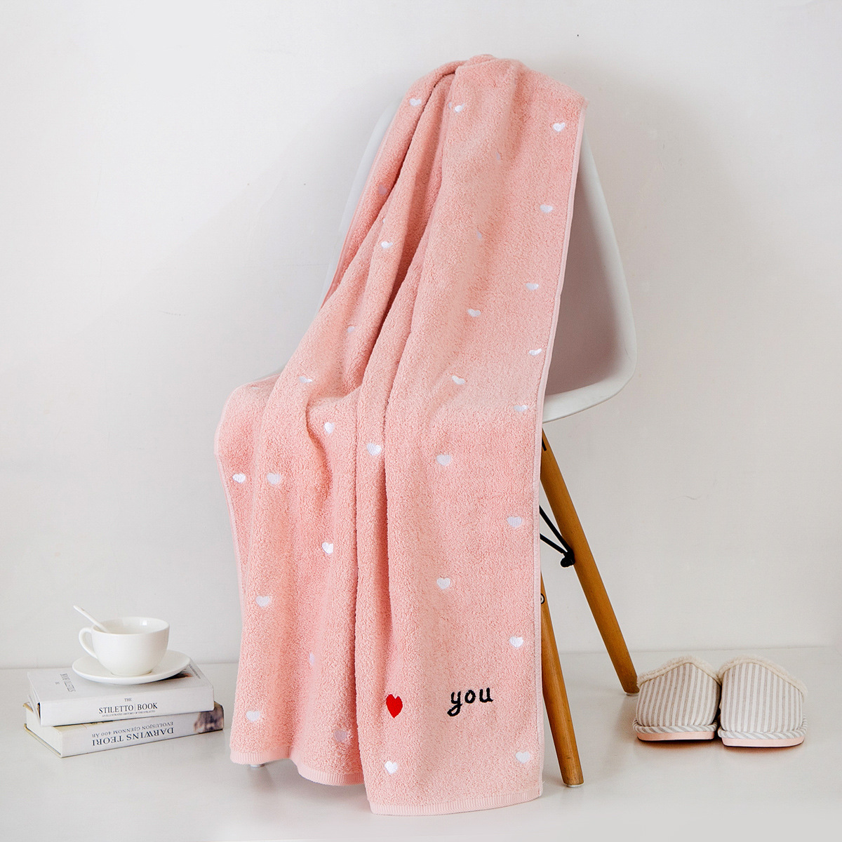 풀 자수 러브 코튼 목욕 타올 그물 빨강 목욕 타올 면 성인 증가 소프트 흡수 인쇄 가능 로고 도매스토어 가기
