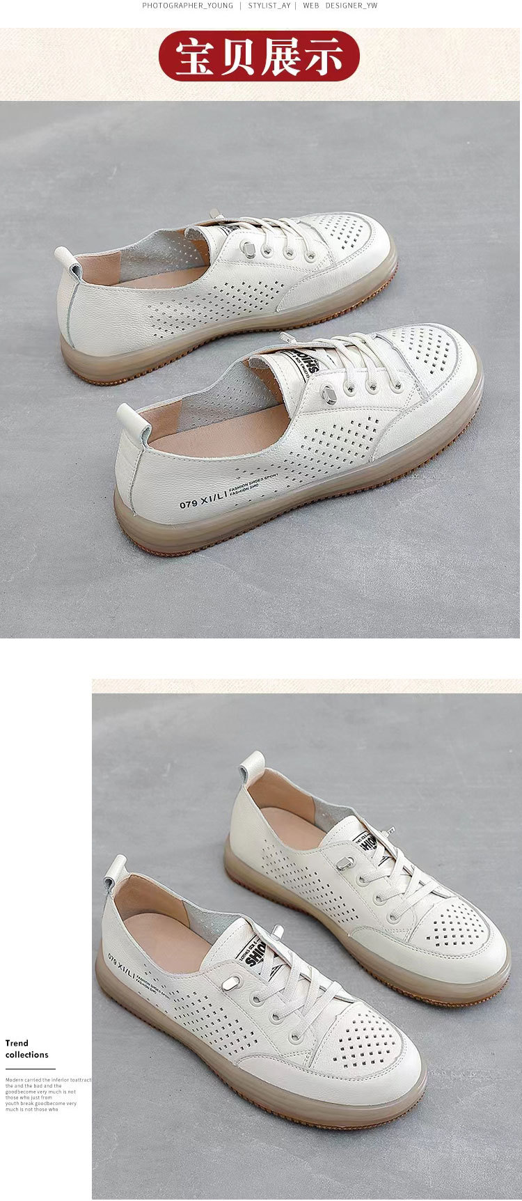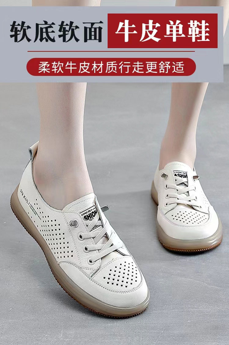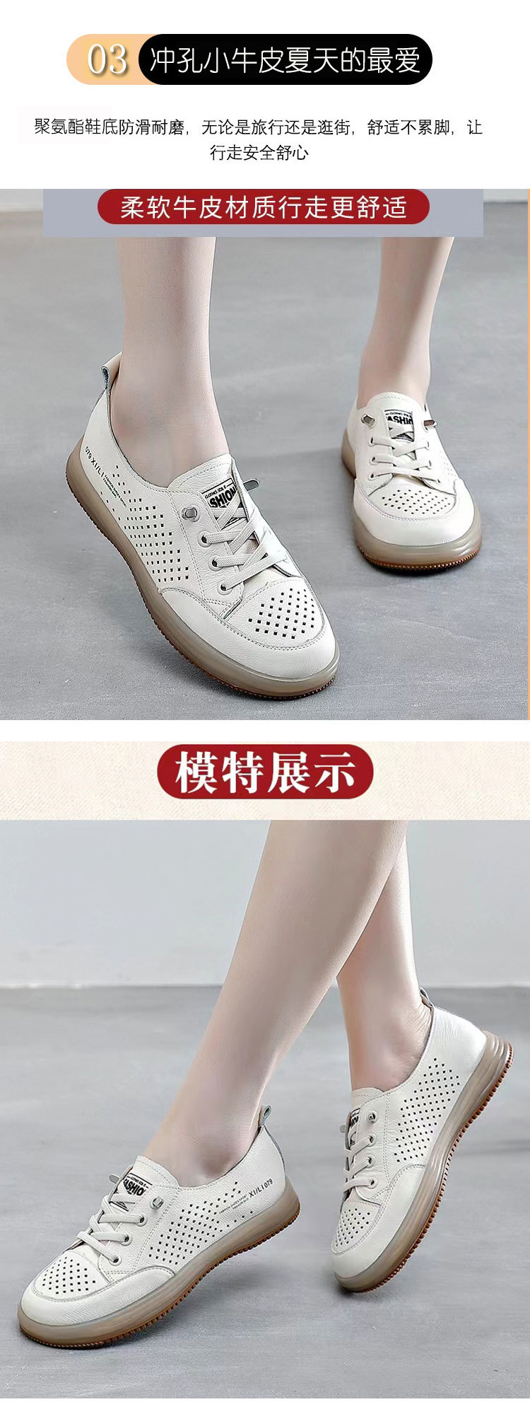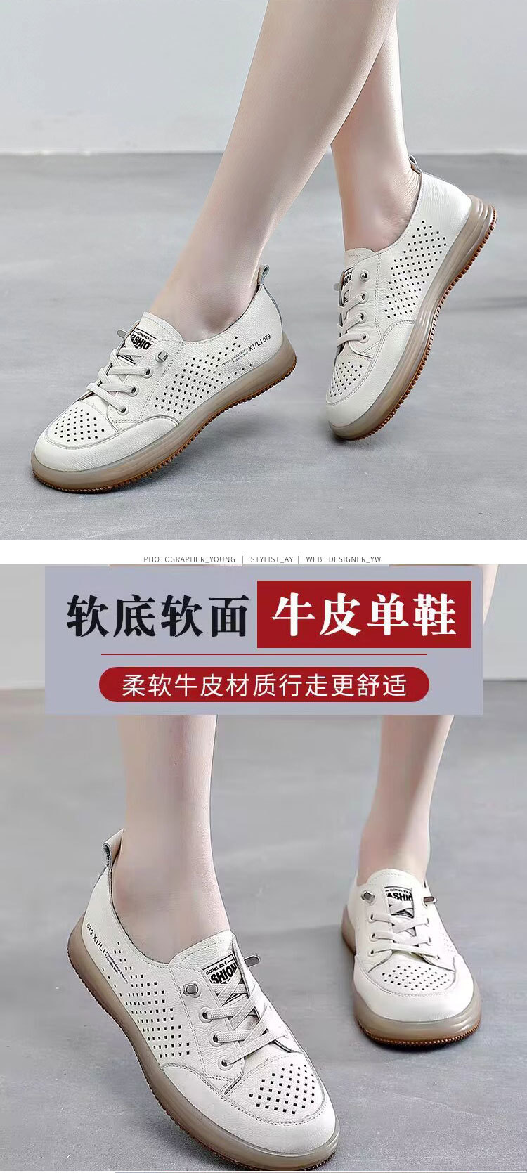 2023 여름 탑 레이어 소가죽 신발 여성 캐주얼 흰색 신발 부드러운 밑창 펀치 스포츠 엄마 신발 세트 발 구멍 신발스토어 가기