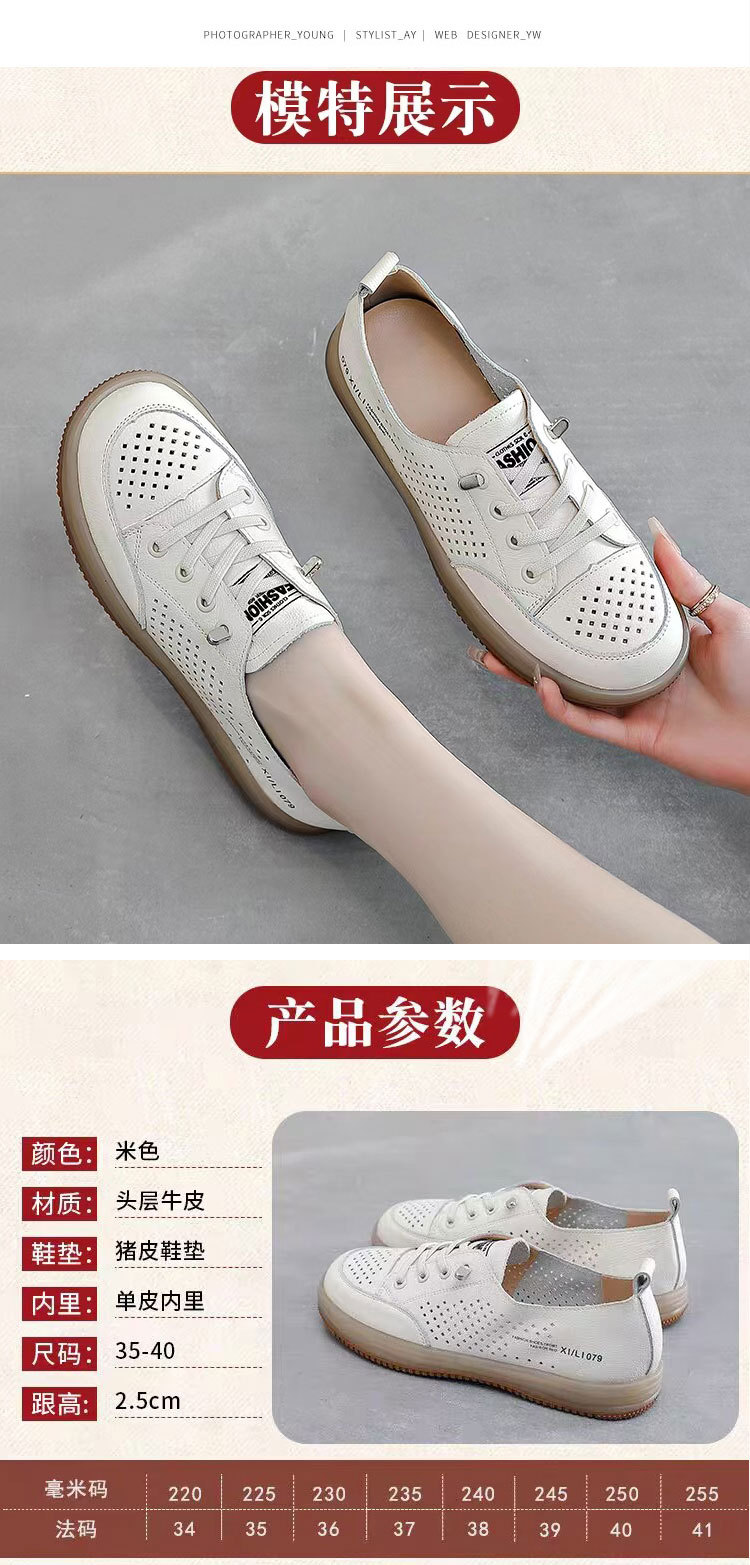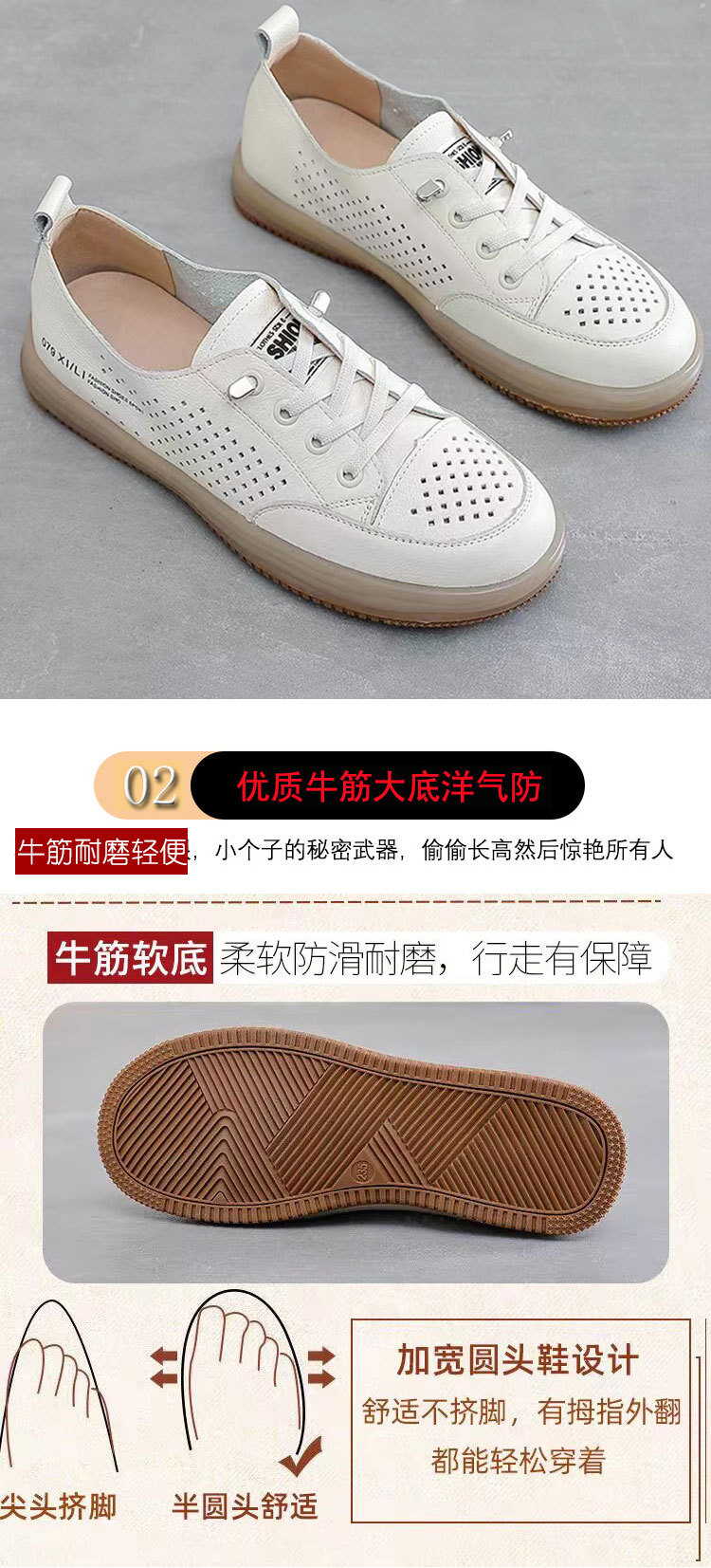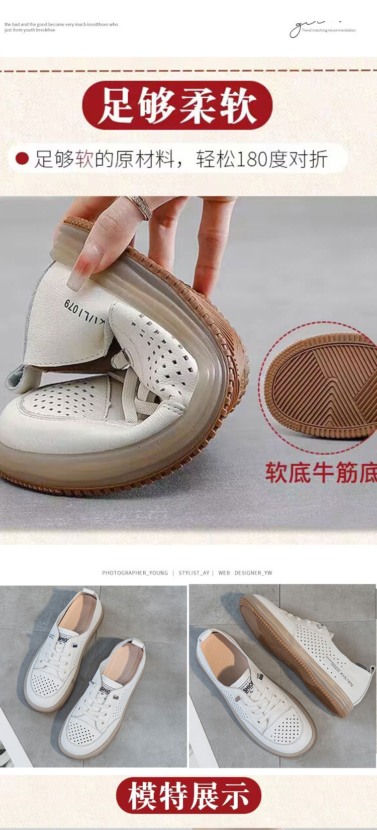 2023 여름 탑 레이어 소가죽 신발 여성 캐주얼 흰색 신발 부드러운 밑창 펀치 스포츠 엄마 신발 세트 발 구멍 신발스토어 가기