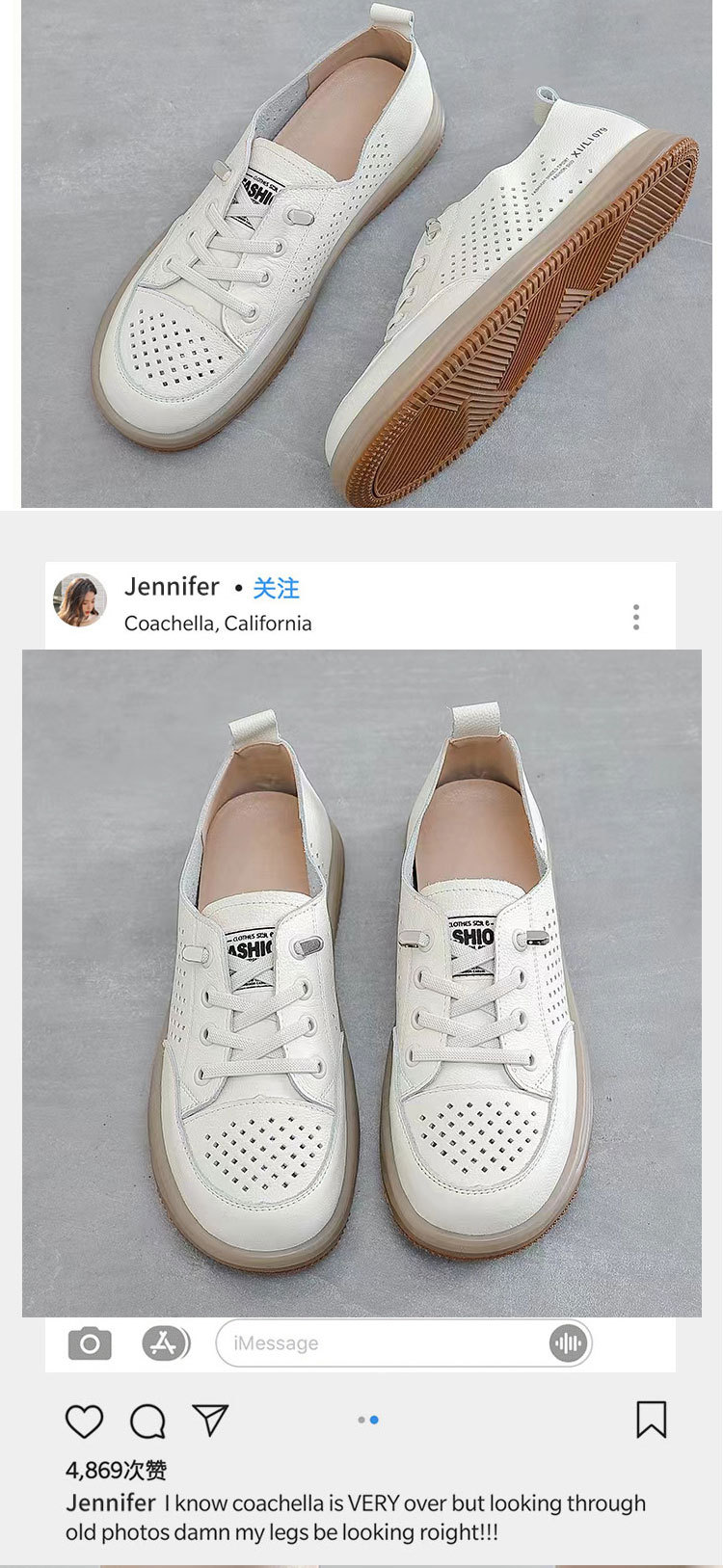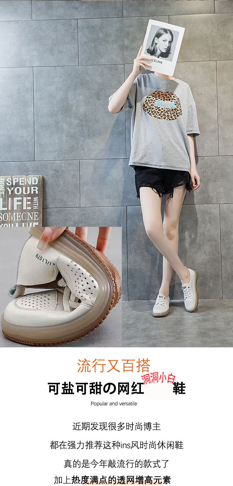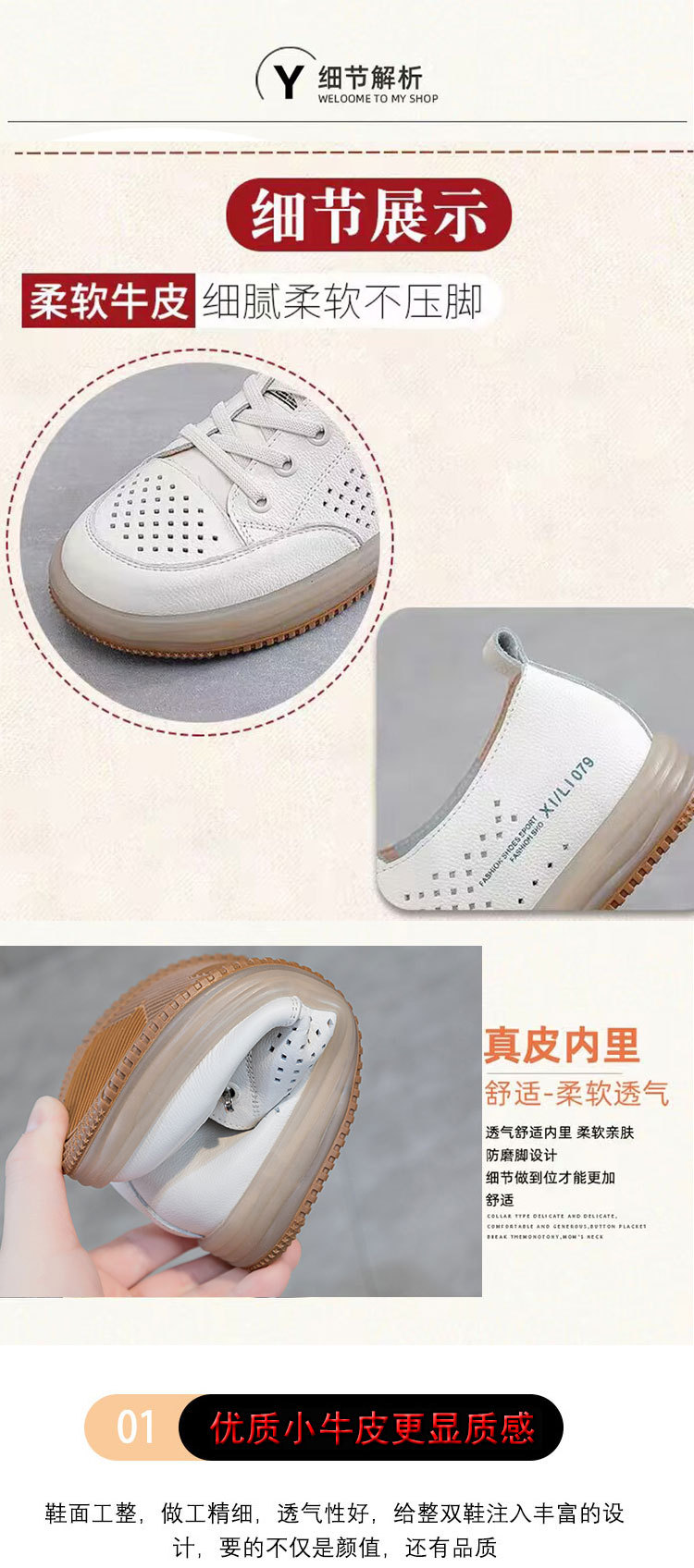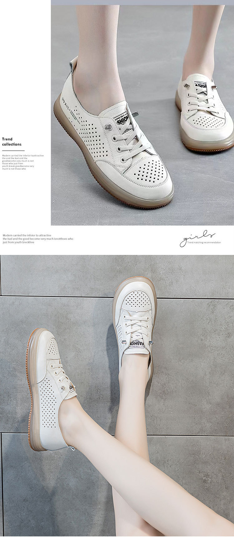 2023 여름 탑 레이어 소가죽 신발 여성 캐주얼 흰색 신발 부드러운 밑창 펀치 스포츠 엄마 신발 세트 발 구멍 신발스토어 가기
