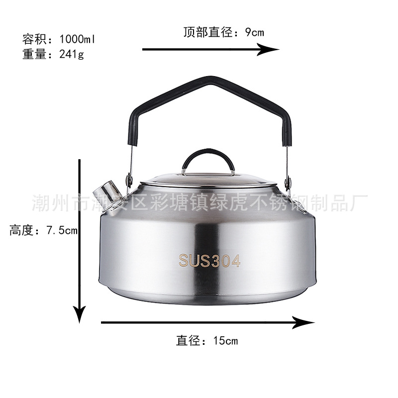 • 304 1000ml 캠핑 주전자 블랙 플랫 핸들 세트 접착제