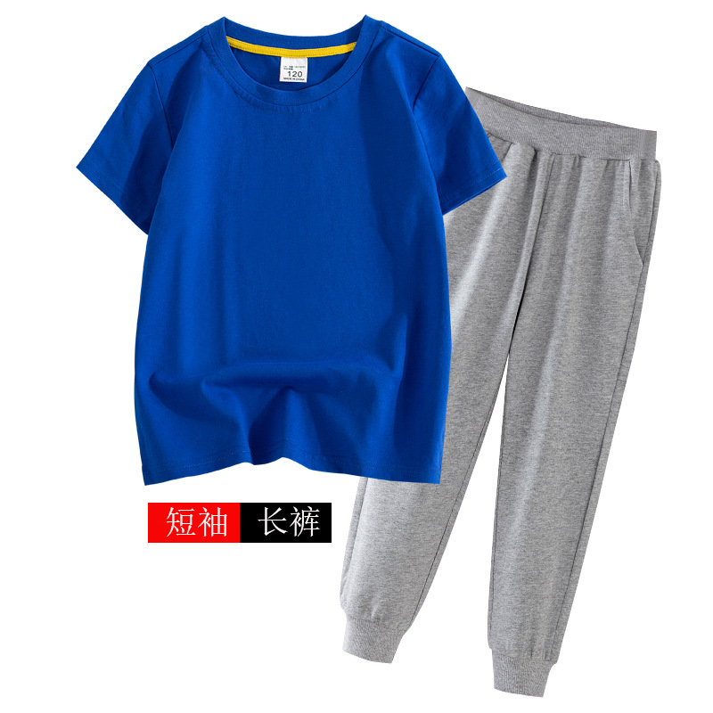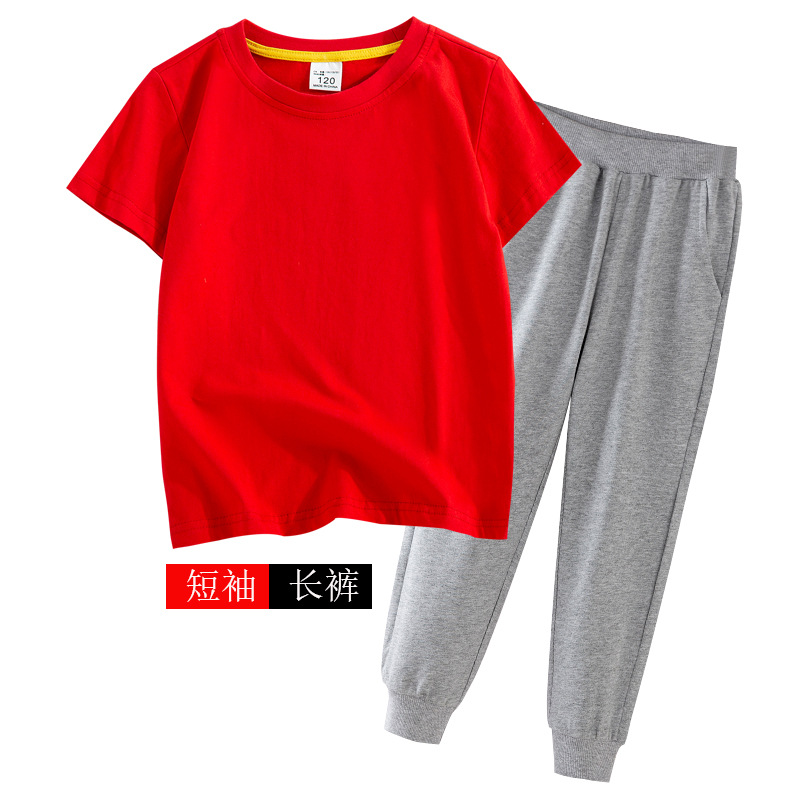어린이 여름 세트 반팔 바지 캐주얼웨어 대형 어린이 얇은 티셔츠 통 바지 투피스 세트 재고 머리스토어 가기