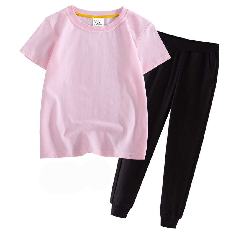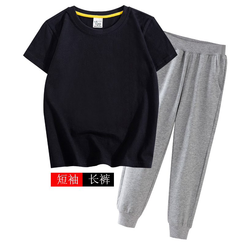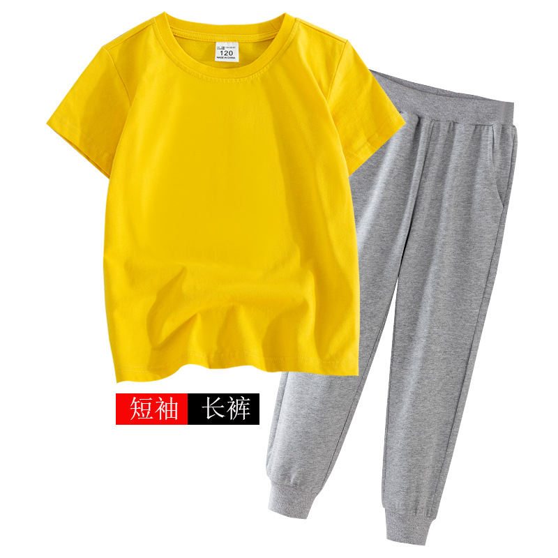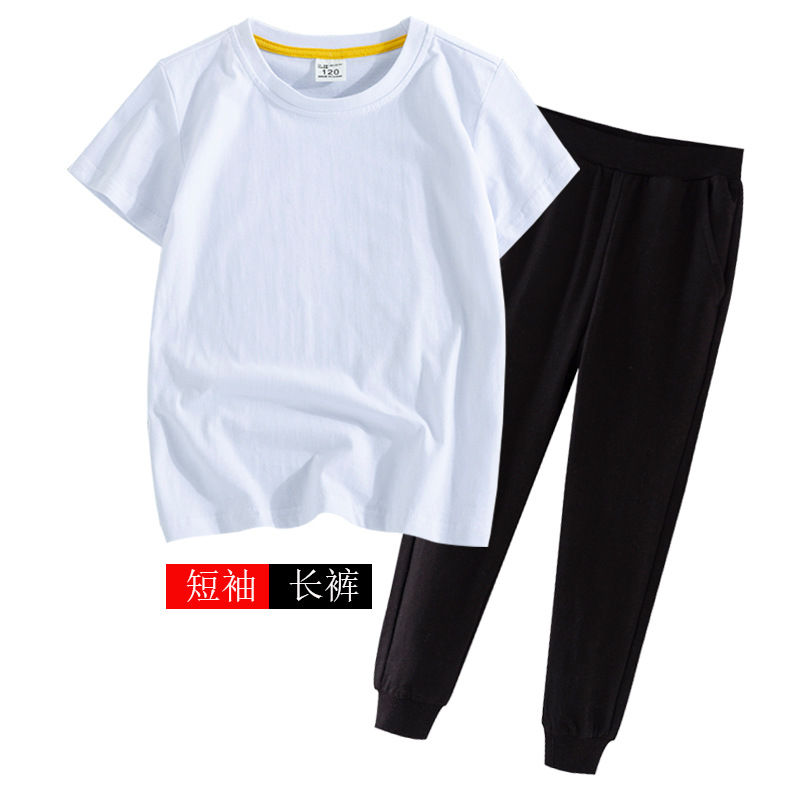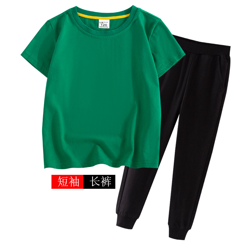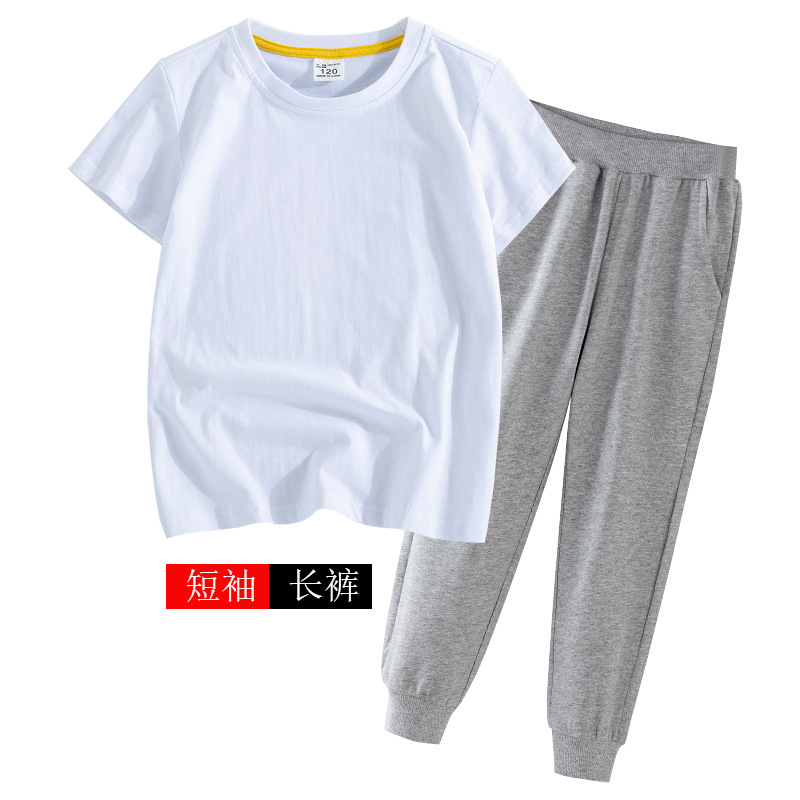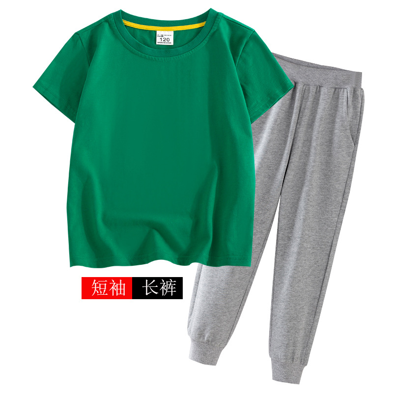 어린이 여름 세트 반팔 바지 캐주얼웨어 대형 어린이 얇은 티셔츠 통 바지 투피스 세트 재고 머리
