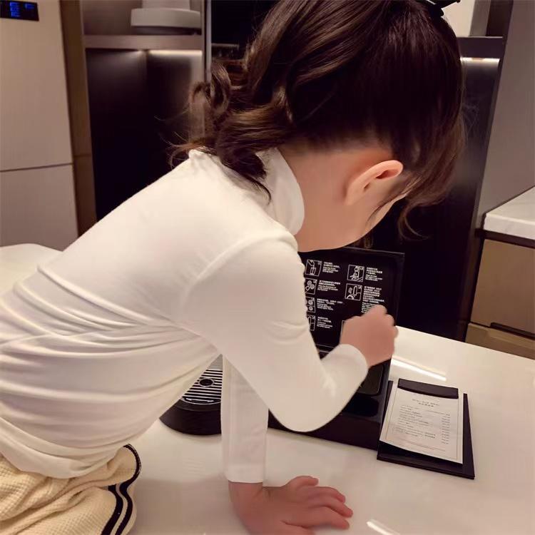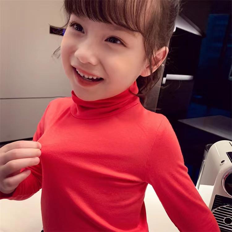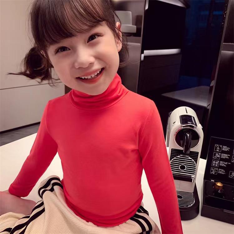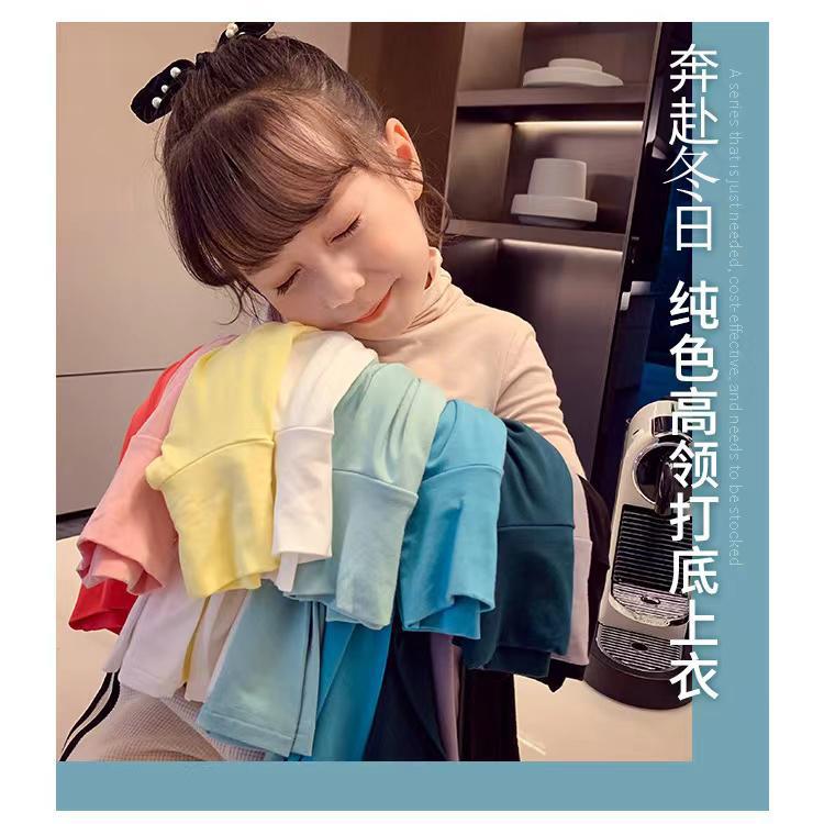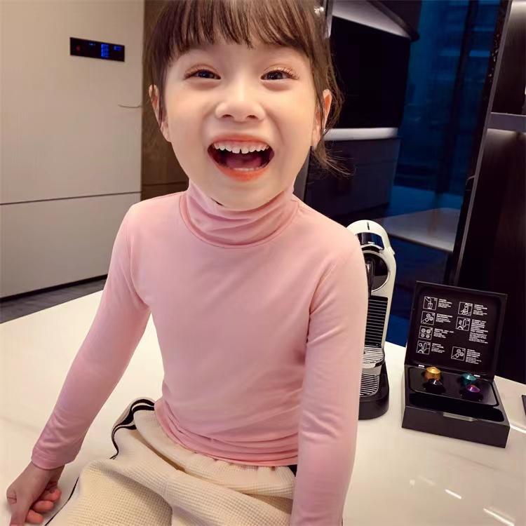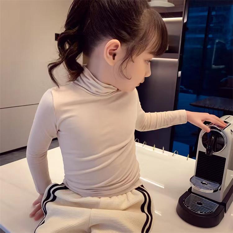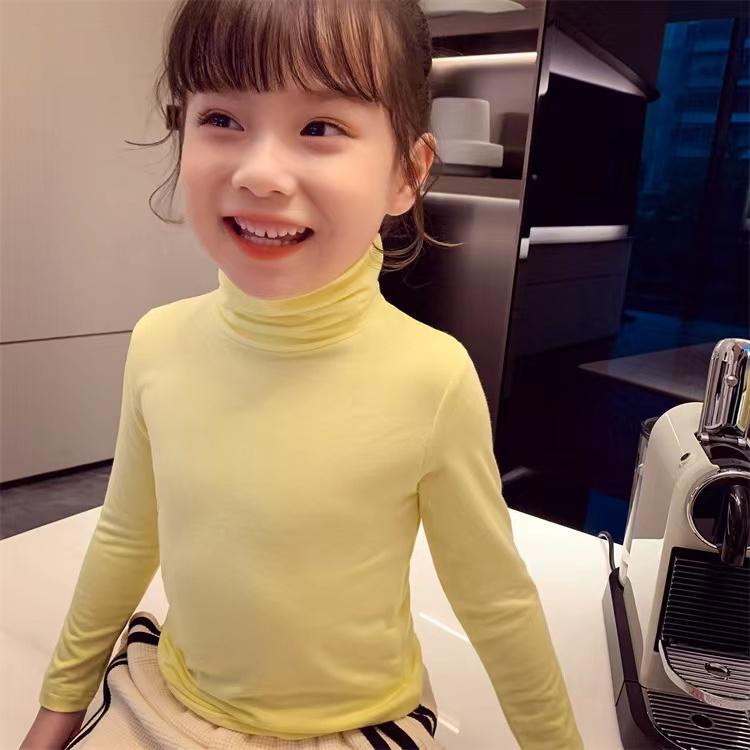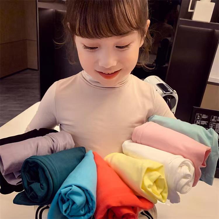2024 봄, 가을 얇은 인터넷 연예인 터틀넥 모달 바닥 셔츠 소녀 탑 캔디 컬러 베이비 아동복 다목적스토어 가기