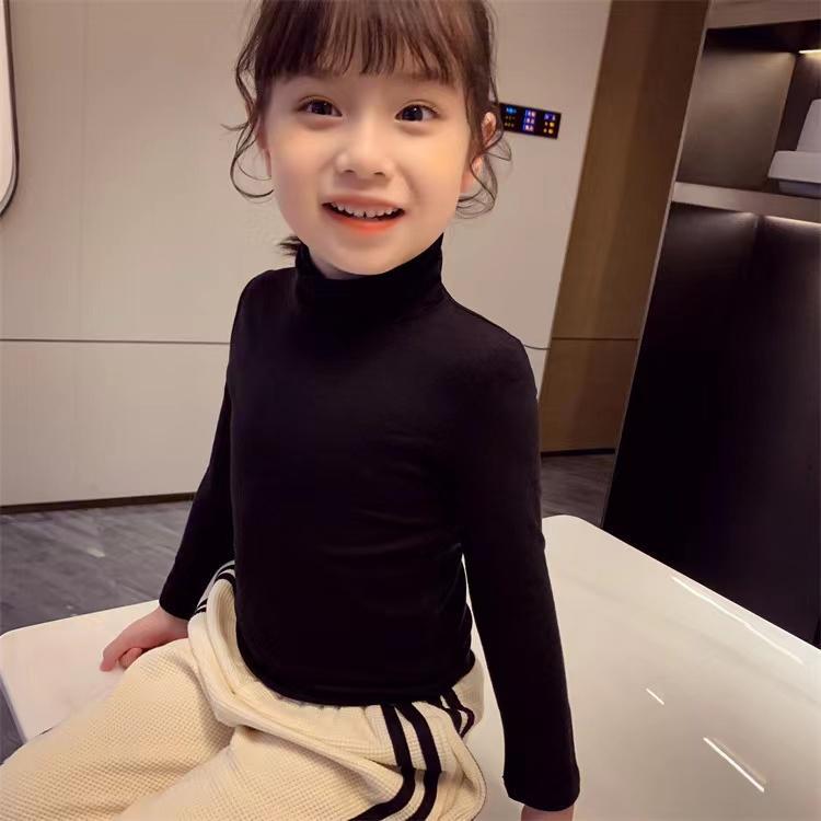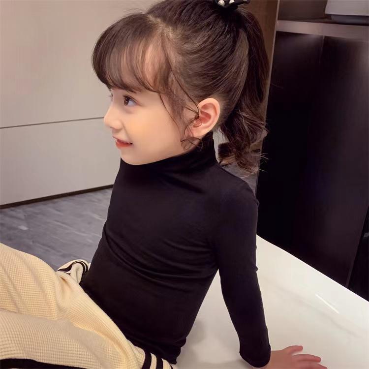 2024 봄, 가을 얇은 인터넷 연예인 터틀넥 모달 바닥 셔츠 소녀 탑 캔디 컬러 베이비 아동복 다목적