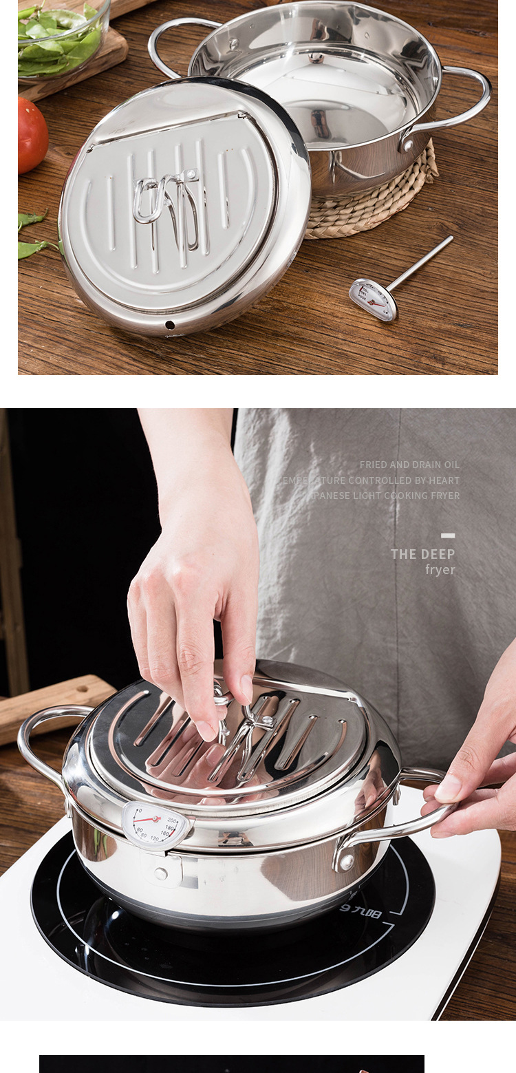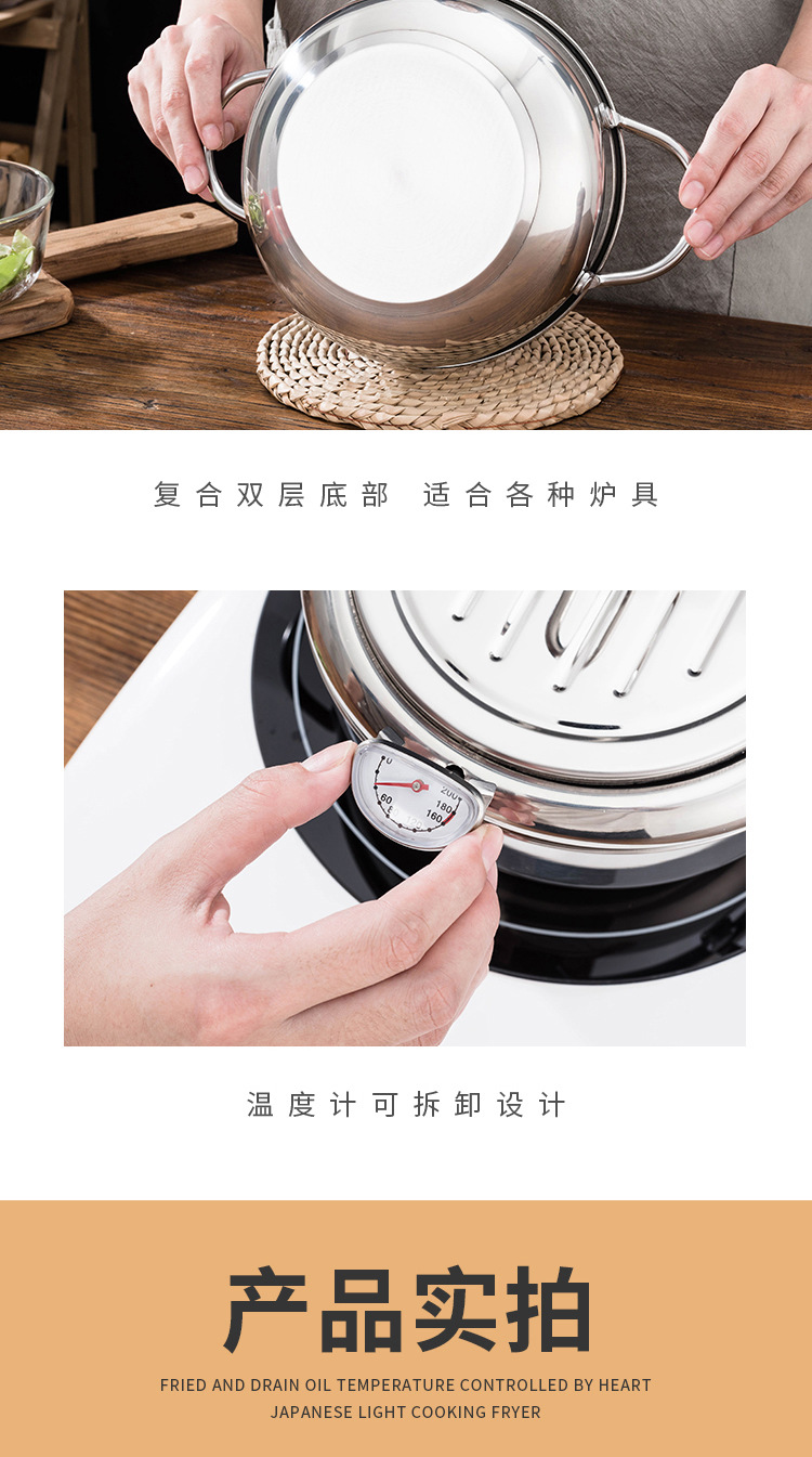튀김 프라이팬 가정용 소형 프라이팬 304 스테인레스 스틸 온도 조절 가능 및 연료 절약형 미니 강화 가스 프라이팬