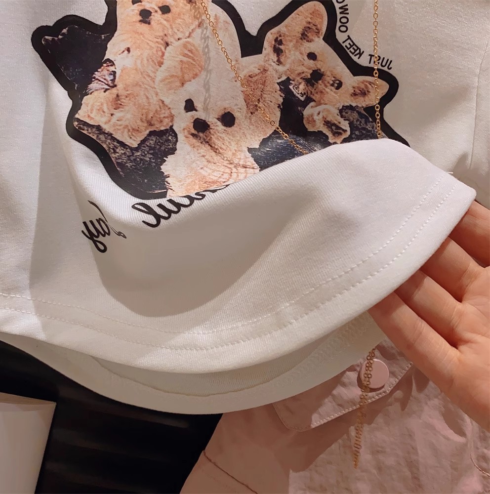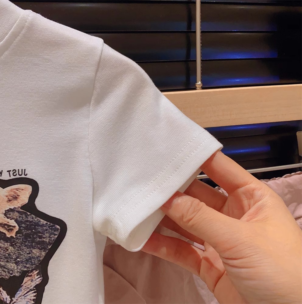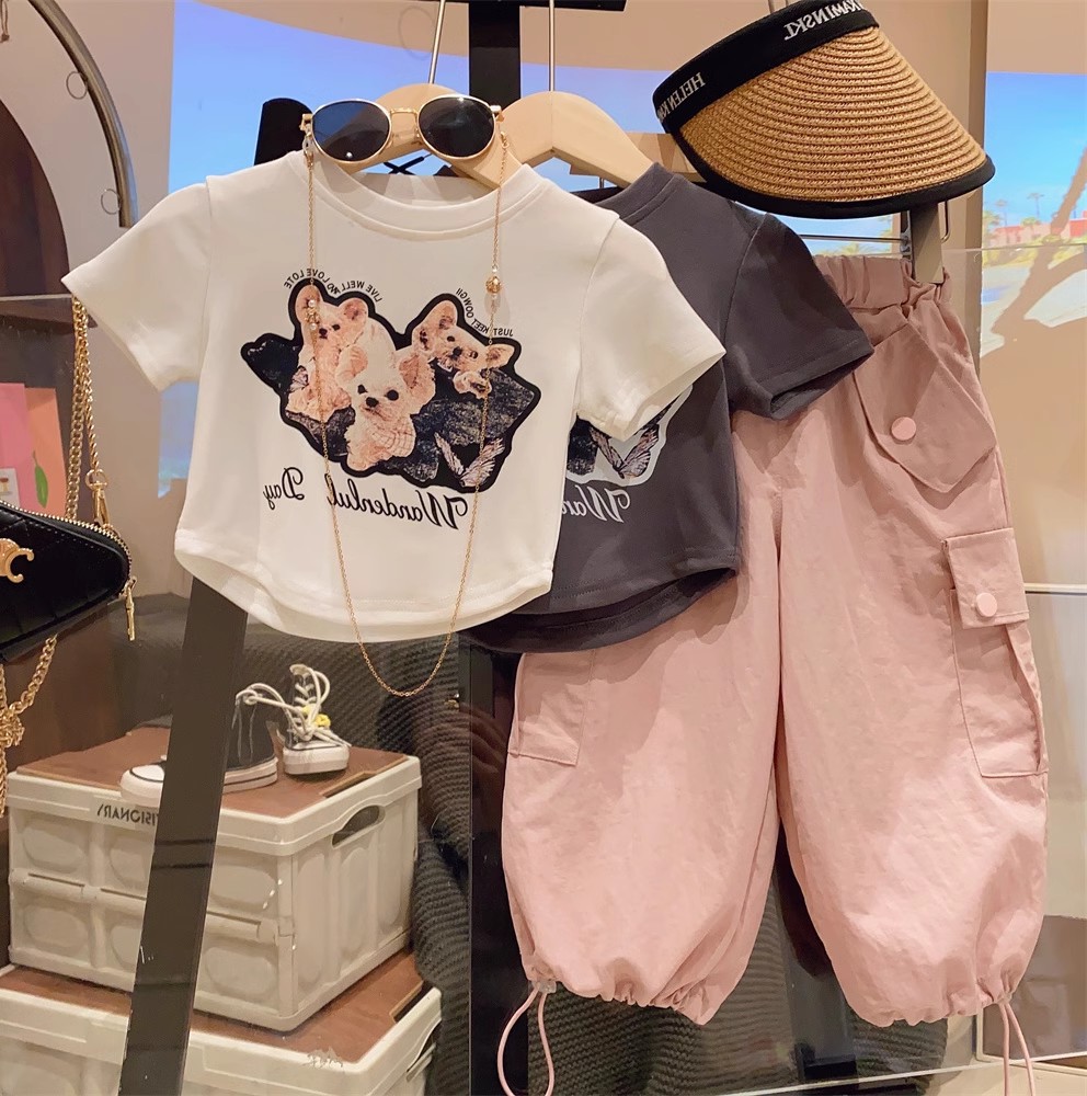 여아 정장, 만화 동물 반팔 티셔츠, 작업복 바지 25 여름 신상품, 대외 무역 아동복 직배송스토어 가기