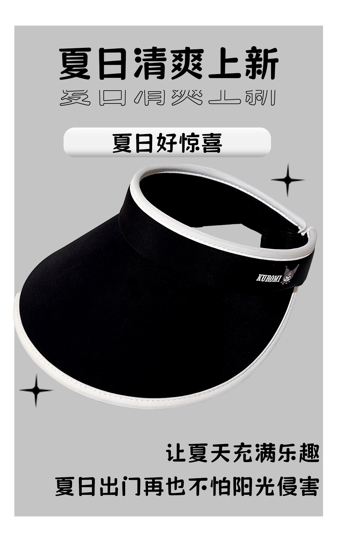 • 산리오 솔리드 컬러 빈 탑 모자-블랙 쿨로 미