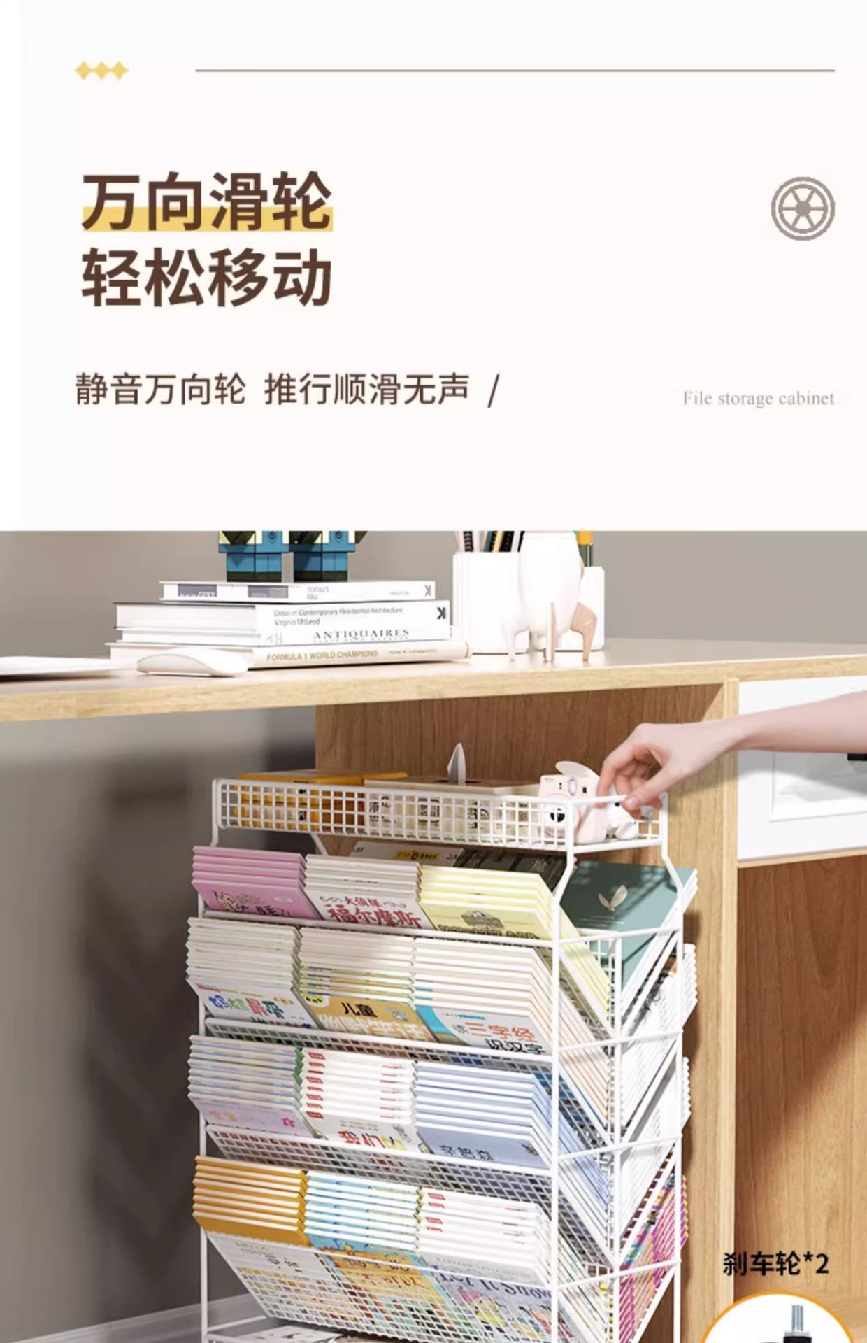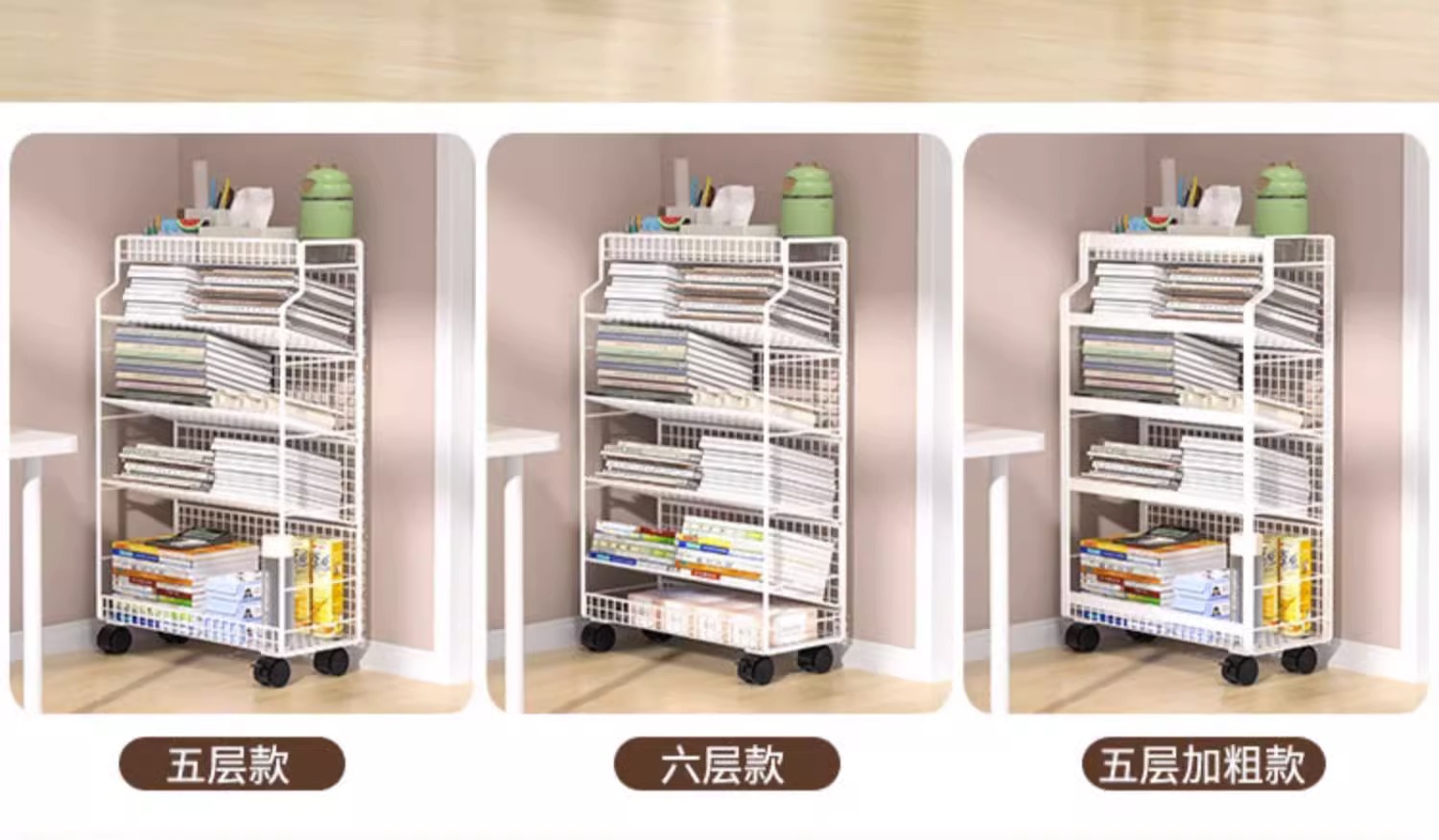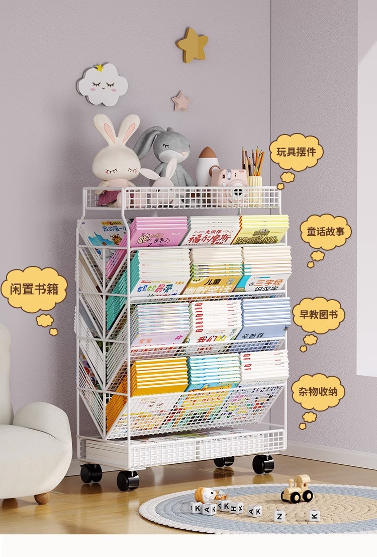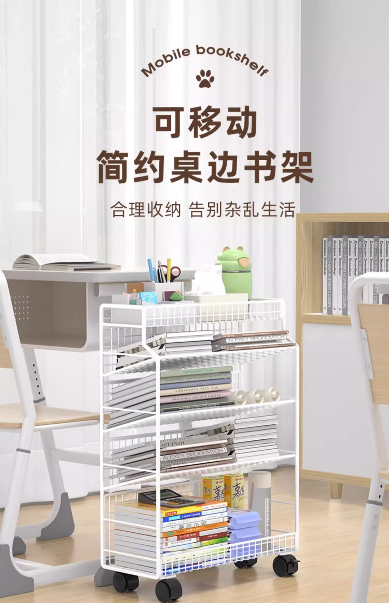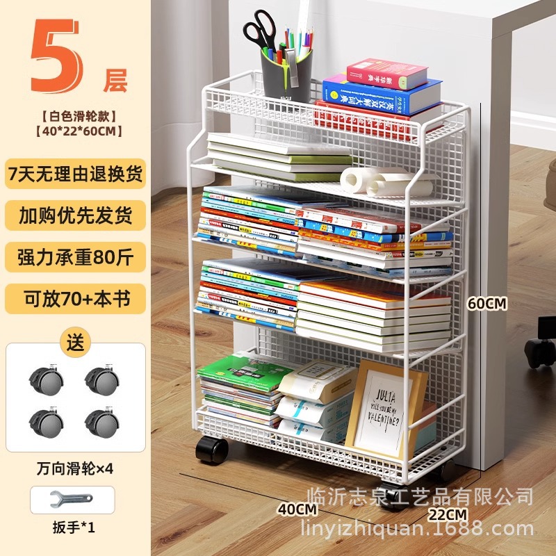 이동식 교실 책상 책 수납 바퀴 달린 책상 소형 책장 학생 책상 옆 푸시 풀 선반 도매스토어 가기