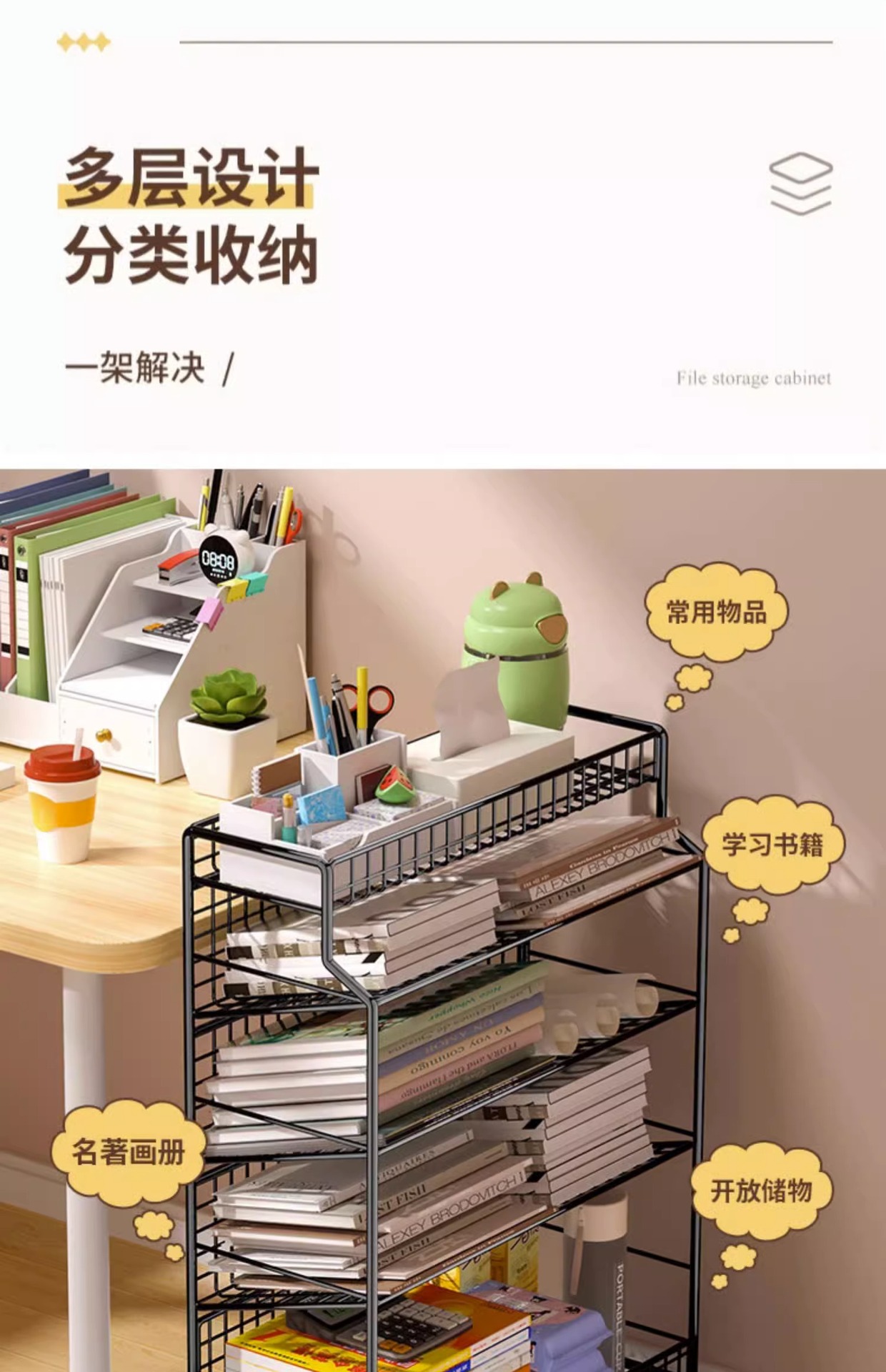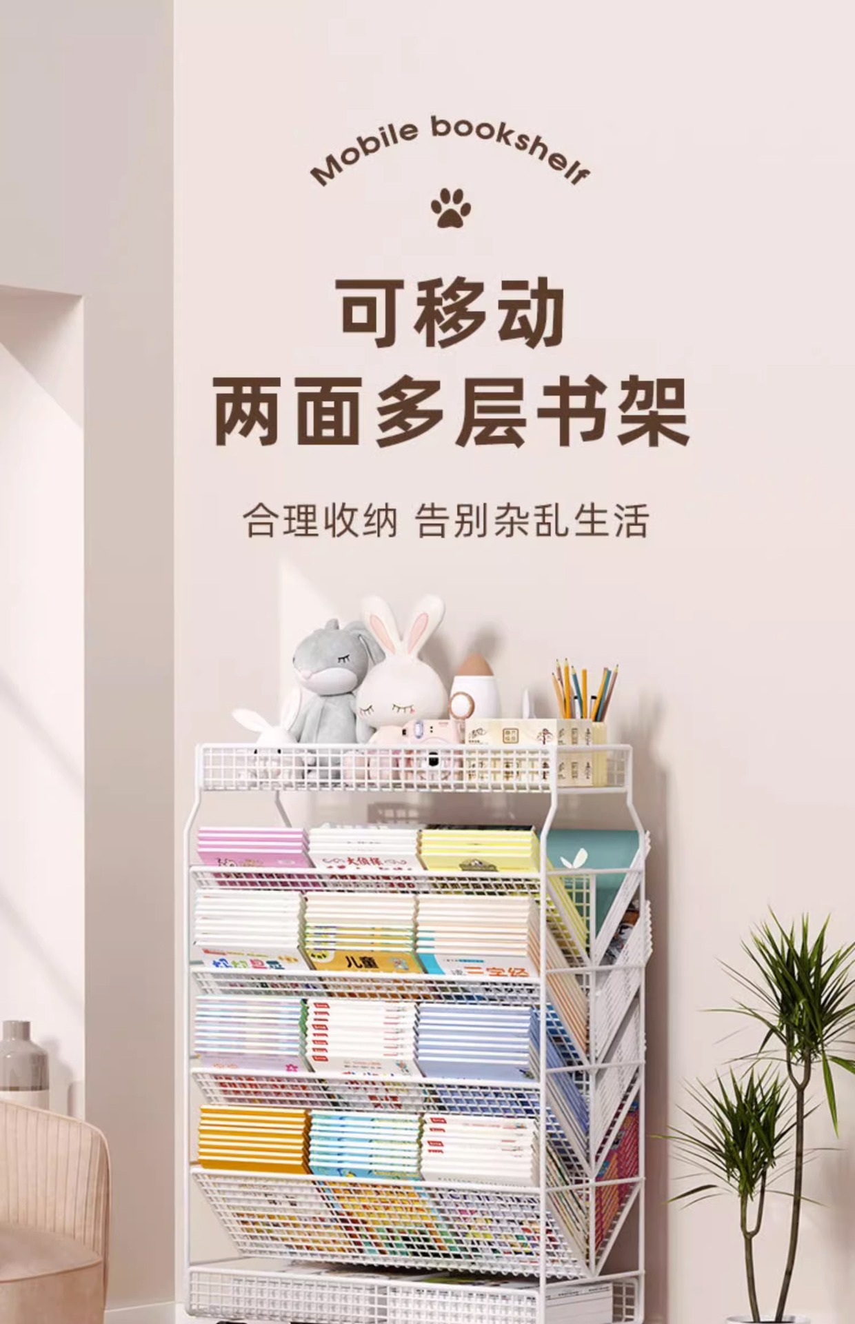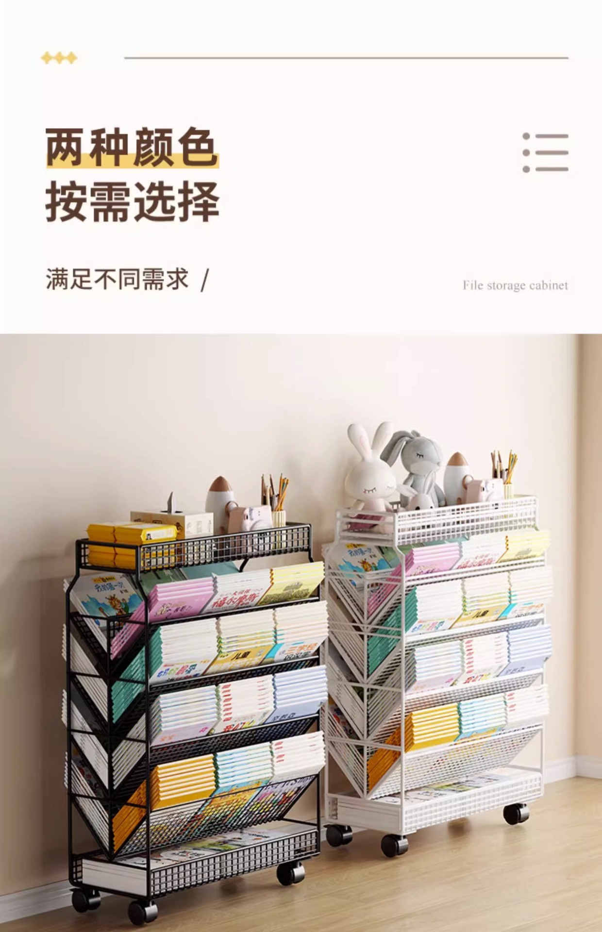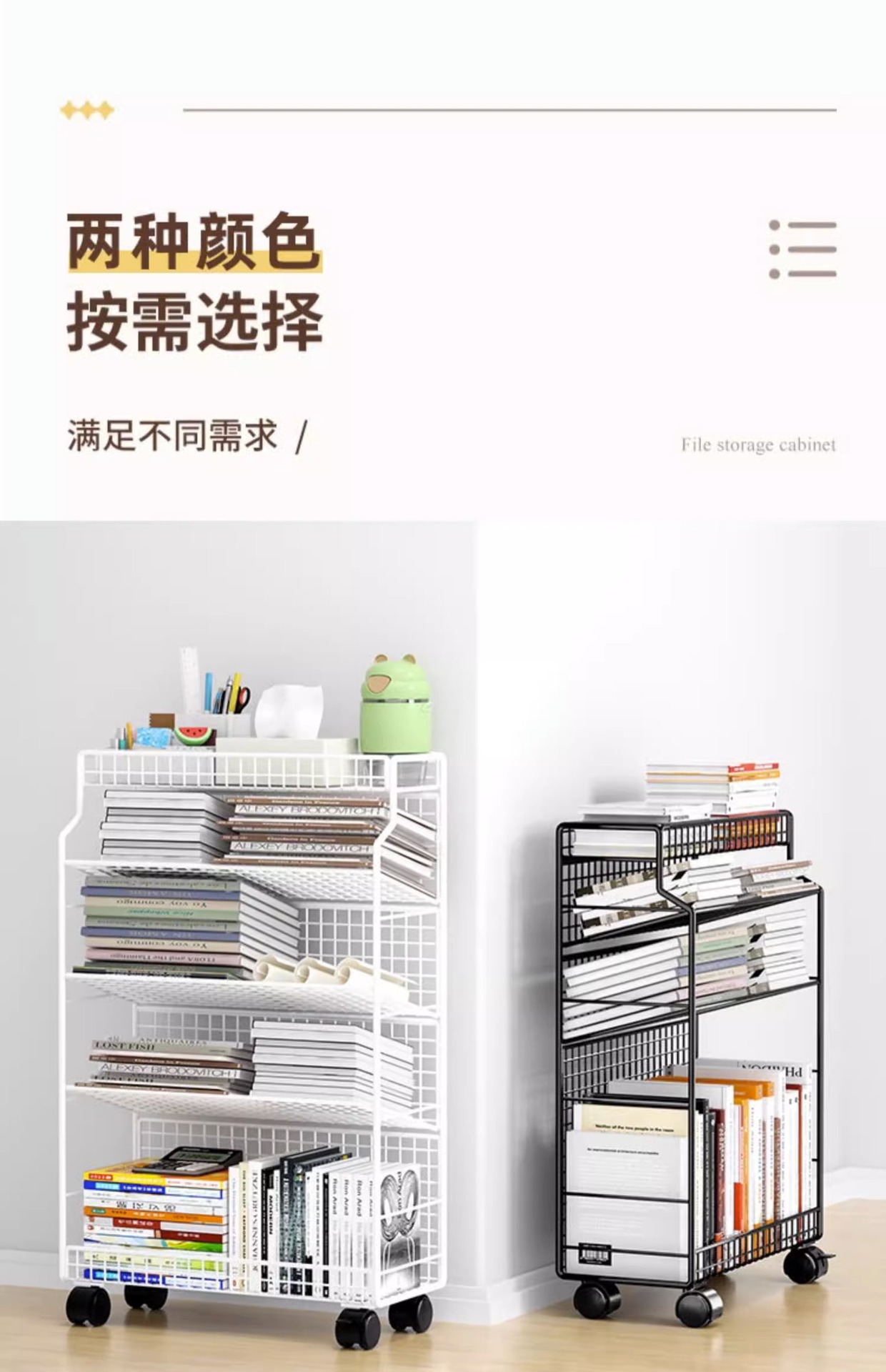 이동식 교실 책상 책 수납 바퀴 달린 책상 소형 책장 학생 책상 옆 푸시 풀 선반 도매스토어 가기