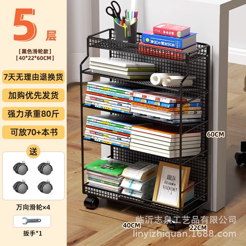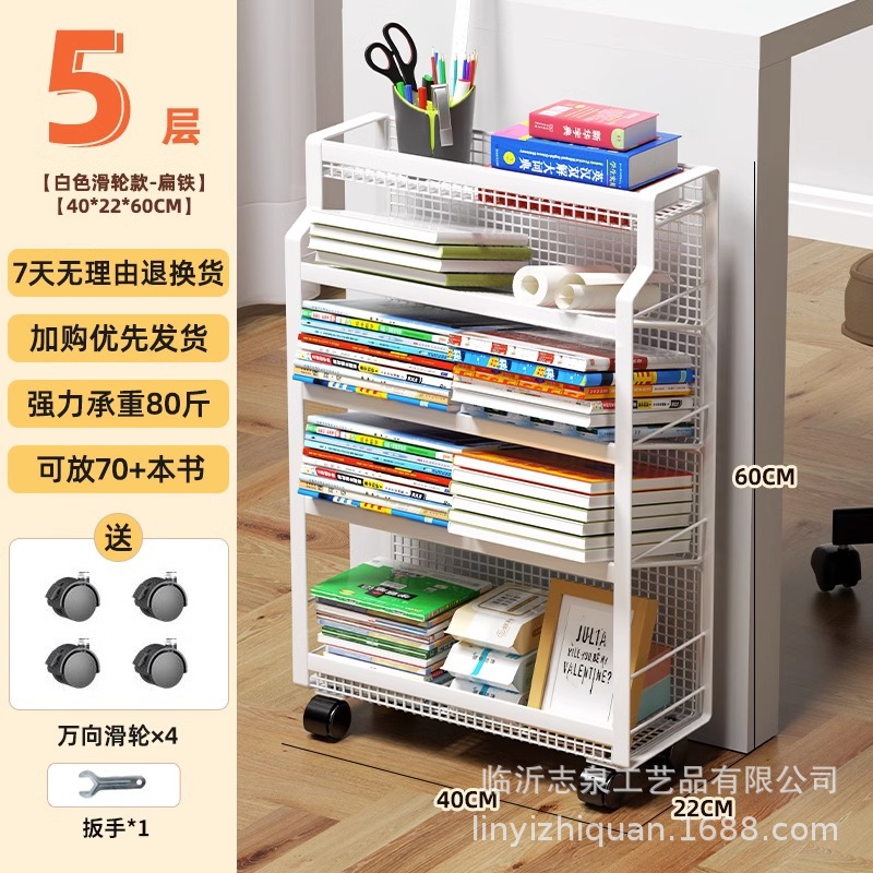 이동식 교실 책상 책 수납 바퀴 달린 책상 소형 책장 학생 책상 옆 푸시 풀 선반 도매