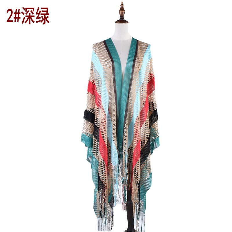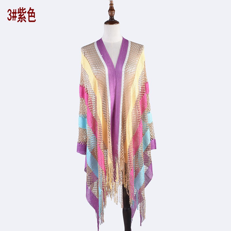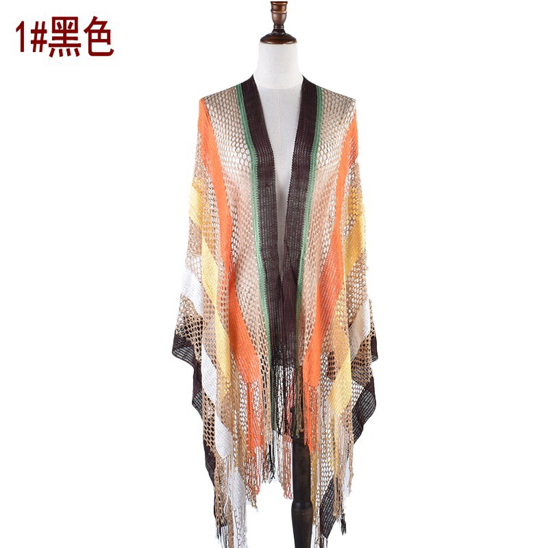 2024 여름 새로운 패션 우아한 컬러 스트라이프 중공 긴 수염 니트 선 스크린 목도리 스카프