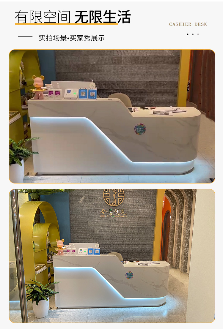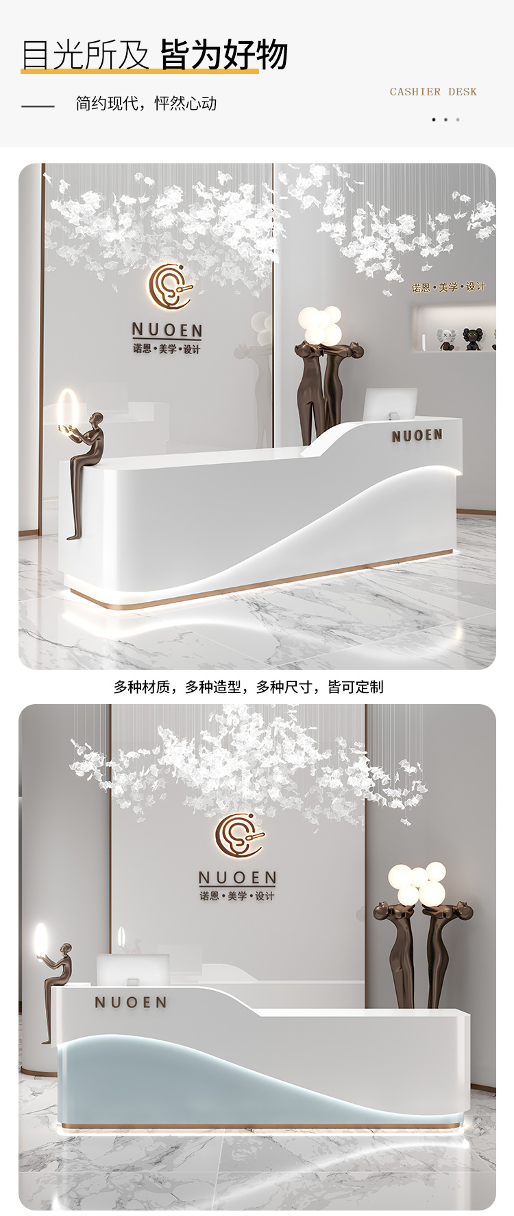 뷰티 살롱 출납원 간단한 현대 의류 매장 곡선 바 캐비닛 댄스 룸 아트 프론트 데스크 회사 리셉션 데스크