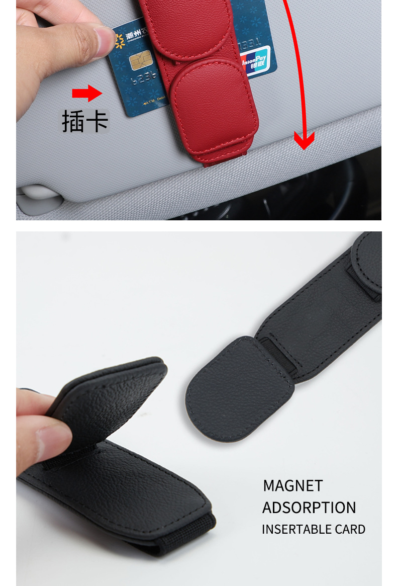 M哥의 해외 인기 상품 차량용 안경 클립, 1등급 소가죽 이중용도 선글라스 클립, 자석식 차량용 안경 클립 카드스토어 가기