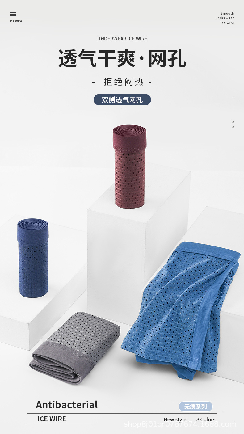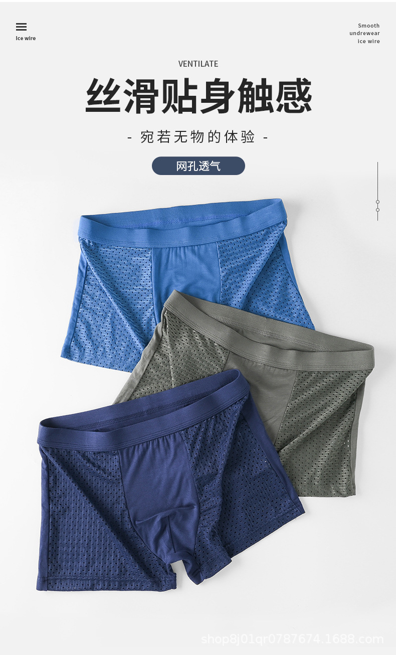 국경 간 독점 남성 여름 메쉬 아이스 실크 복서 반바지 쿨 모달 솔리드 컬러 스포츠 속옷 공장 배치