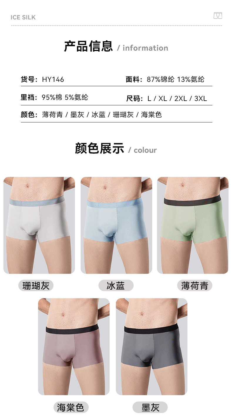 새로운 남성 속옷 추적 아이스 실크 여름 얇은 항균 가랑이 남성 스포츠 복서 반바지