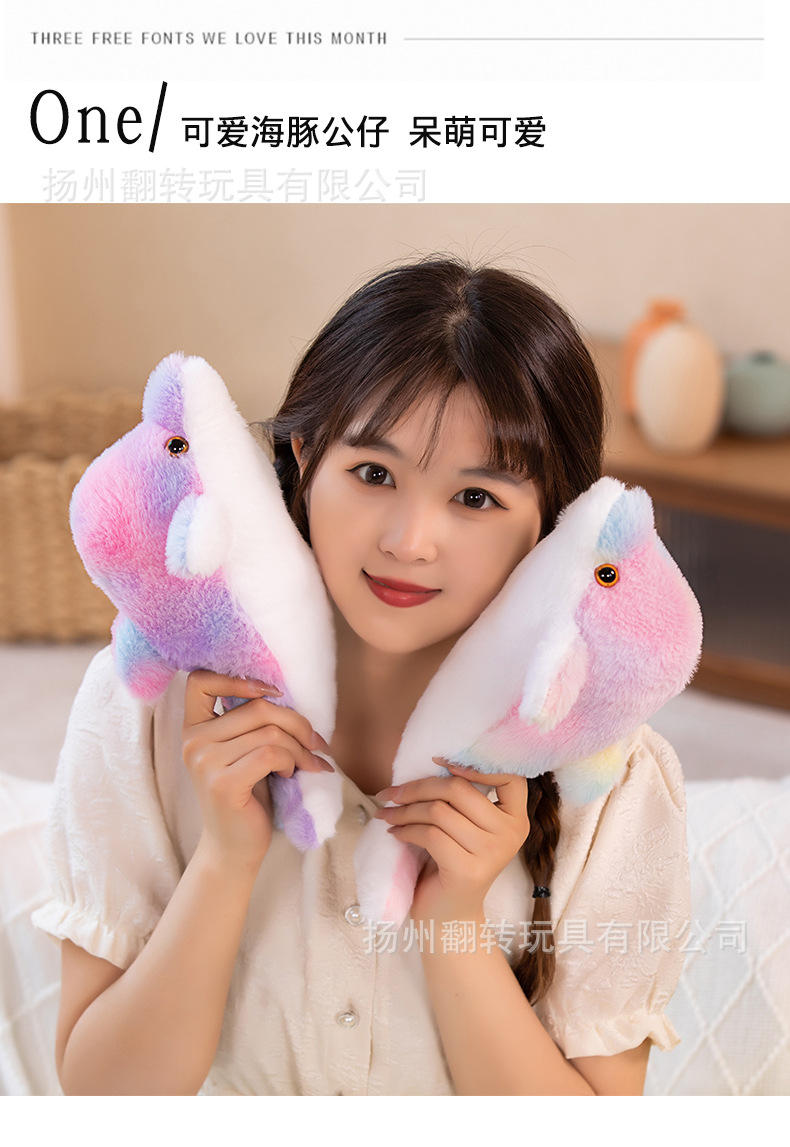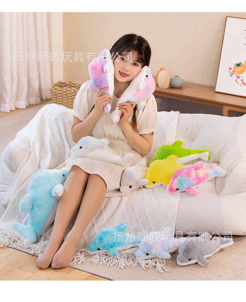 귀여운 다채로운 돌고래 봉제 장난감 베개 다채로운 넥타이 염색 돌고래 인형 휴일 선물 도매스토어 가기