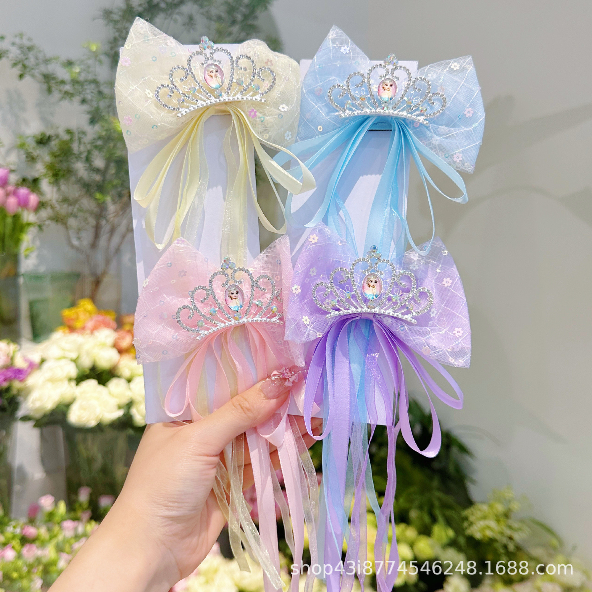 어린이 머리핀 새로운 한국 스타일 크라운 활 리본 절묘한 어린 소녀 귀여운 공주 스타일 어린이 헤어 액세서리